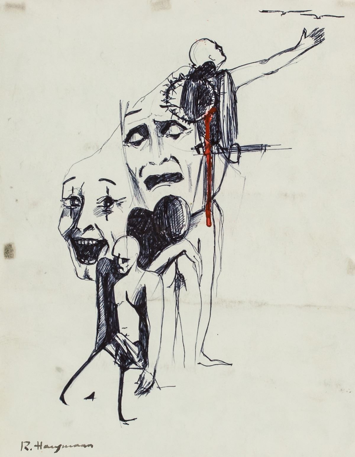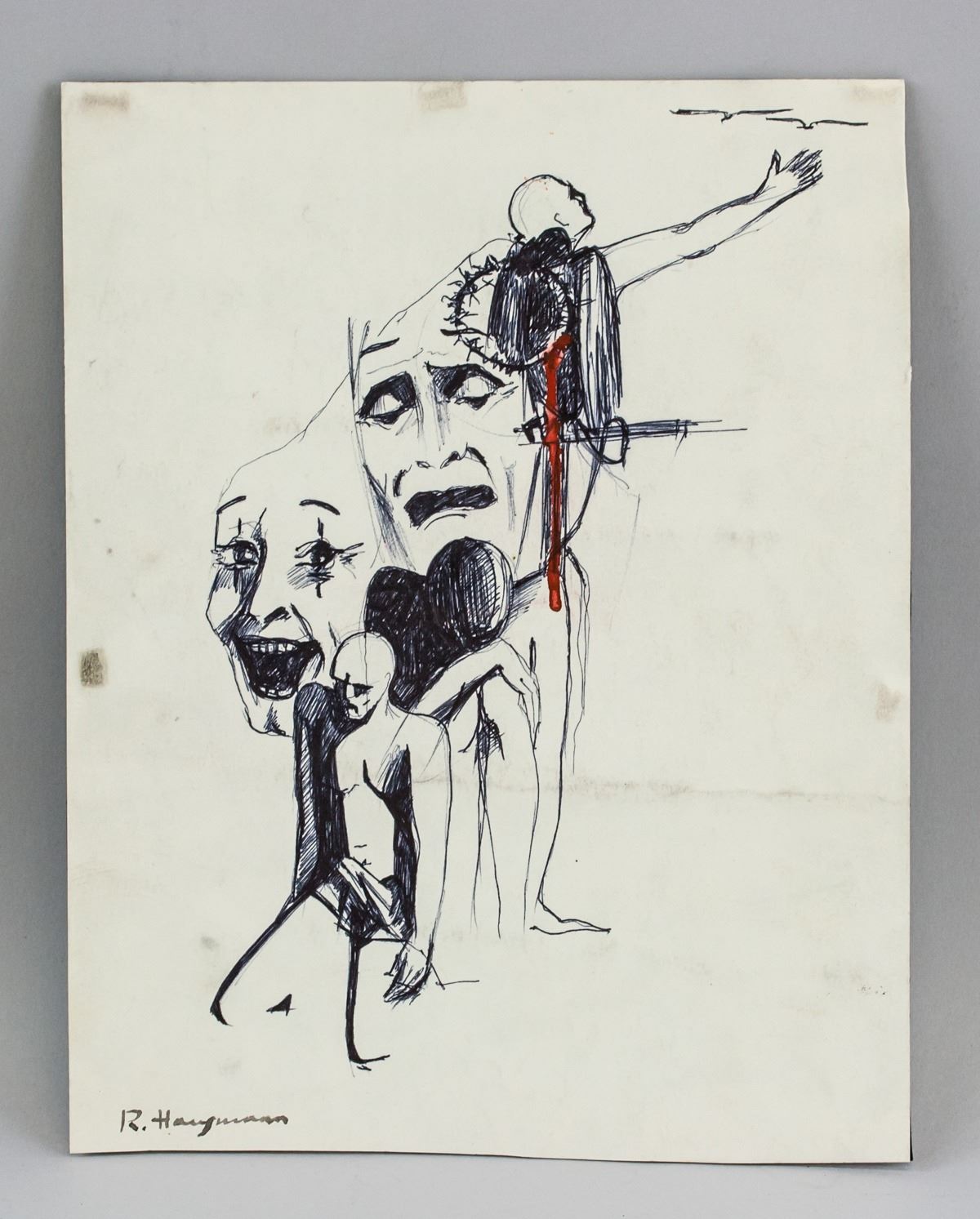 Ink on paper. Featuring ink sketches of human figures and faces. Signed "R. Hausmann" in the bottom left corner. 21 x 27 cm (8.3 x 10.6 in). Provenance: This lot carries limited provenance from a Southern Ontario estate