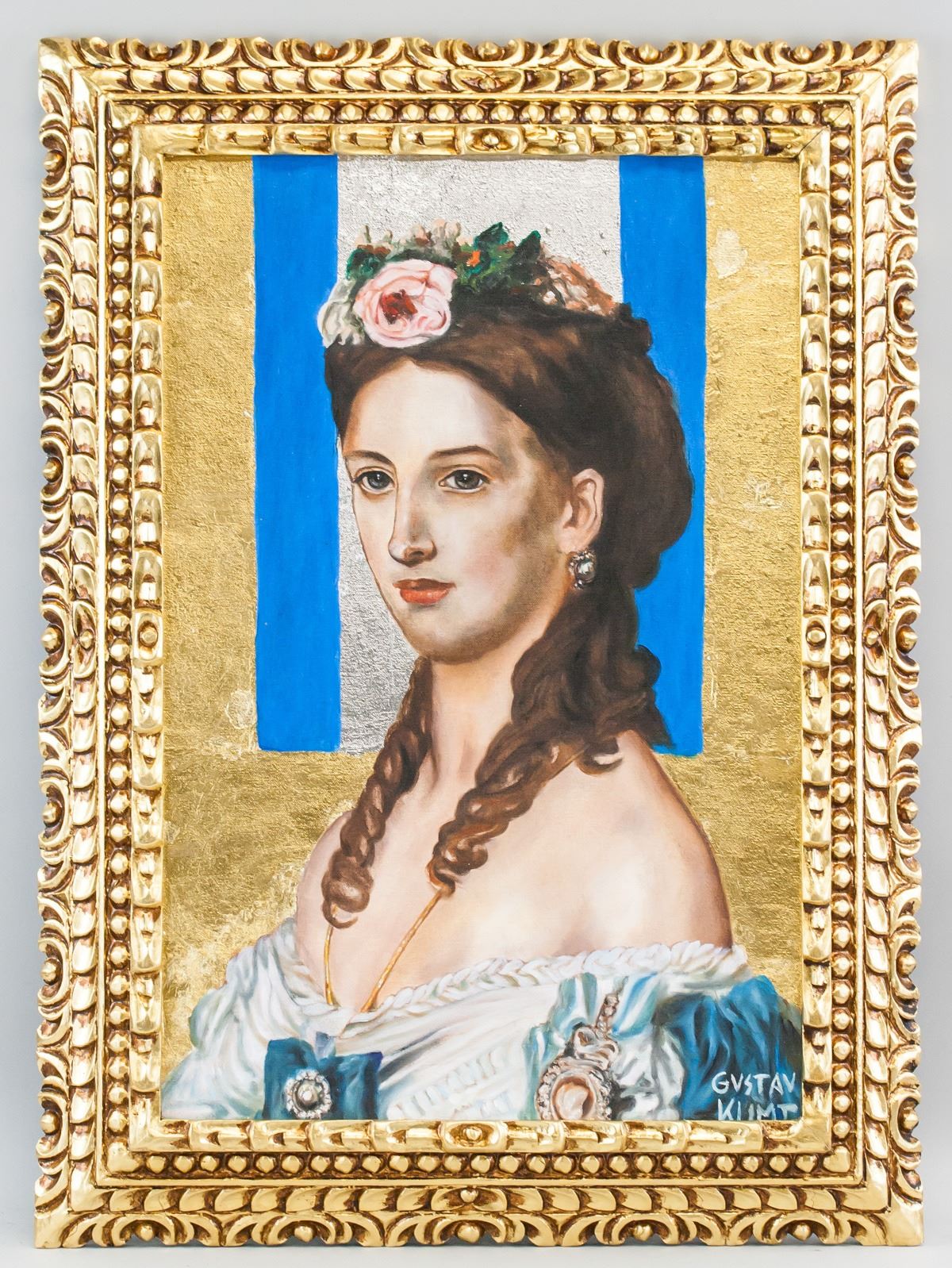 Oil on canvas, framed. Featuring portrait of a well-dressed young woman. Signed "Gustav Klimt" in the bottom right corner. Stamped illegibly on verso. Stamped with "LEOPOLD MUSEUM" on verso. Canvas size: 61 x 40 cm (24 x 15.75 inches). Frame size: 74 x 54 cm (29 x 21.25 inches).