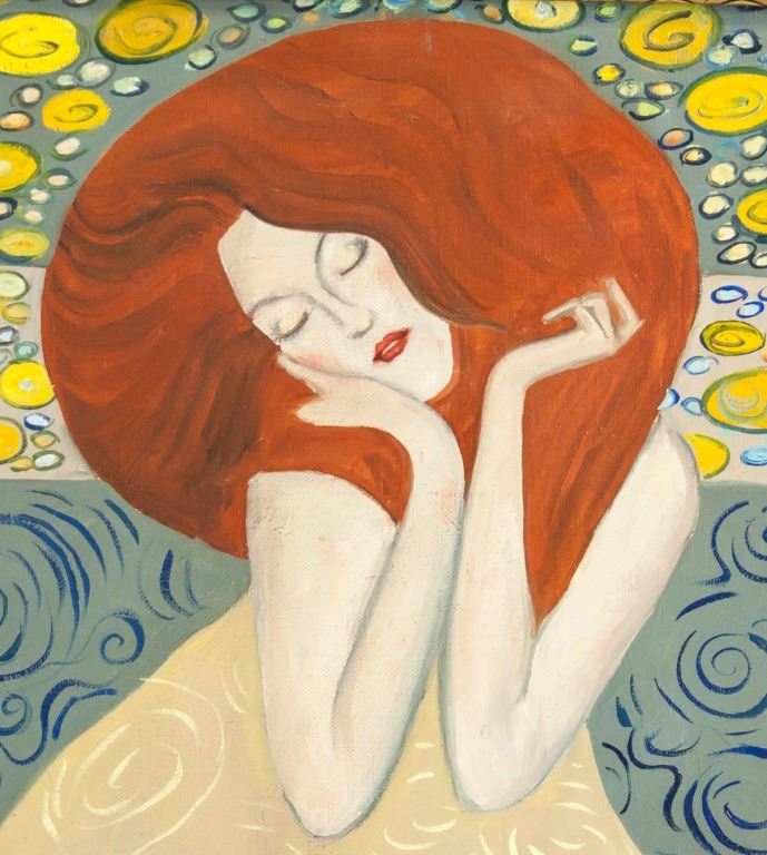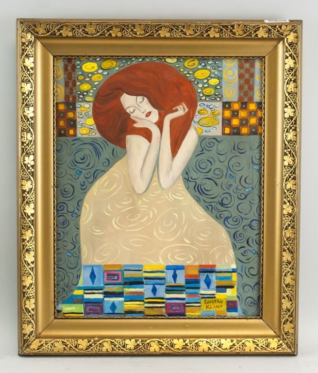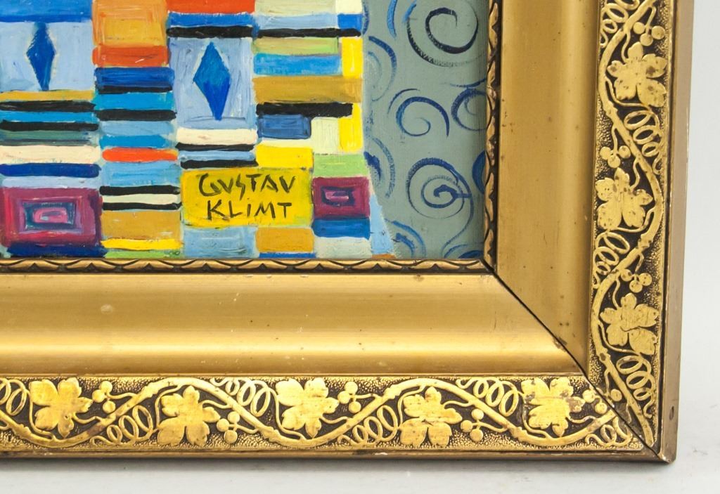 Oil on canvas, framed. Featuring art noveau style sleeping woman. Signed "GUSTAV KLIMT" to the bottom right corner. Canvas size: 50 x 41 cm (19.75 x 16.25 inches). Frame size: 62 x 52 cm (24.5 x 20.5 inches).