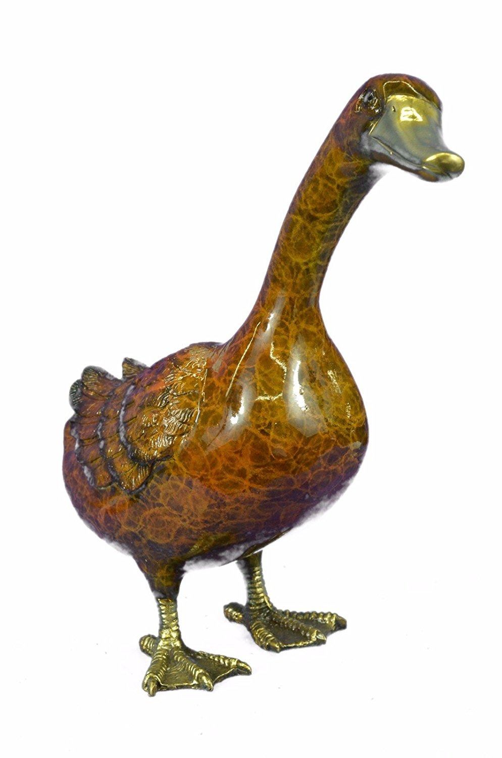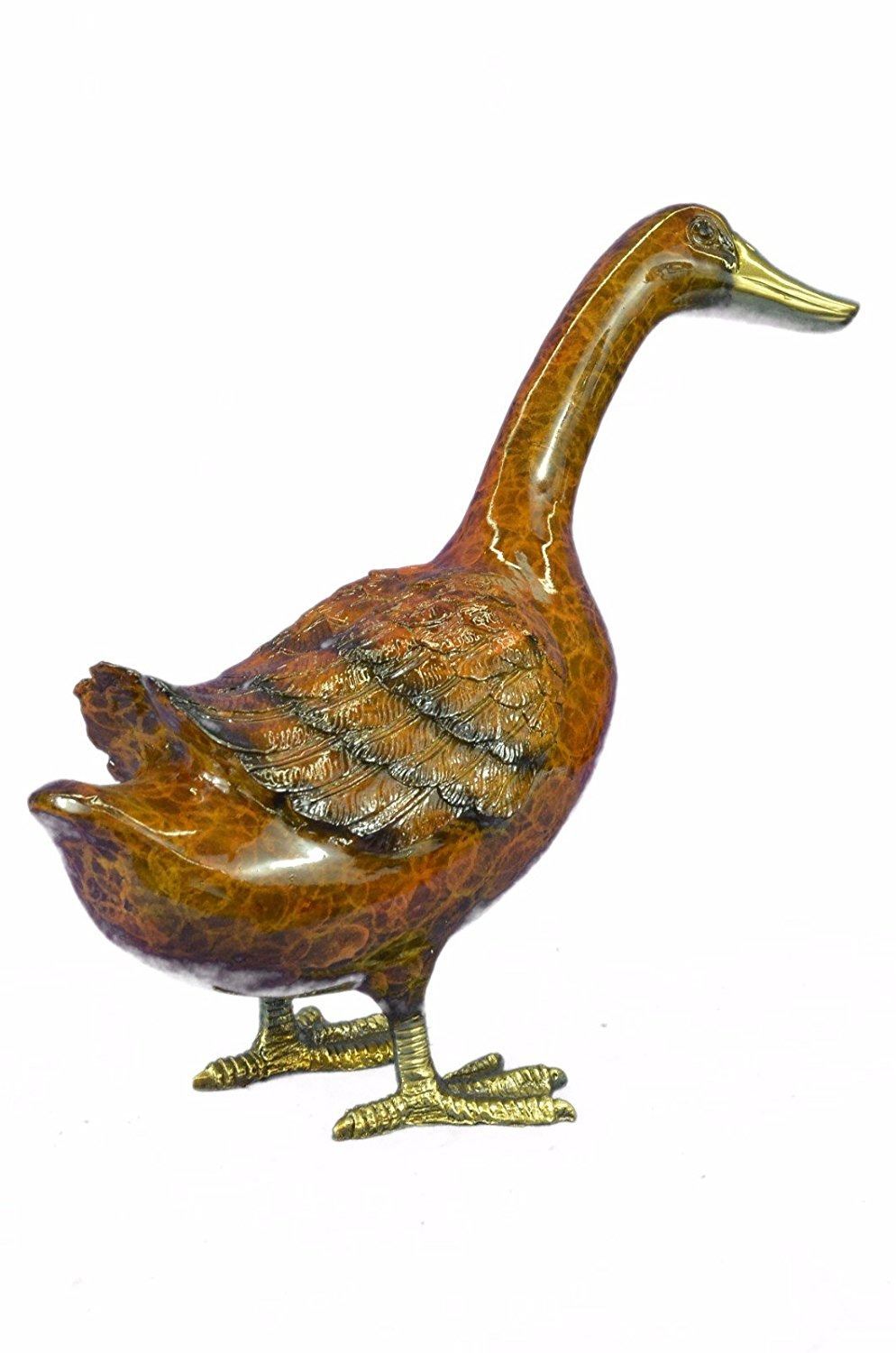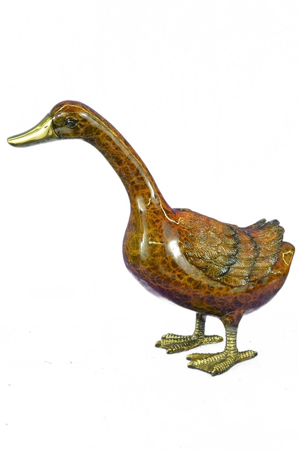 Delightful Duck Bronze Sculpture. This bronze sculpture was produced using the Lost Wax casting method. The Lost Wax Cast method is the most precise metal casting technique in existence, ensuring exquisite detail of the original host model which is usually sculpted in clay or wax. This Lost Wax casting method is an extremely labor intensive and expensive process, but the end results produce a Heirloom Quality Masterpiece. Bronze Dimensions: Height 15 X Width 17 inches. Weight: 9 LBS. Inventory: 4956624NA10594