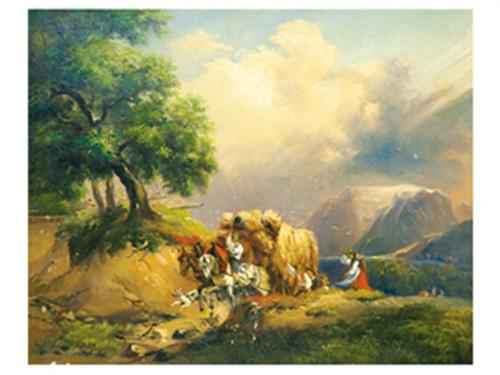 Austrian painter (second half 19th century), Hay-cart in the Storm