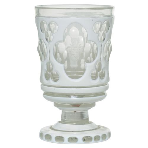 Austrian vase, footed form in clear glass with white overlay, unmarked,5.25in.h