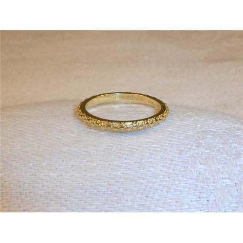 You are looking at a lovely 18K yellow gold stacking ring. This authentic piece is by the famous jewelry designer Hidalgo. This band has a beautiful star design going all the way around. Stunning on its own, this piece may also be worn as a complete set with the American Flag ring or any of the Hidalgo rings available separately. The band measures a bit under 1/8 of an inch wide. It is a size 6.5. Other sizes and colors are available. The ring weighs 2.8 grams. It is in mint condition.