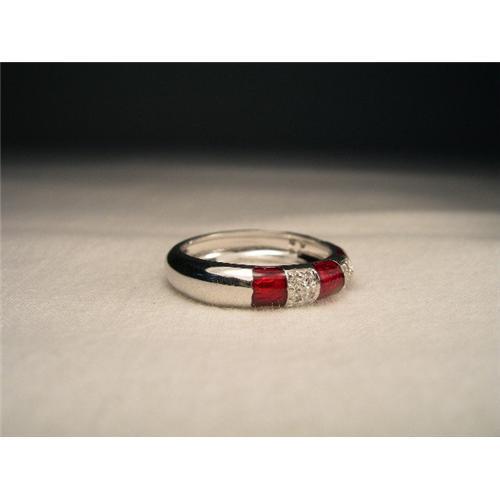 <tr><td>Title:Authentic 18K Hidalgo Red Enamel Diamond Ring</td></tr>