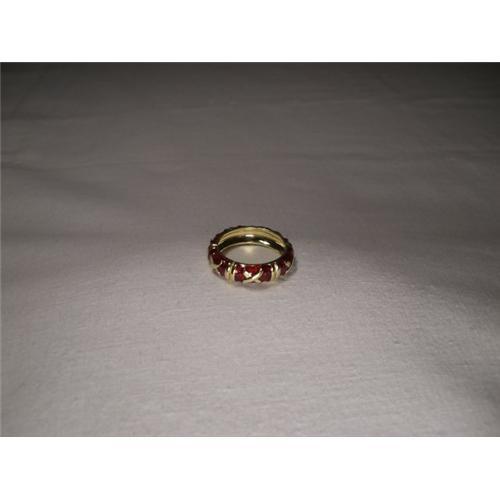<tr><td>Title:Authentic 18K YG Hidalgo Red Enamel Wide Band</td></tr>