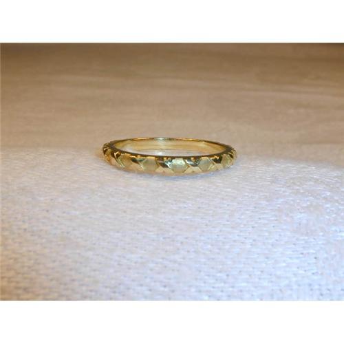 You are looking at a beautiful 18K yellow gold stacking ring. This authentic piece is by the award winning designer Hidalgo. This lovely band is a design of X's that continue all the way around. Stunning on its own, this stackable piece may also be worn as a complete set with the X Band ring or any of the Hidalgo rings available separately. The band measures a bit under 1/8 of an inch wide. It is a size 6.5. Other sizes and colors are available. The ring weighs 2.8 grams. It is in mint condition.