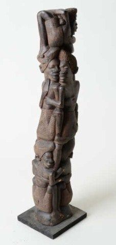 Authentic African carving measuring approx. 27-1/2” in height mounted on base showing woman with her tribe and family intertwined. Good carving with some age. From the Robert E. Petersen Estate. Est.; $400-$800
