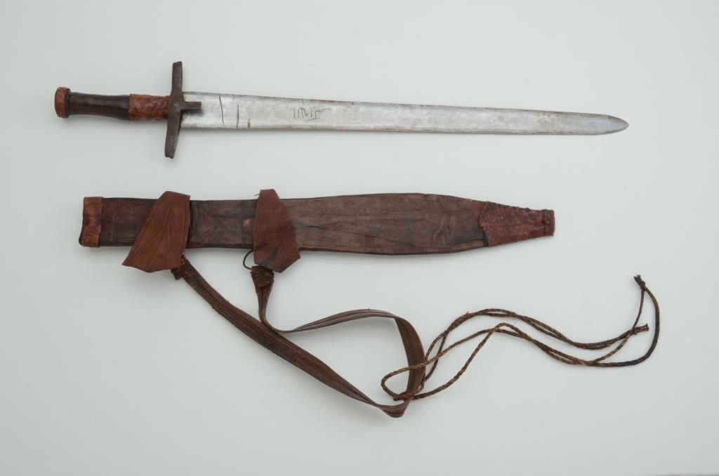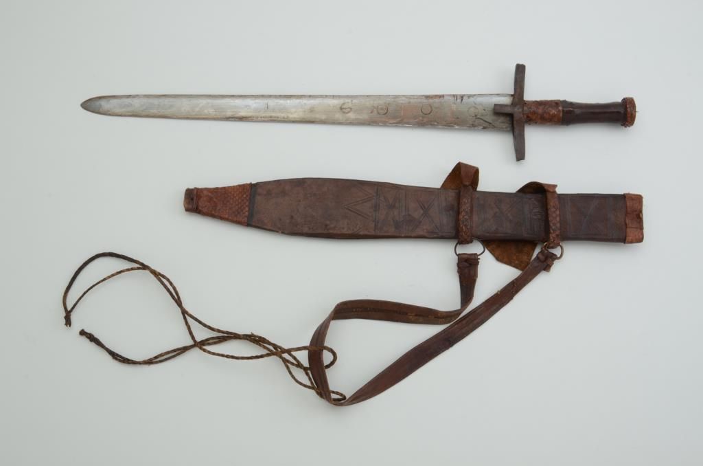 Authentic African tribal sword from ethnic weapons collector. Circa 1890-1930 with scabbard. Est.: $150-$300