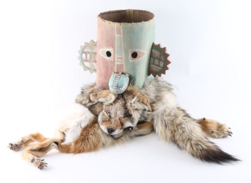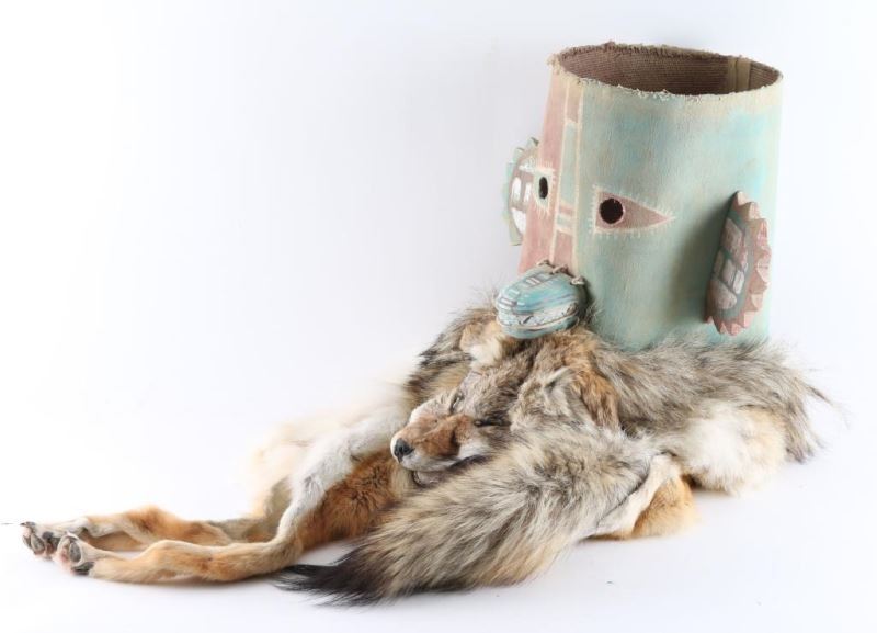 with fur and wood appliances for mouth and ears. Circa 1950s-60s. The body is a course burlap type (Sack Cloth) that is painted. A good collector’s item rarely sold out of tribes.