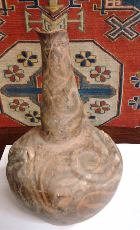 Authentic Ancient Artifact 100 A.D: Ceramic Vessel w. Base & Raised Relief DesignHarappa Sasanian Afghani Region. (Authentic, Genuine & Original-Guaranteed) (Afghanistan-Pakistan)
