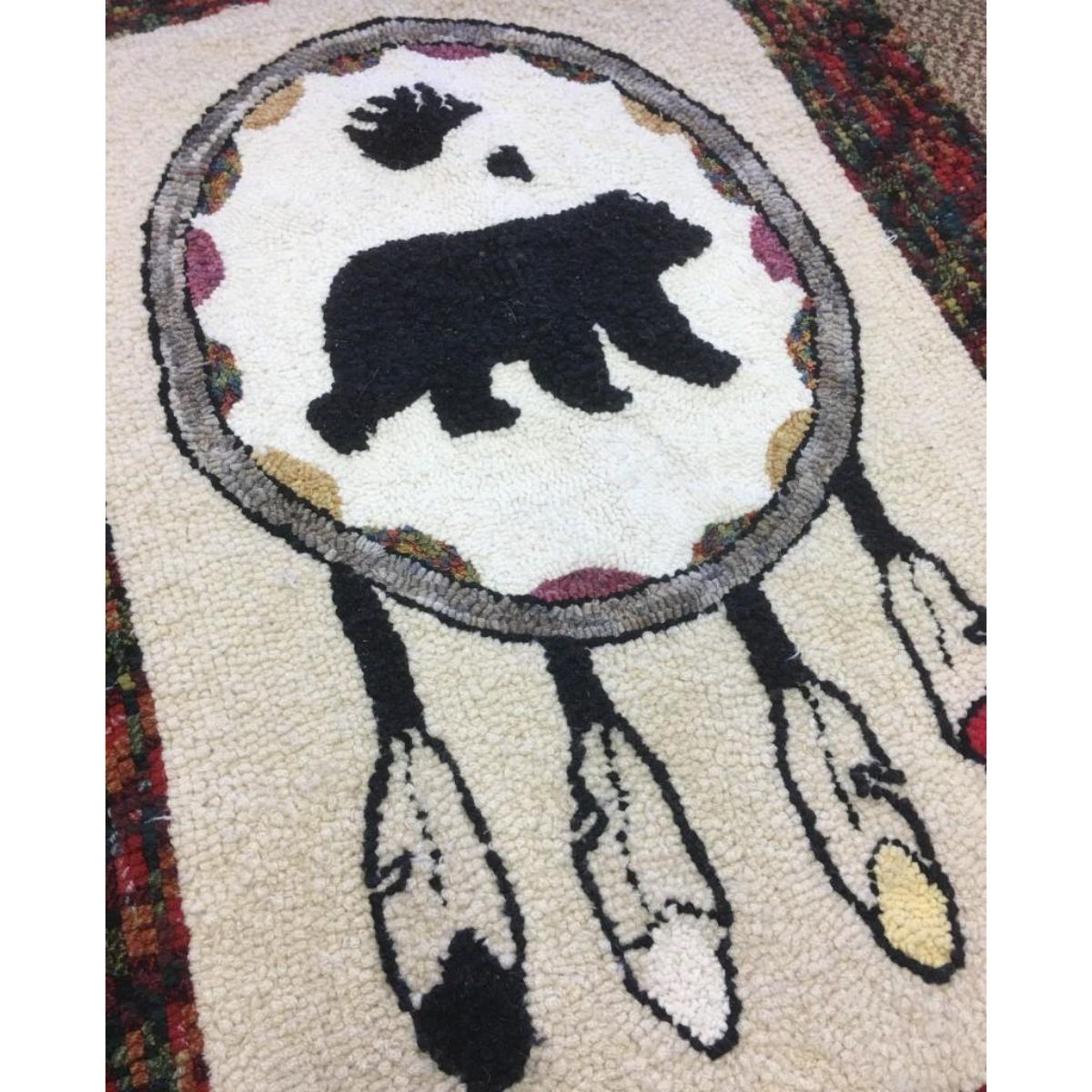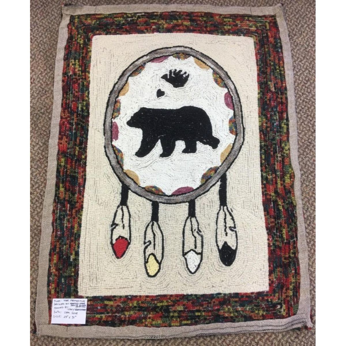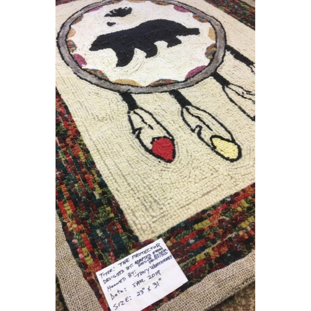 Authentic Anthony Weatherby First Nations Hand Hooked Rug. A Custom Design In Fabulous Condition. Anthony Is A Distinguished Canadian Artist Located East Of Toronto In The Small County Area Of Northumberland. Anthony Weatherby`s Rugs And Art Work Have Been Highlighted And Won Awards Across Canada. Hand Hooked Original Hooked Rug. View Photos For Further Detail