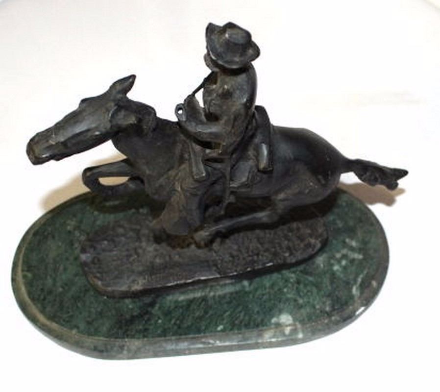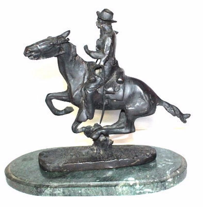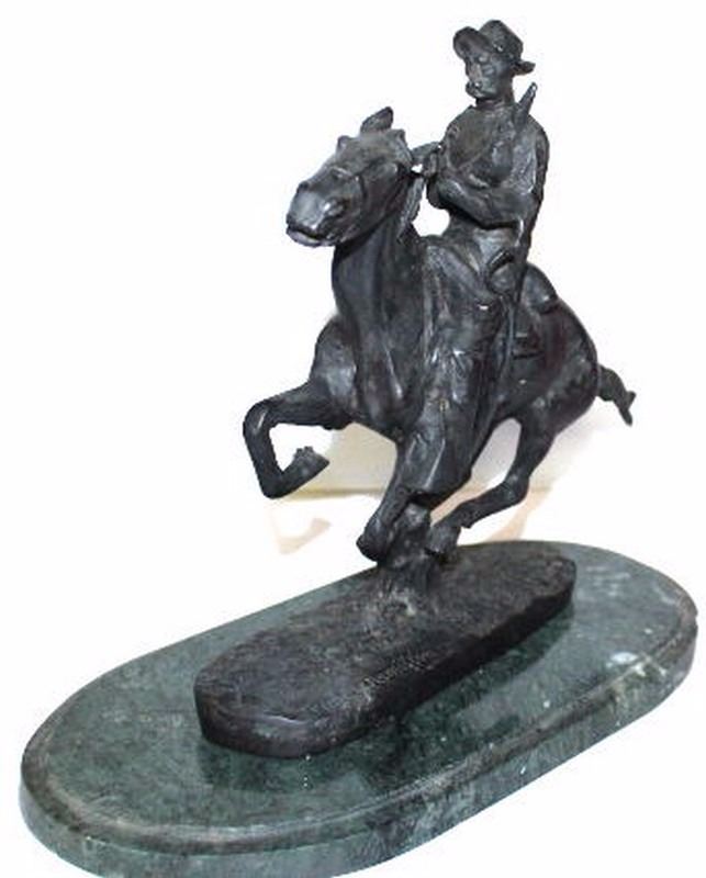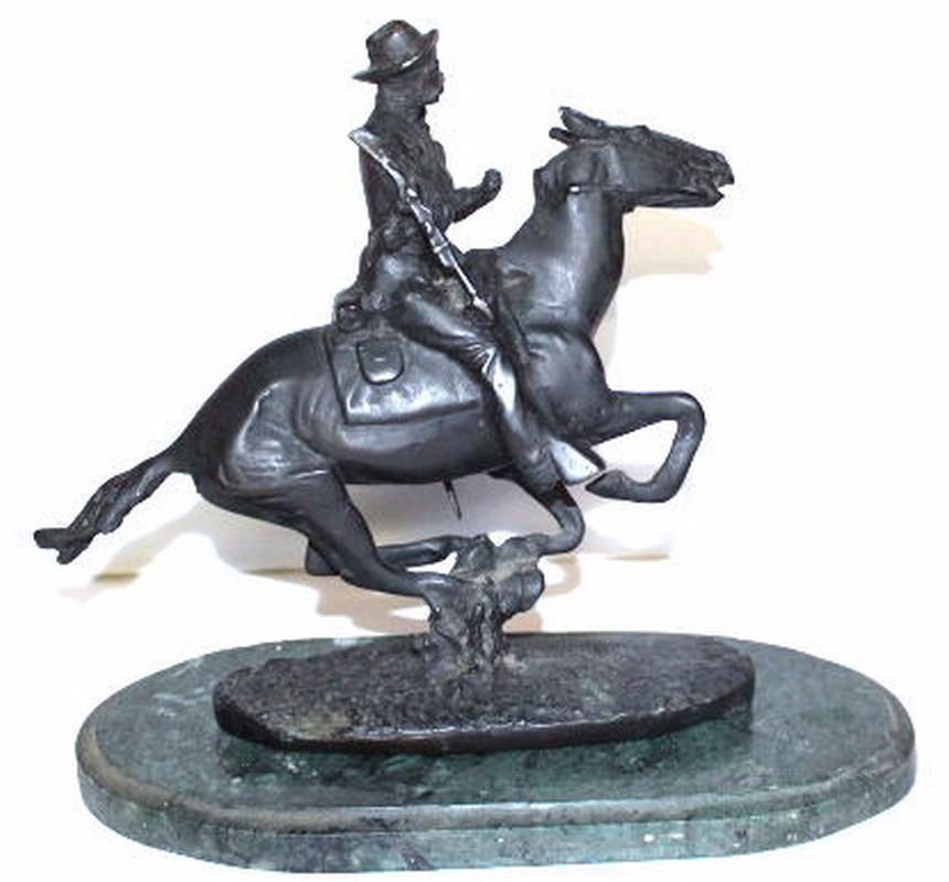 Not-a-Remake-Not-New: Antique Signed Frederick Remington Bronze on Marble "Trooper in the Plains"