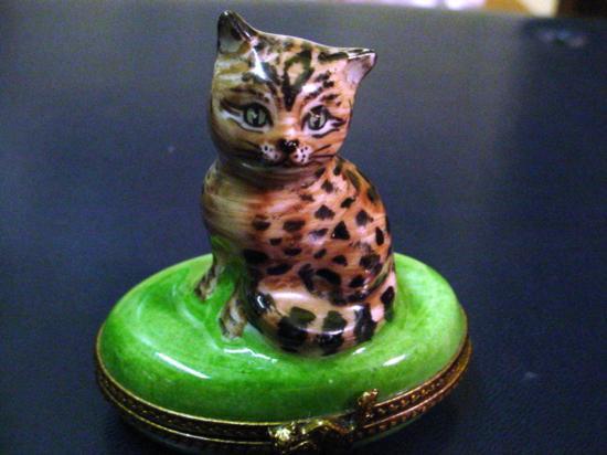 Authentic hand-painted Limoges box signed by artist from a famous studio! This box was created by an artist, graduate of one of the most prestigious French Fine Porcelain schools. Here is a SUPERB "Cat" hand-painted Porcelain box. Excellent condition, hinges and clasps work fine. This Limoges box is marked "Peint main" (Hand-painted) Limoges France, signed: M-V, as shown in picture. It is in mint condition (No chips, cracks or repairs). Would be a great value to any Limoges box collection. For the shipping...don't worry, we ship from Texas (not from France)! 2.5x2.25x1.75