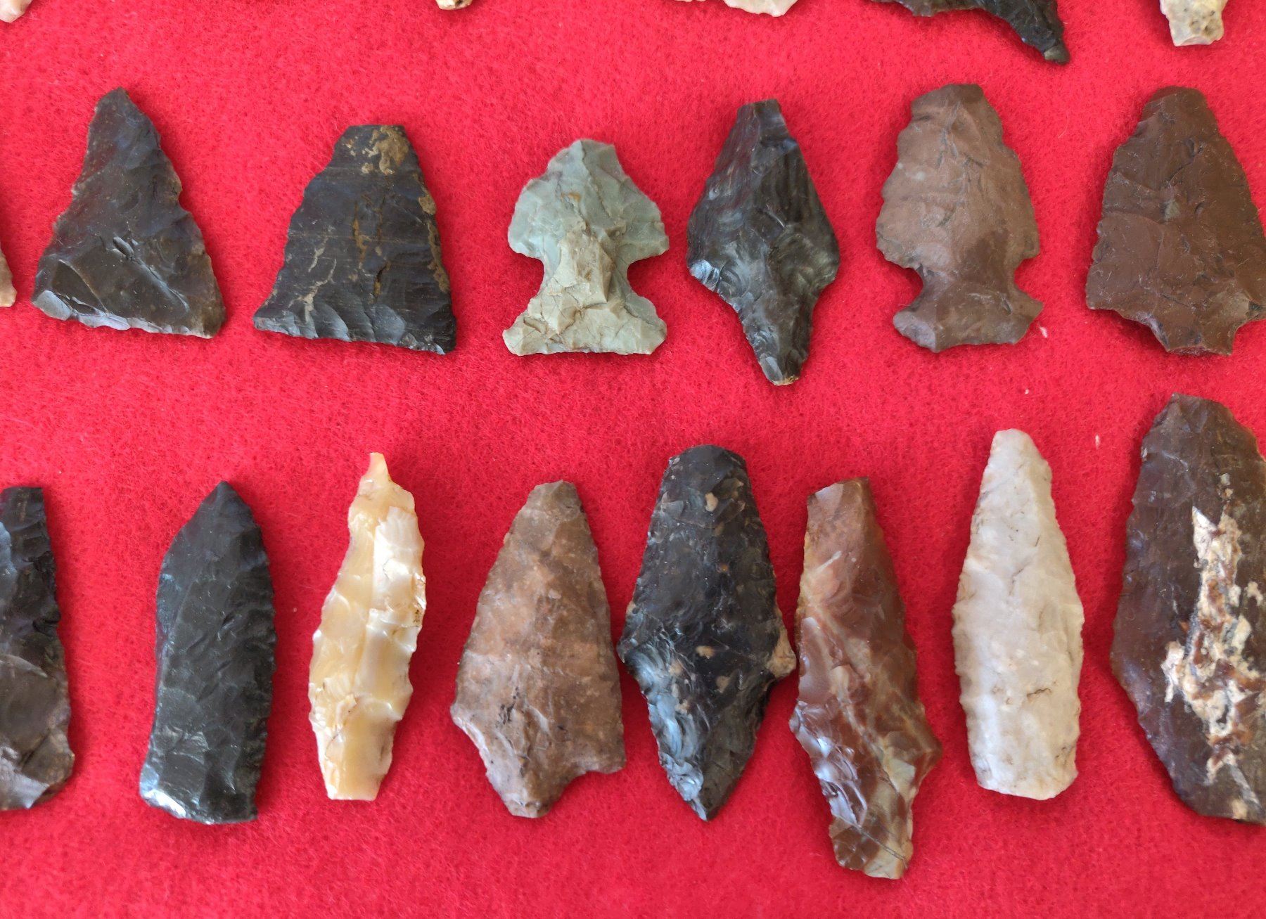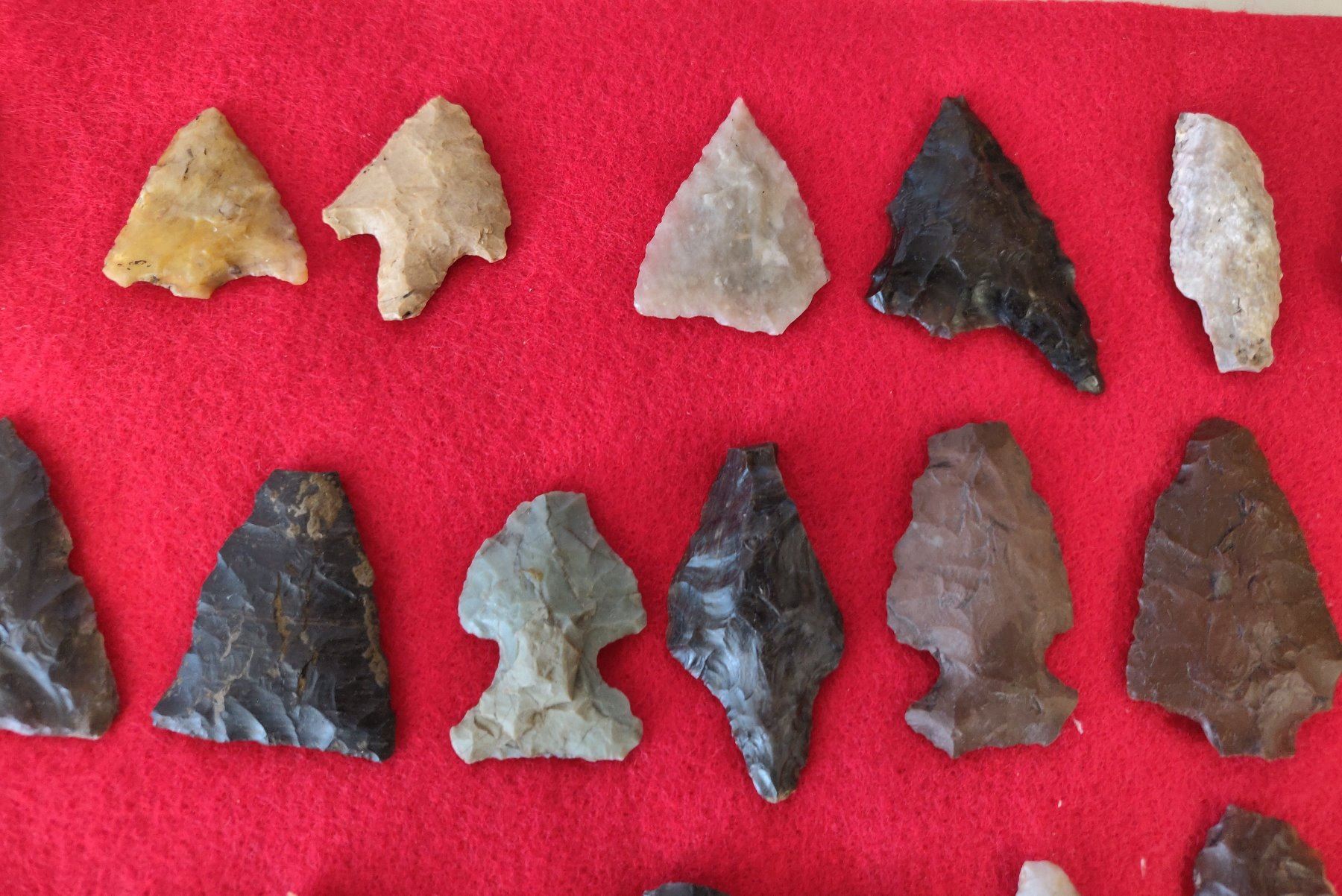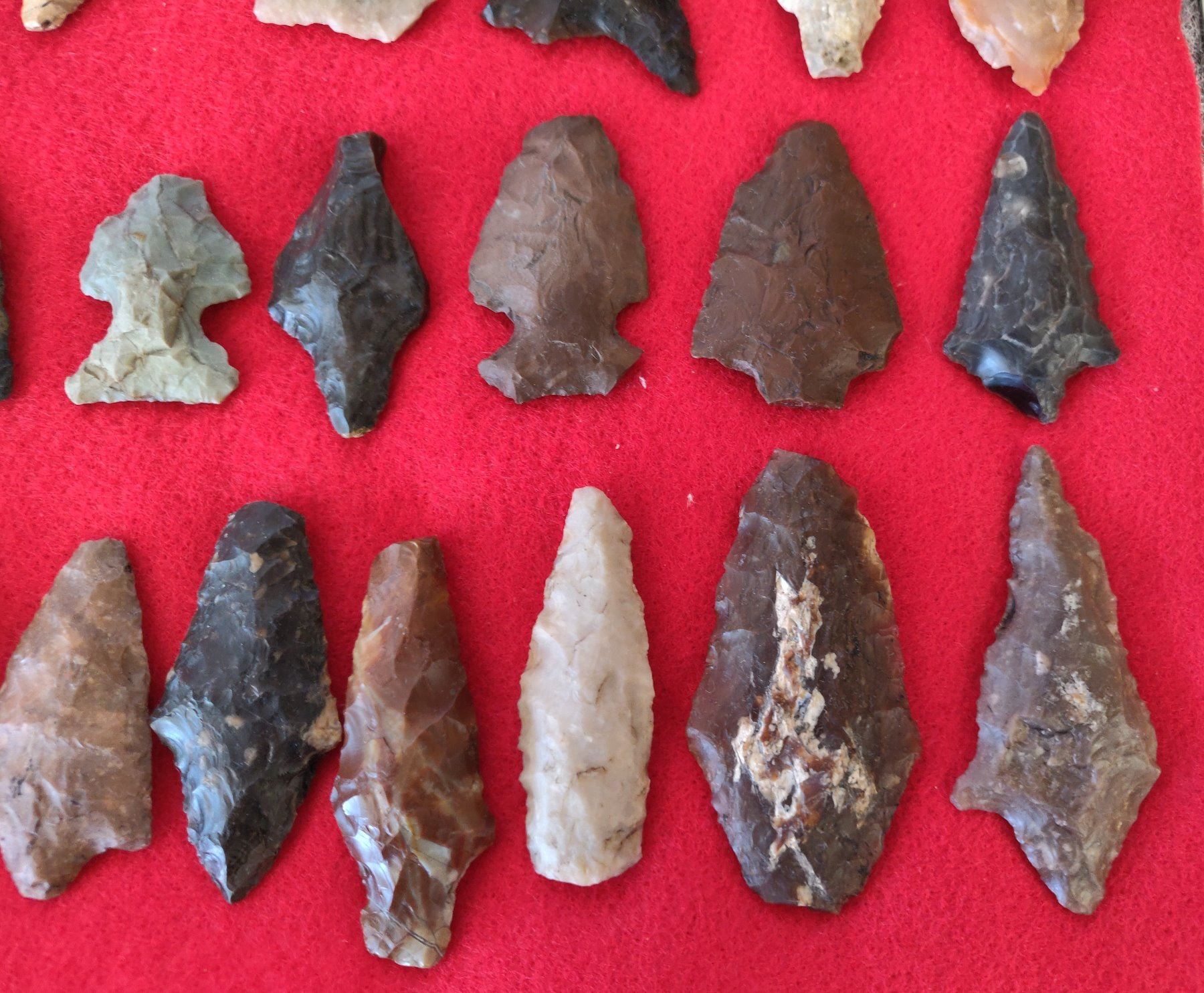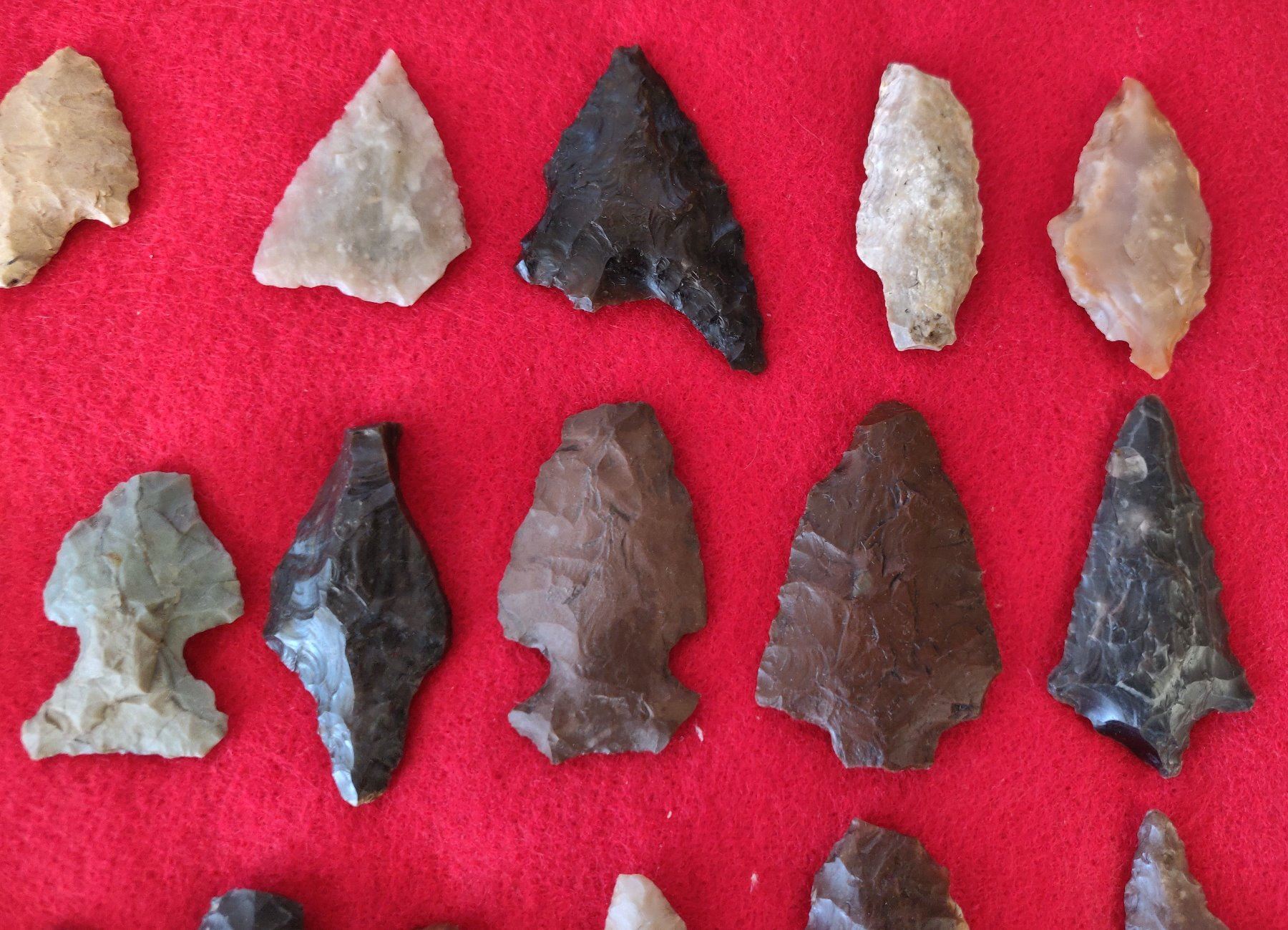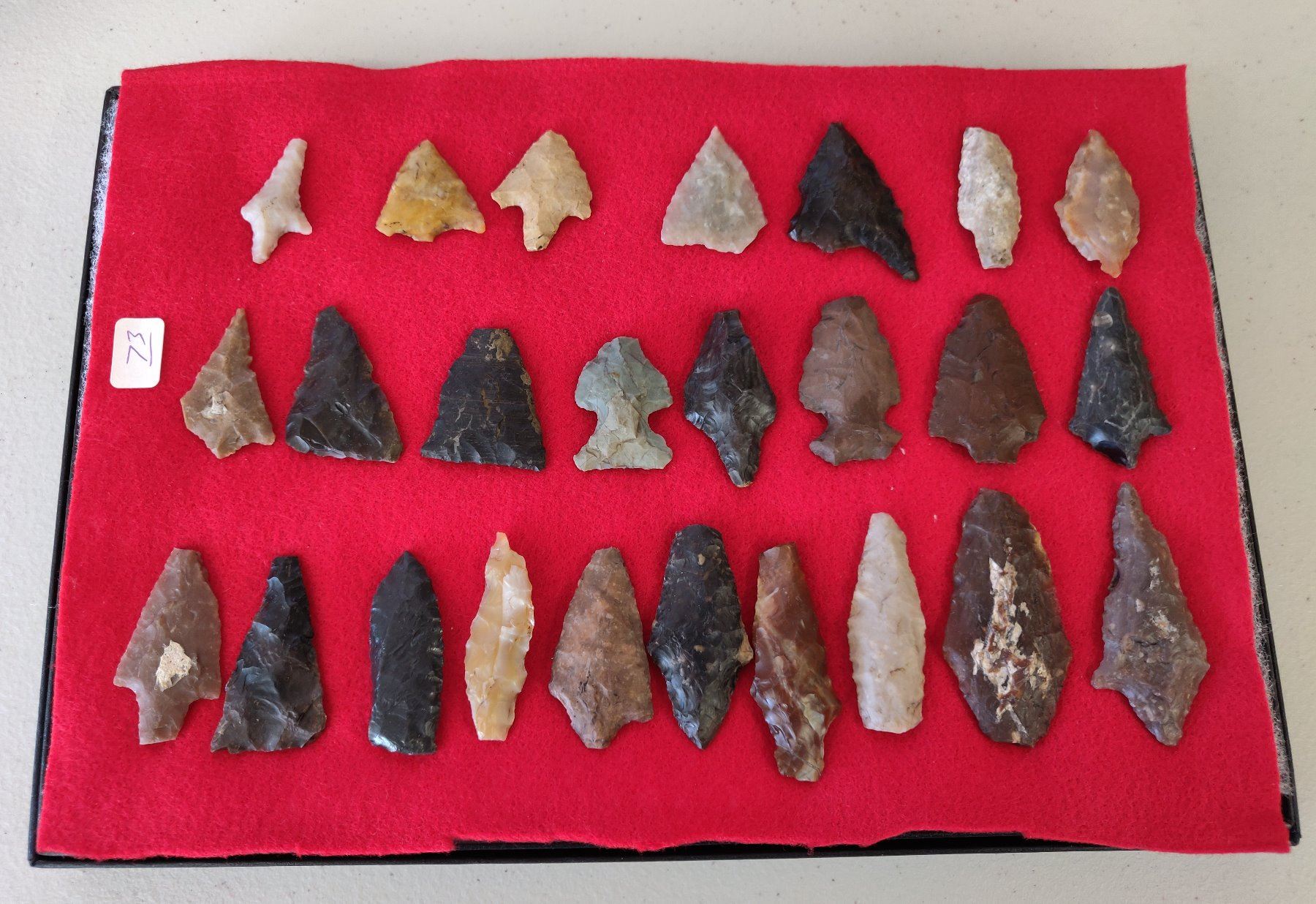 Authentic Chumash Collection, pre-historic items. Made of chert, flint and obsidian, the longest item measures 2 1/2" long. Santa Barbara County, California. Good study pieces, frame not included. Condition: As found, see images. Shipping: $24.50 w/insurance and signature.