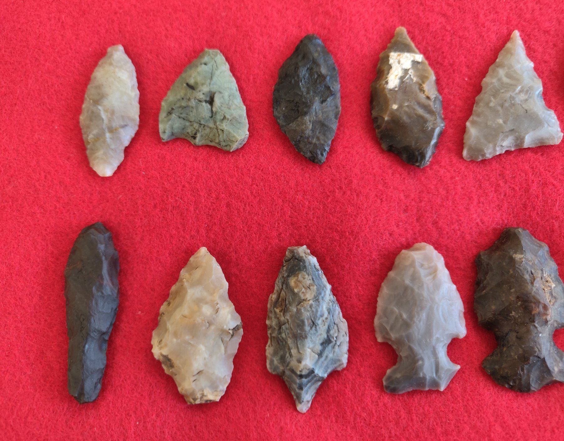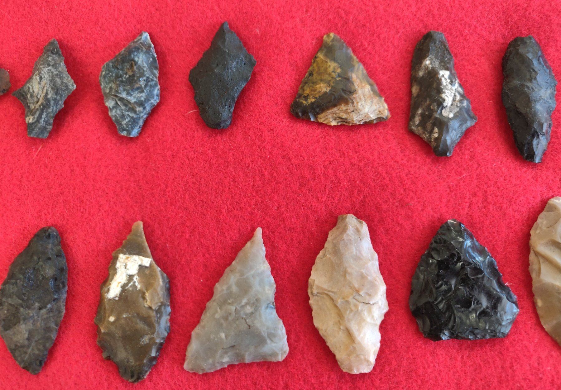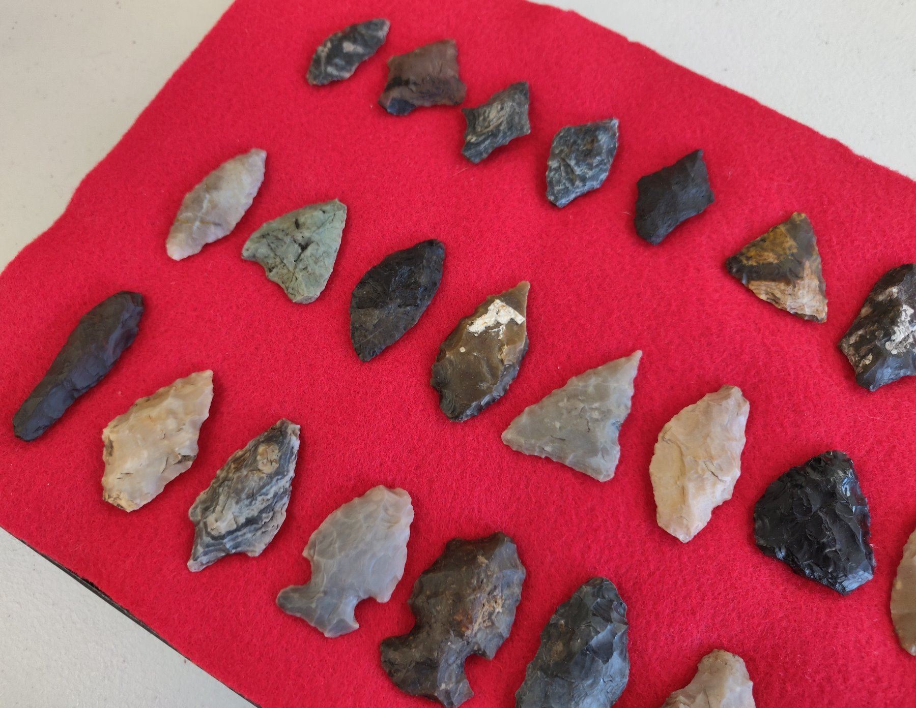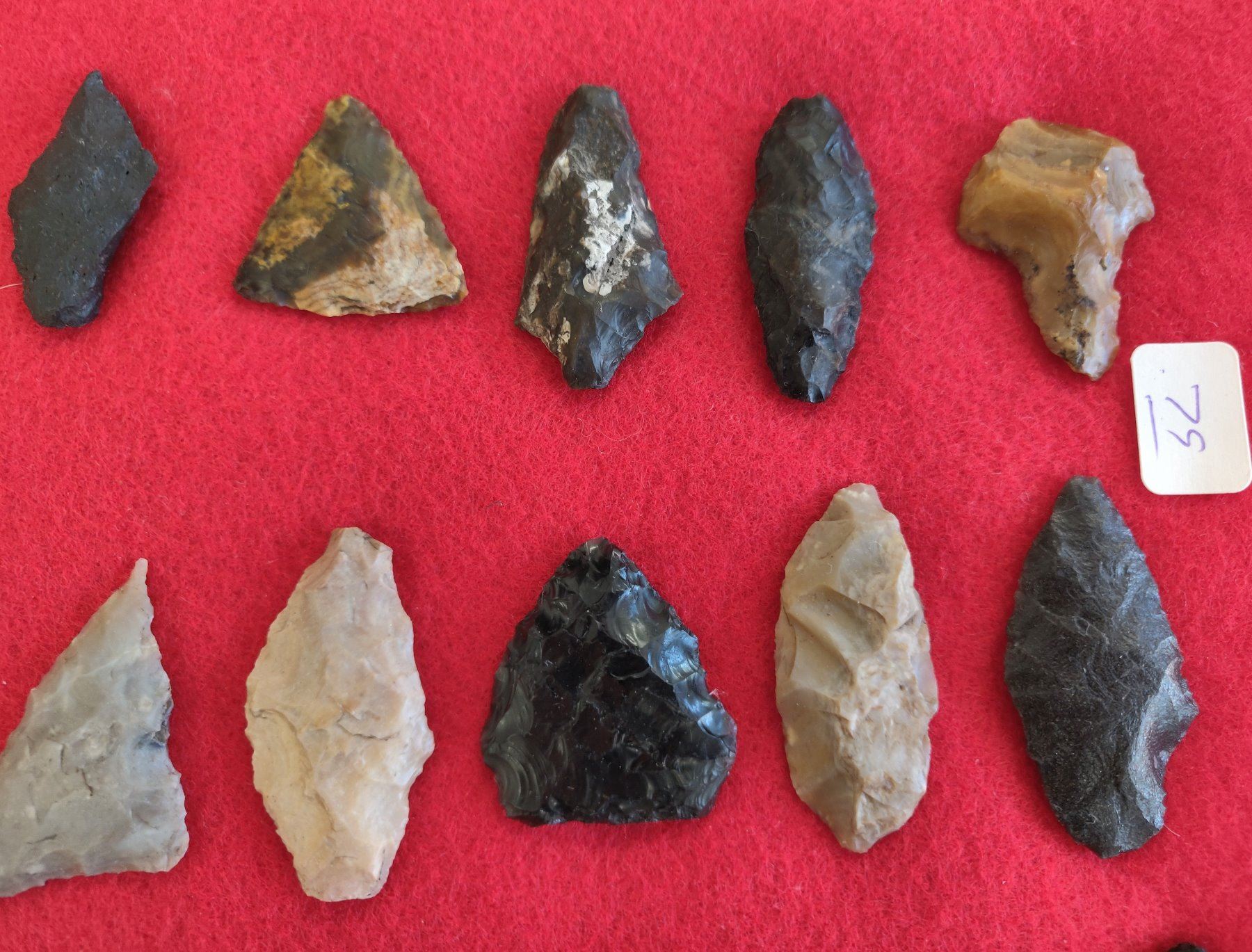 Authentic Chumash Collection, pre-historic items. Made of chert, flint and obsidian, the longest item measures 2" long. Santa Barbara County, California. Good study pieces, frame not included. Condition: As found, see images. Shipping: $22.50 w/insurance and signature.