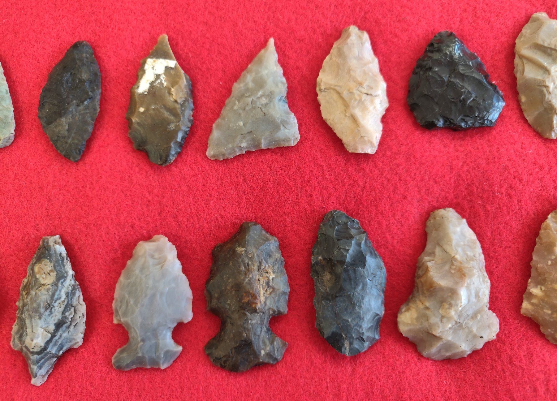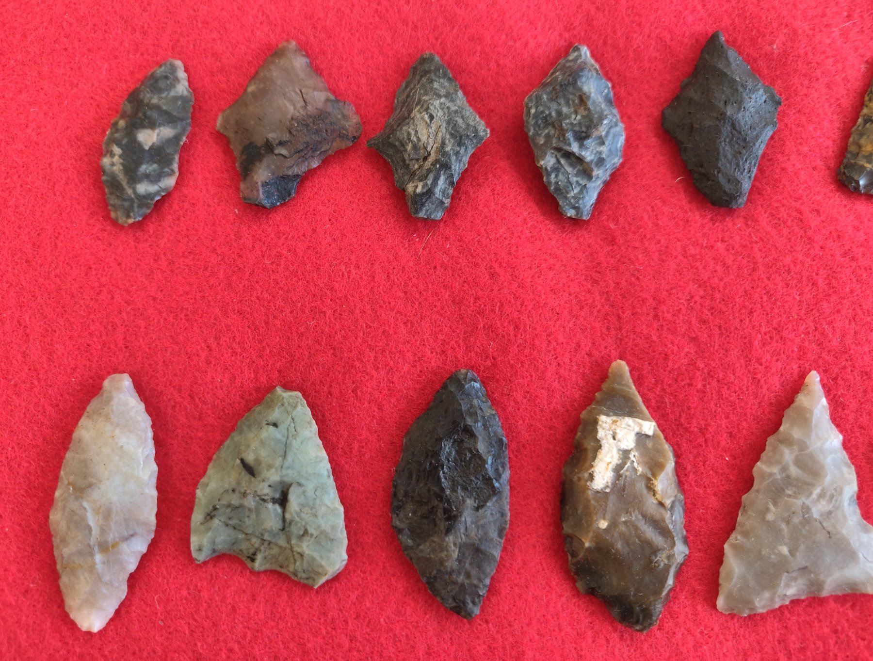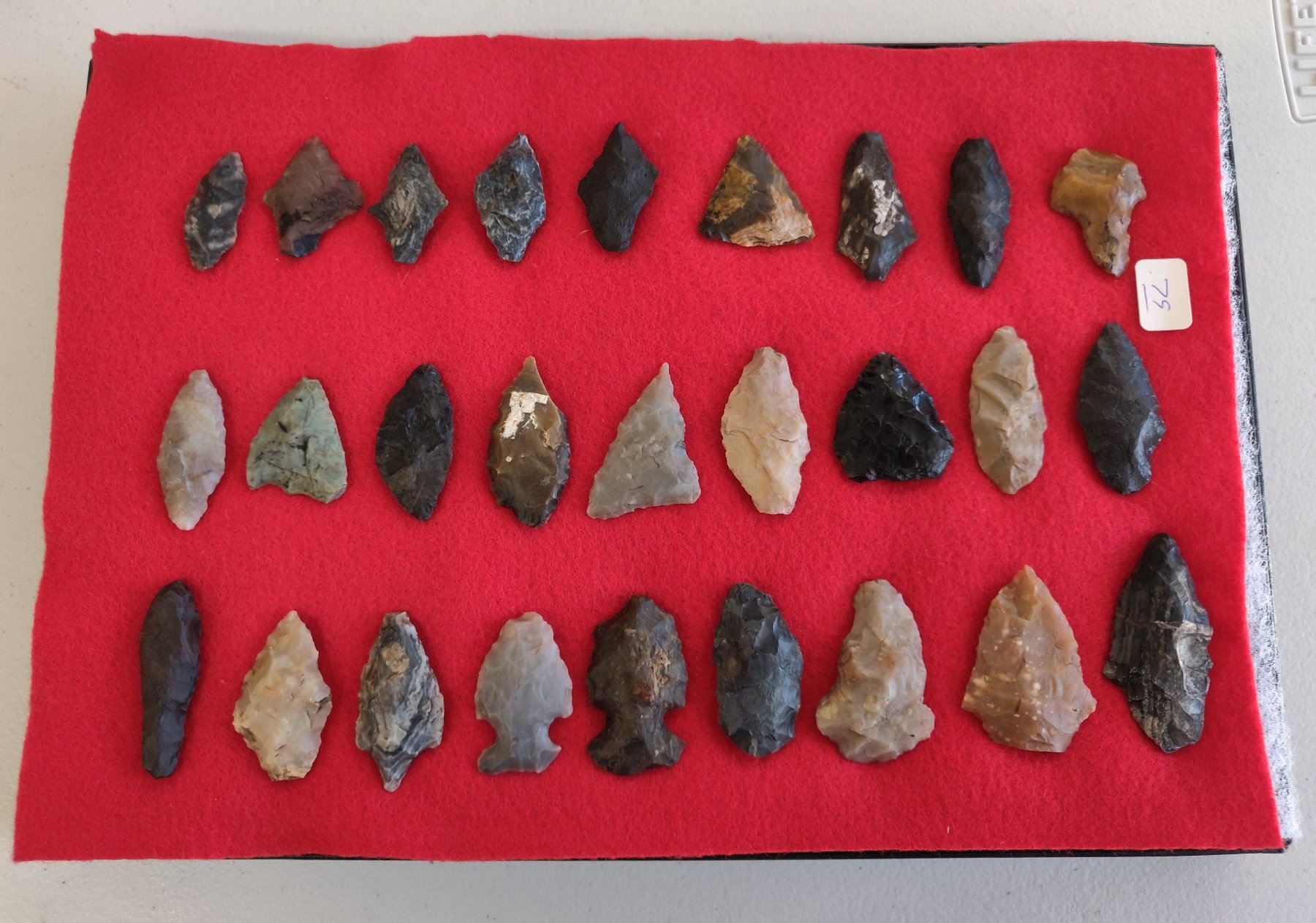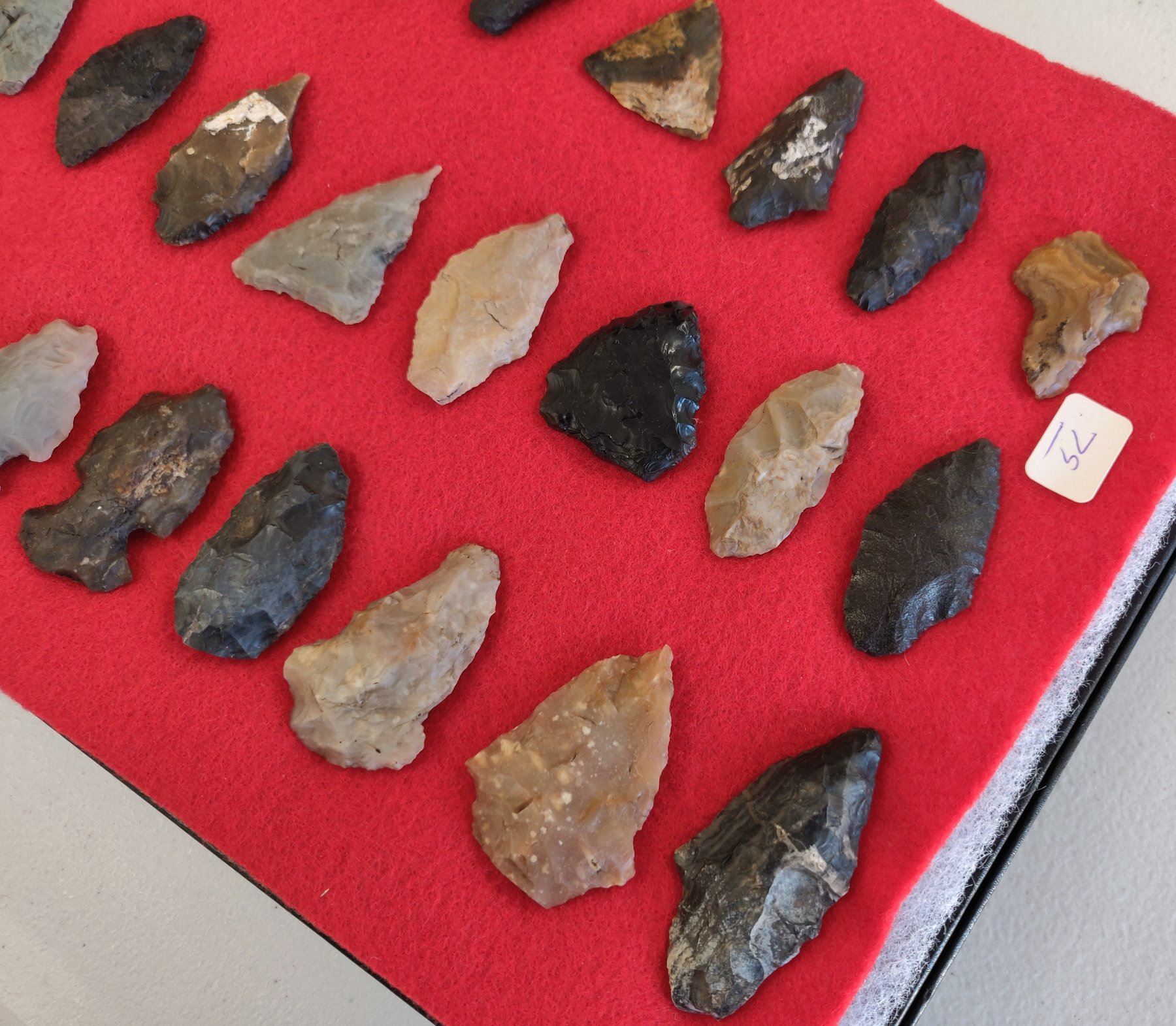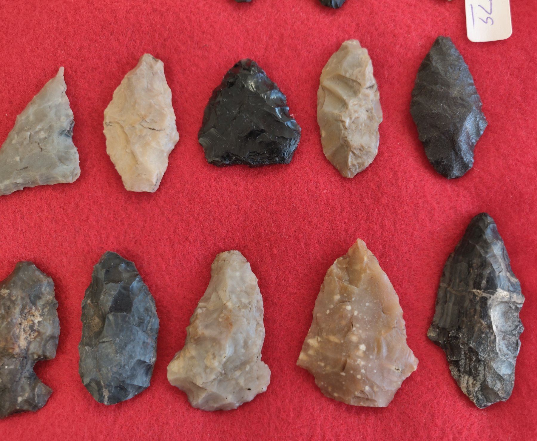 Authentic Chumash Collection, pre-historic items. Made of chert, flint and obsidian, the longest item measures 2" long. Santa Barbara County, California. Good study pieces, frame not included. Condition: As found, see images. Shipping: $22.50 w/insurance and signature.
