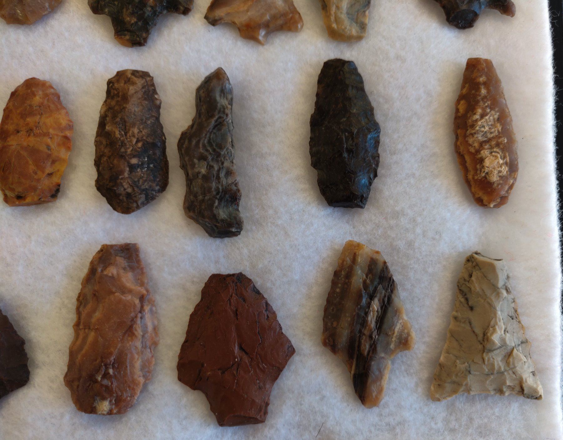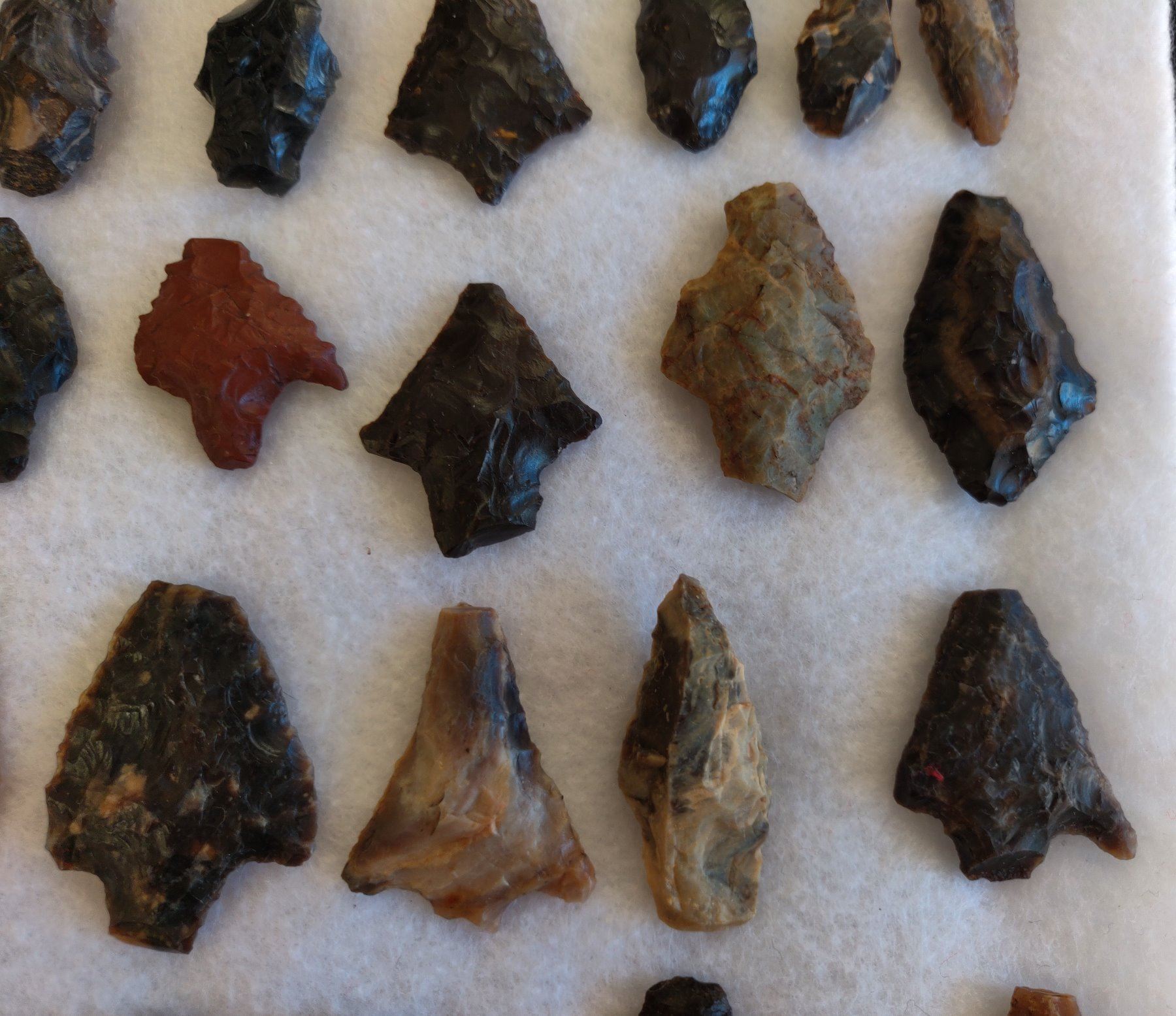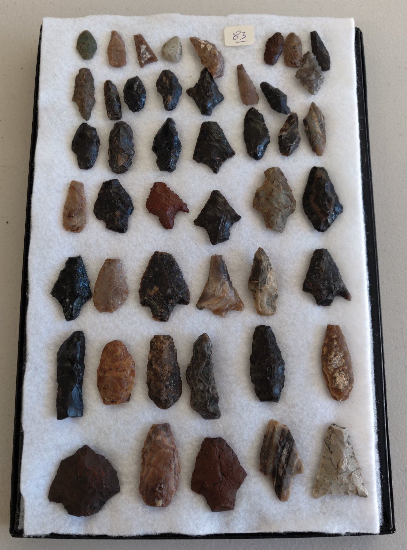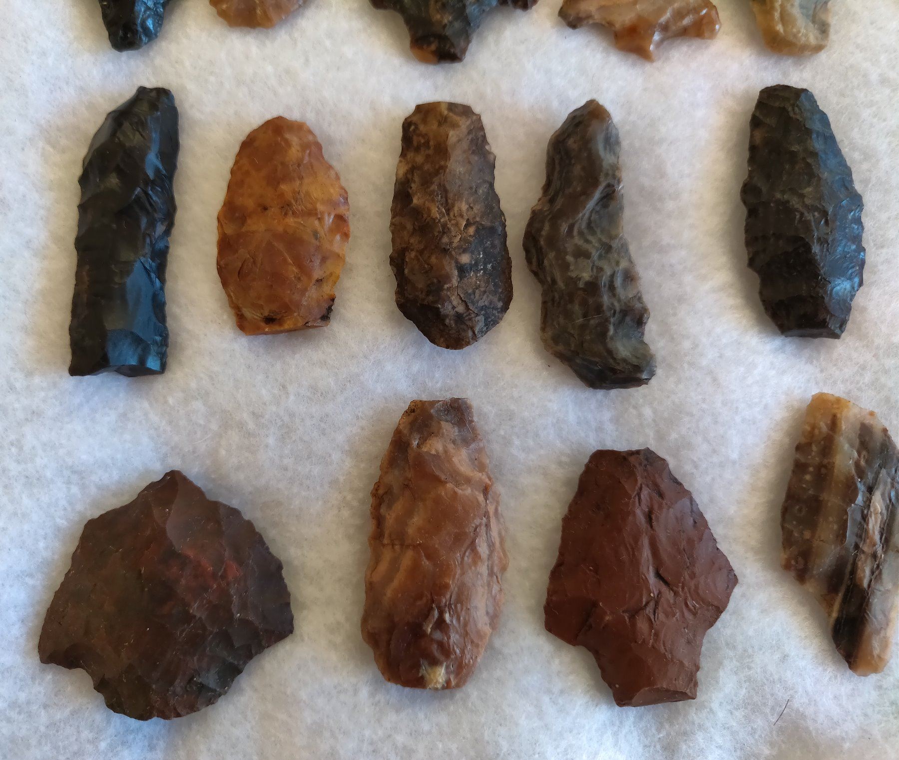Authentic Chumash Collection, pre-historic items. Made of chert, flint and obsidian, the longest item measures 2 1/2" long. Santa Barbara County, California. Good study pieces, frame not included. Condition: As found, see images. Shipping: $26.50 w/insurance and signature.