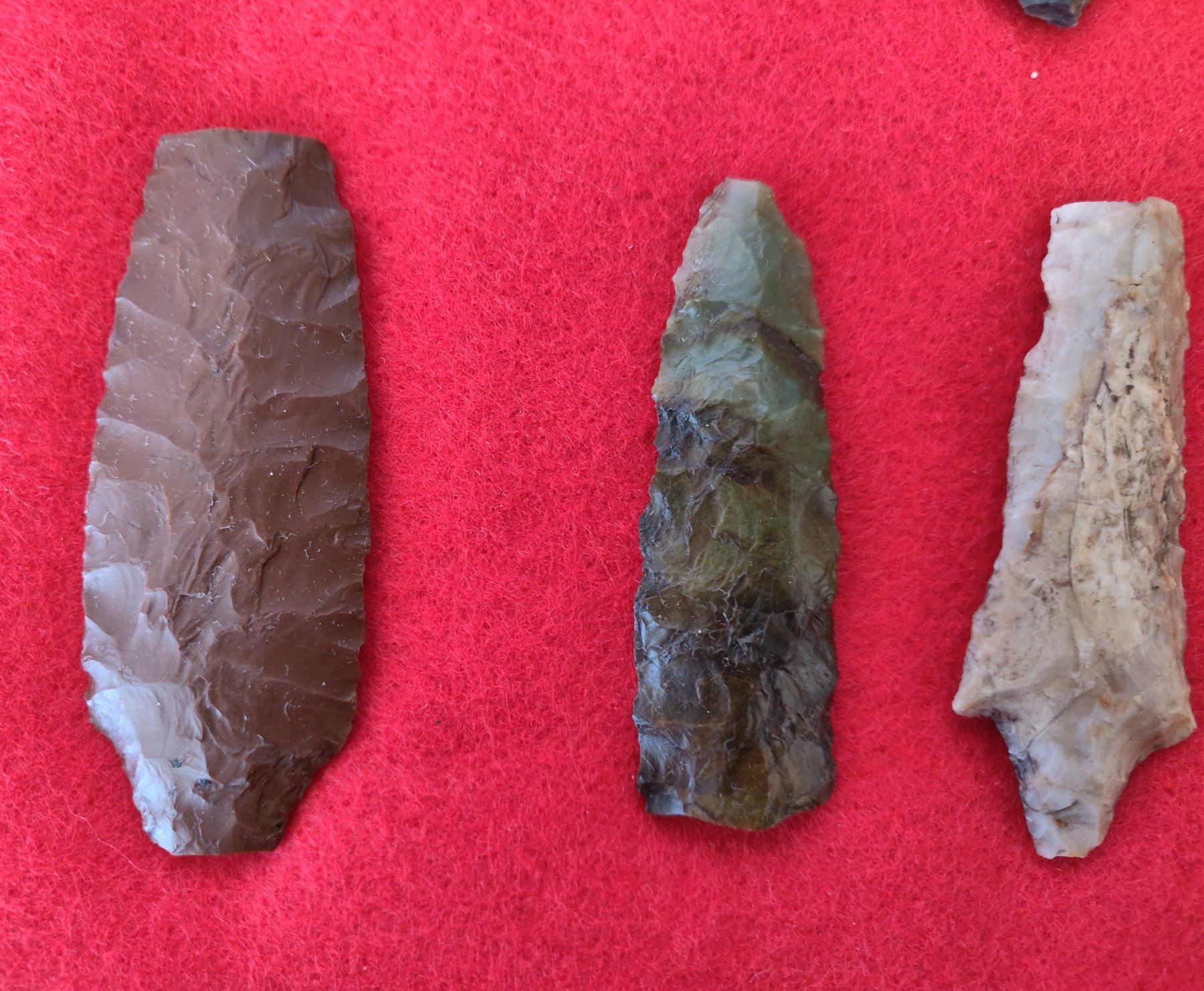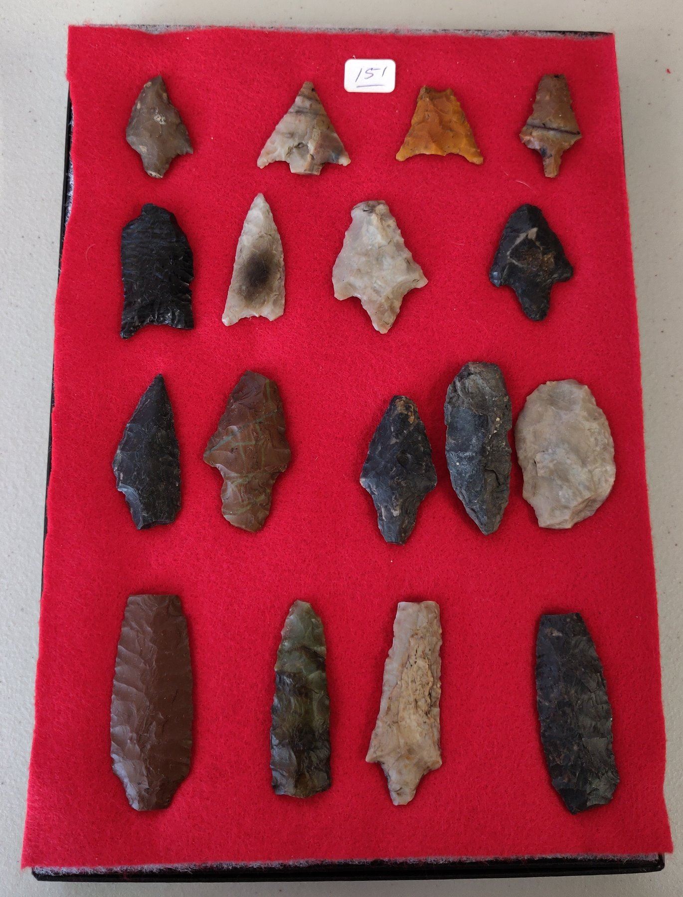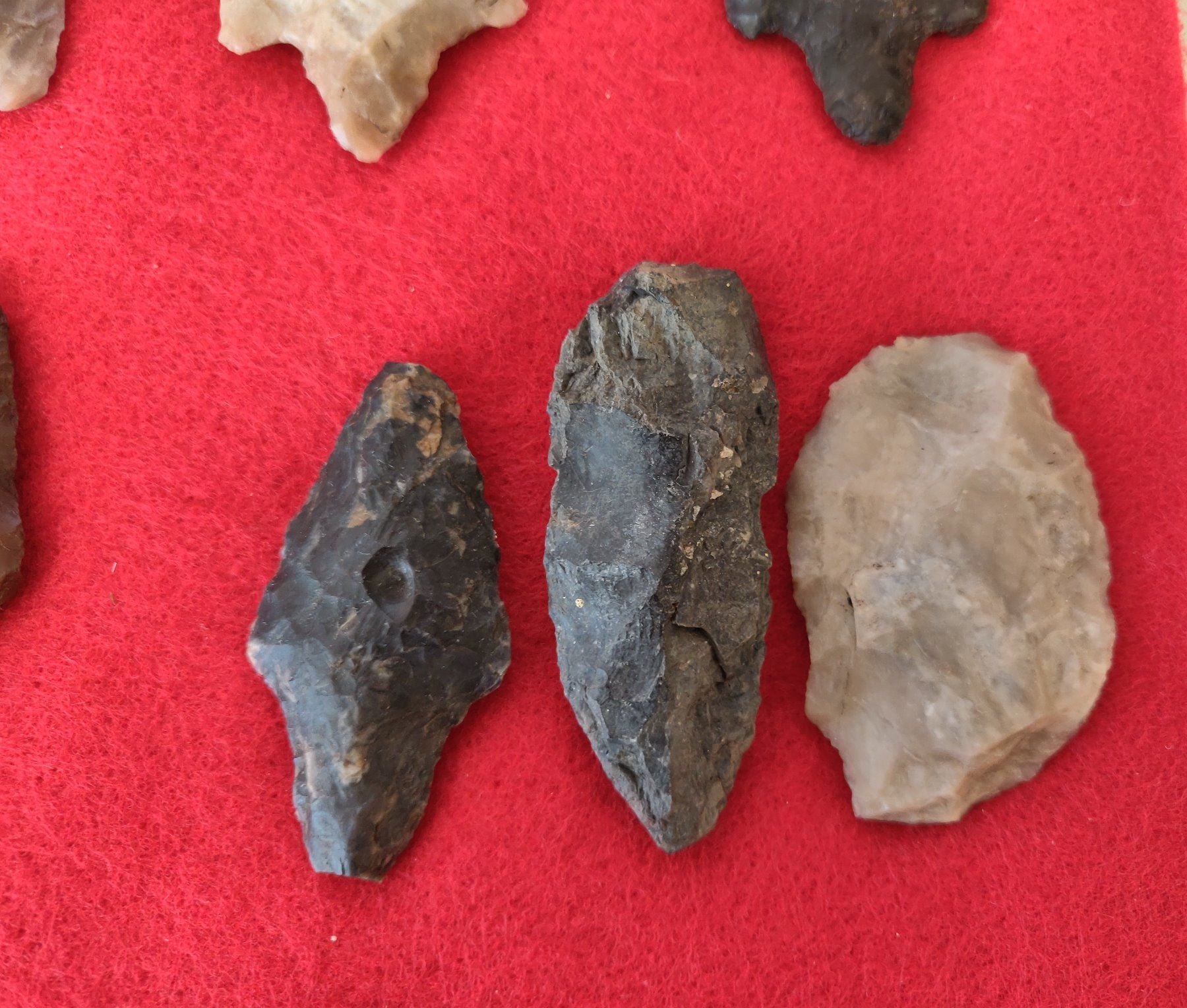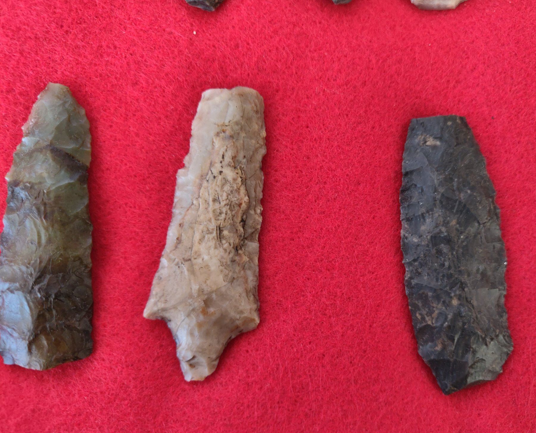 Authentic Chumash Collection, pre-historic items. Made of chert, flint and obsidian, the longest item measures 2 3/4" long. Santa Barbara County, California. Good study pieces, frame not included. Condition: As found, see images. Shipping: $24.50 w/insurance and signature.