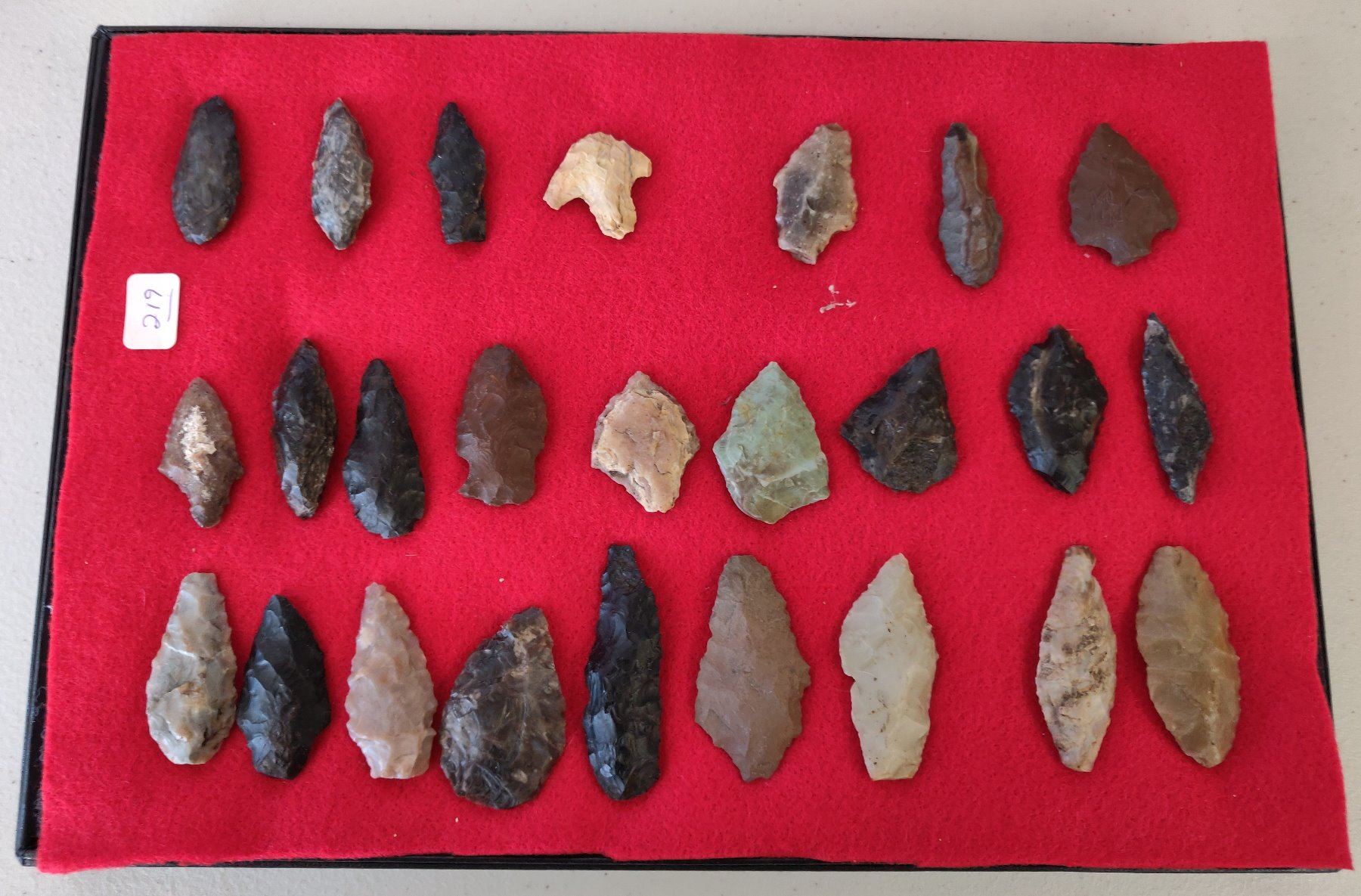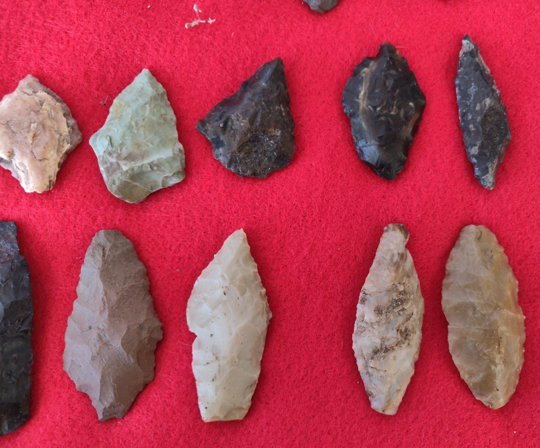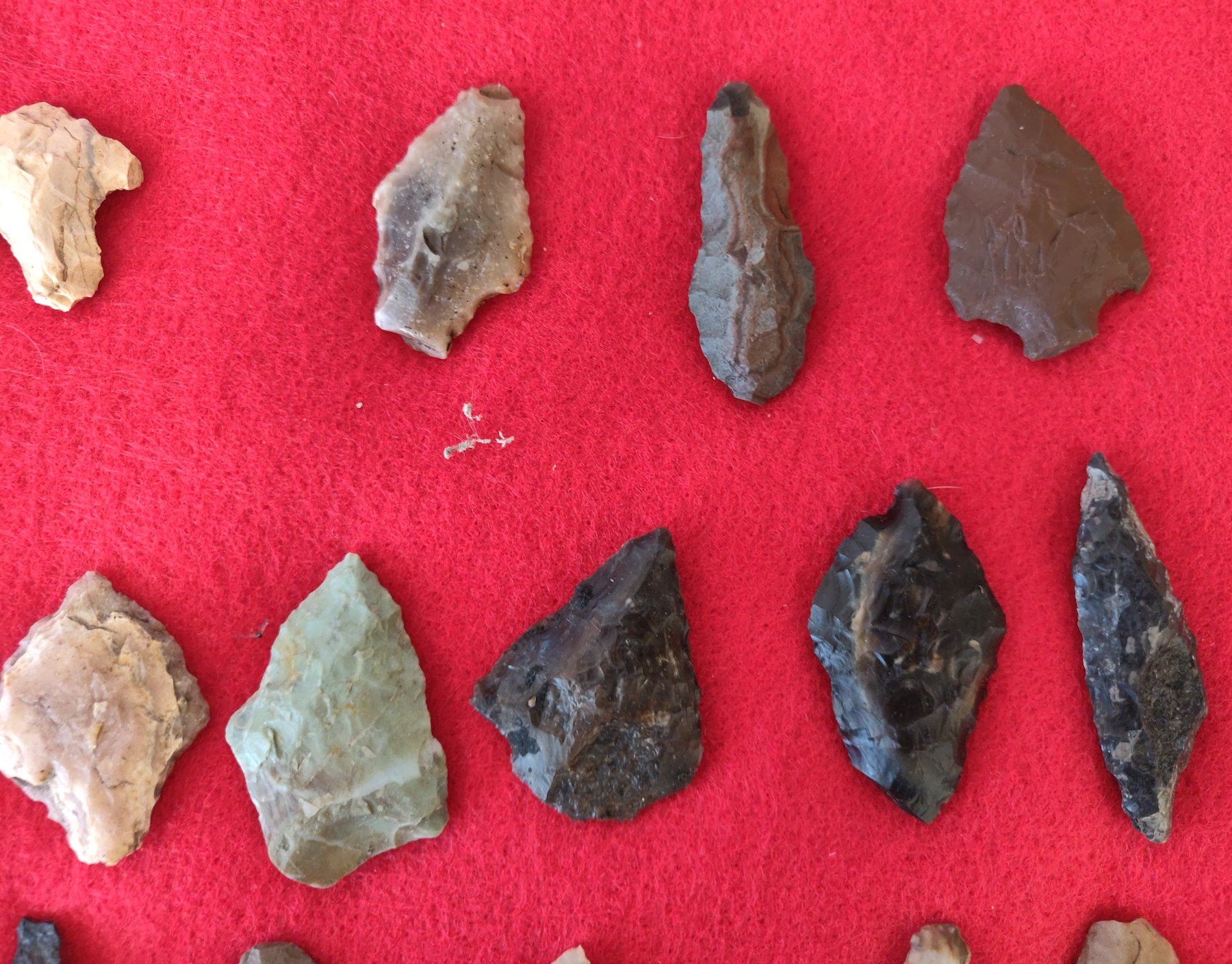 Authentic Chumash Collection, pre-historic items. Made of chert, flint and obsidian, the longest item measures 2 1/2" long. Santa Barbara County, California. Good study pieces, frame not included. Condition: As found, see images. Shipping: $24.50 w/insurance and signature.