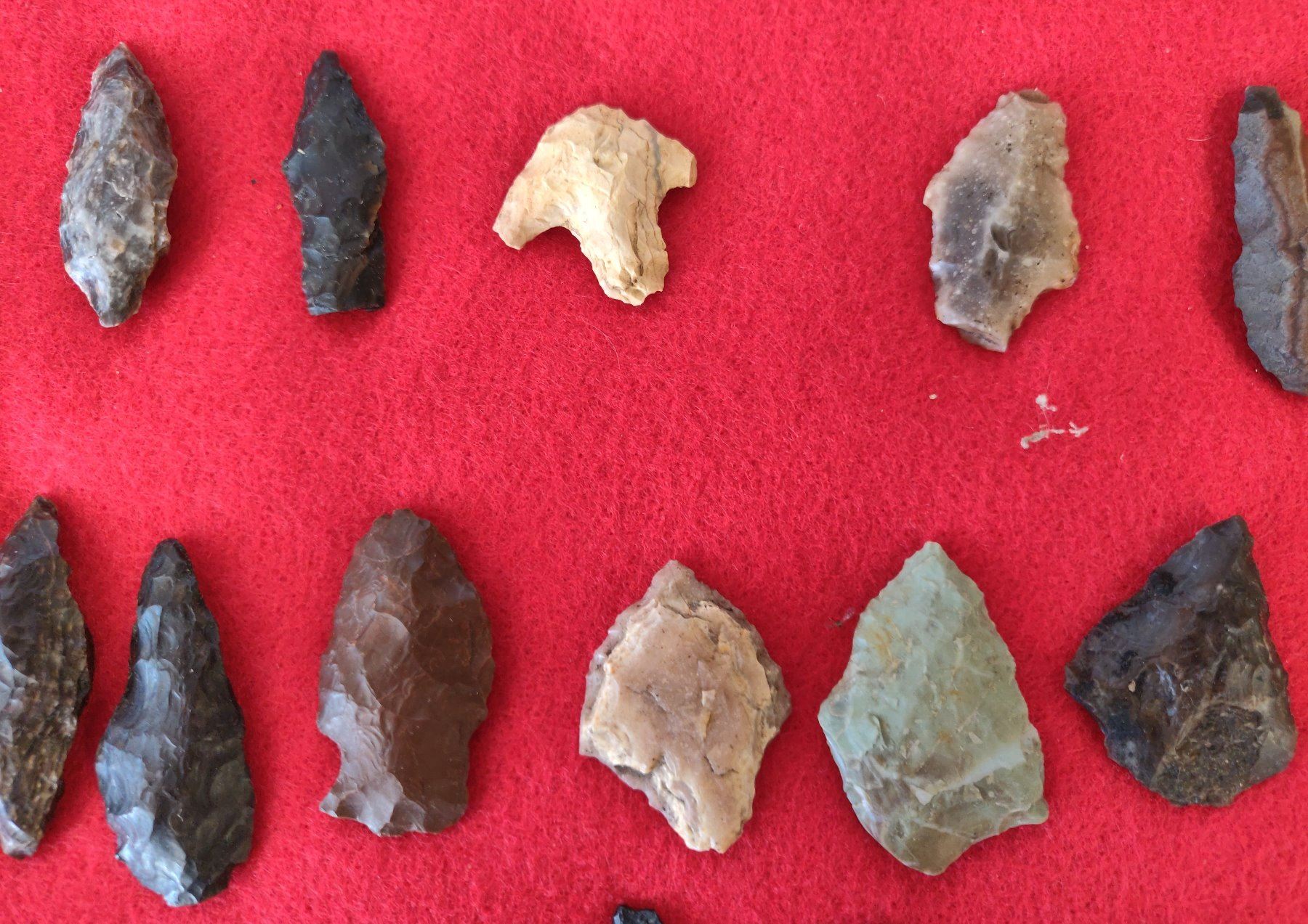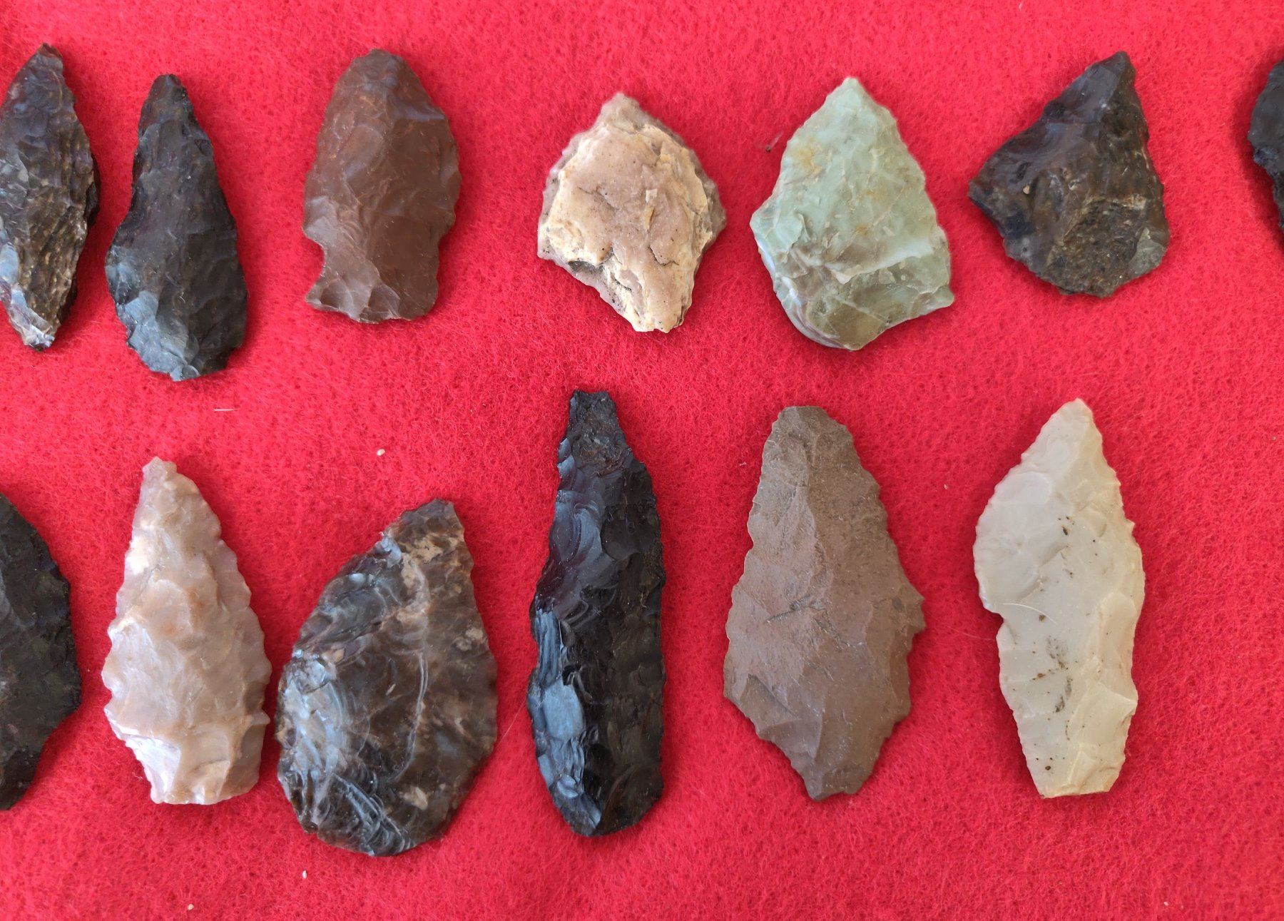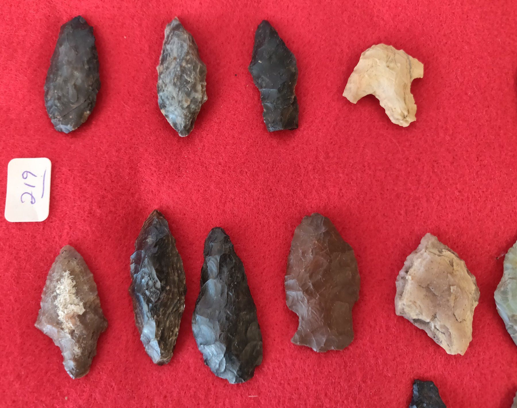 Authentic Chumash Collection, pre-historic items. Made of chert, flint and obsidian, the longest item measures 2 1/2" long. Santa Barbara County, California. Good study pieces, frame not included. Condition: As found, see images. Shipping: $24.50 w/insurance and signature.