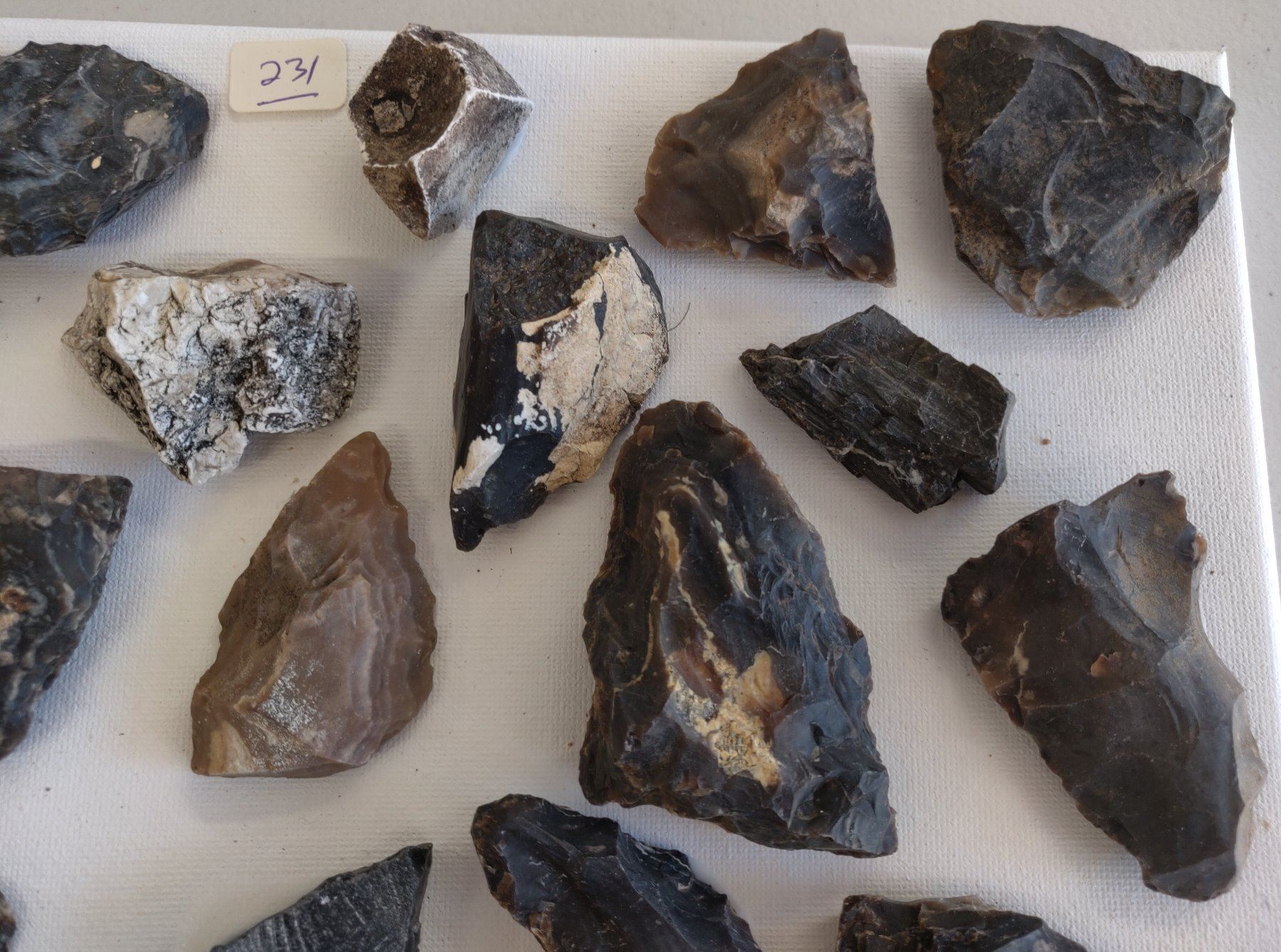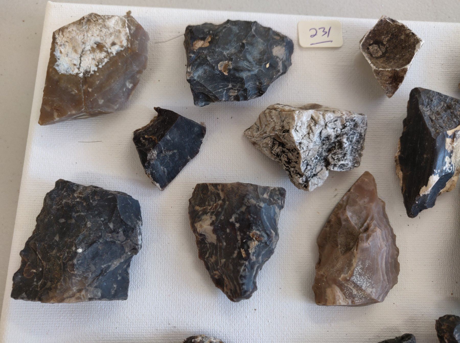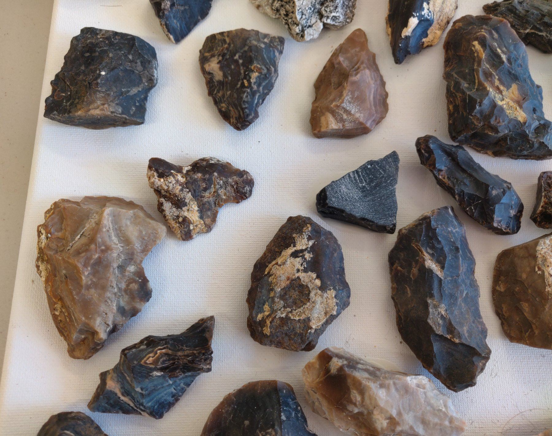 Authentic Chumash Collection, pre-historic items. Made of chert, flint and obsidian, the longest item measures 3" long. Santa Barbara County, California. Good study pieces, frame not included. Condition: As found, see images. Shipping: $20.00 w/insurance and signature.