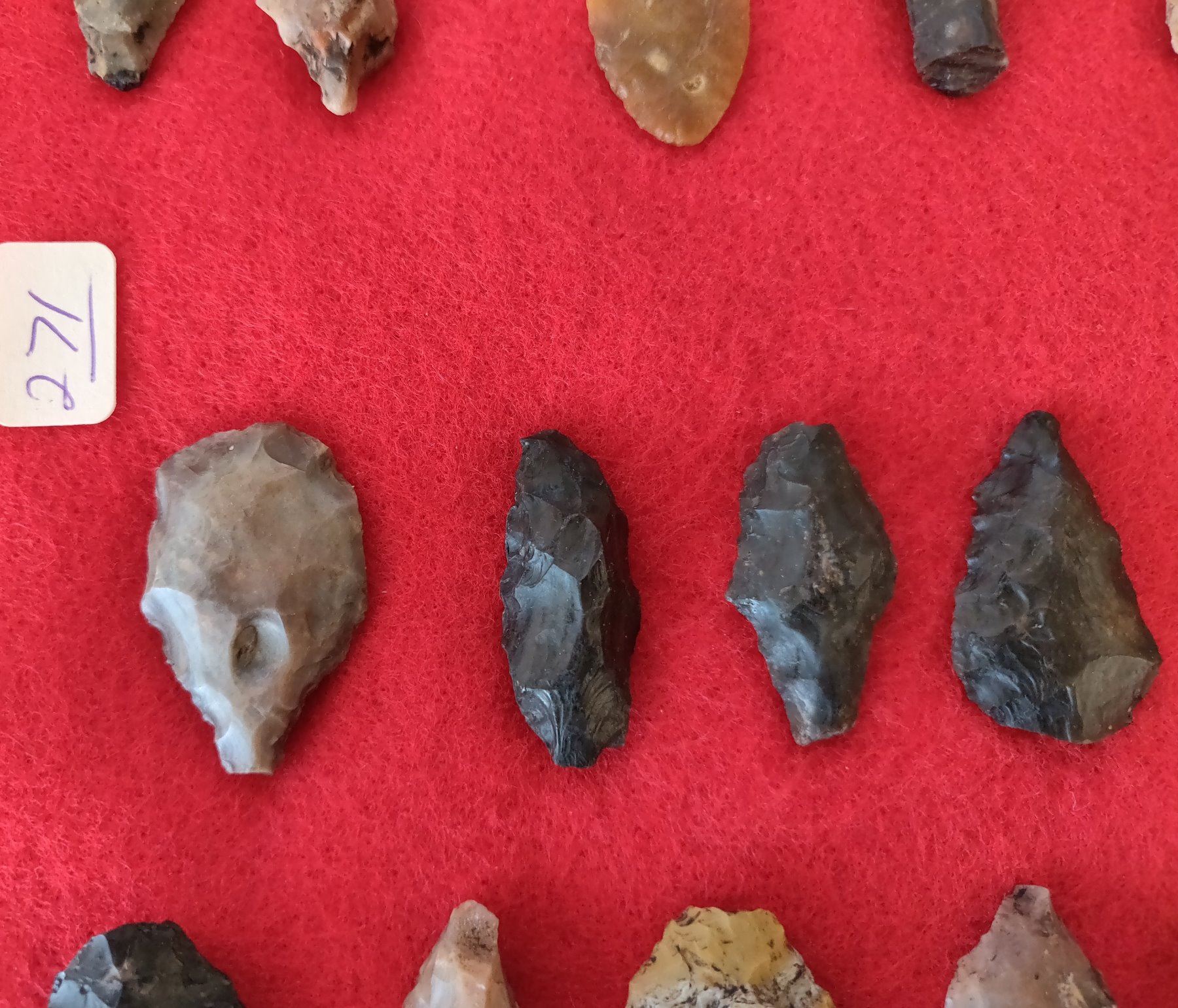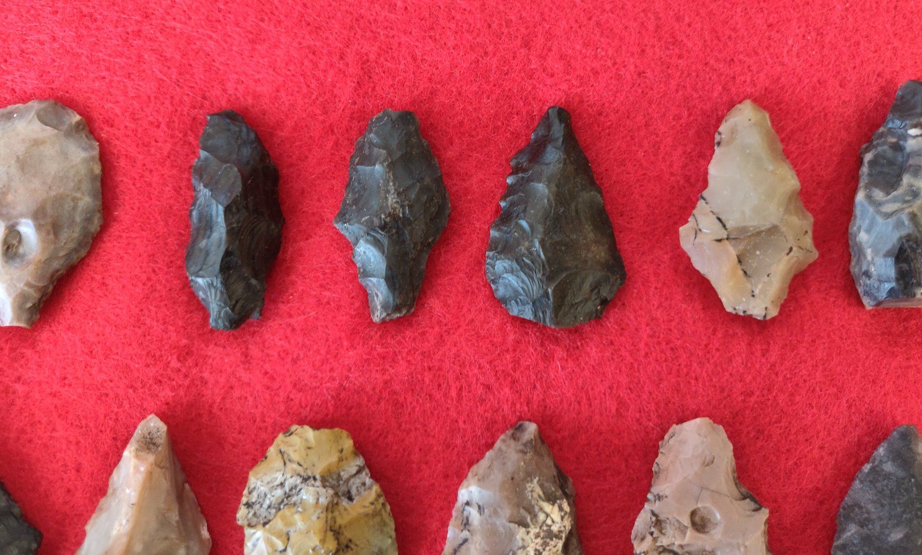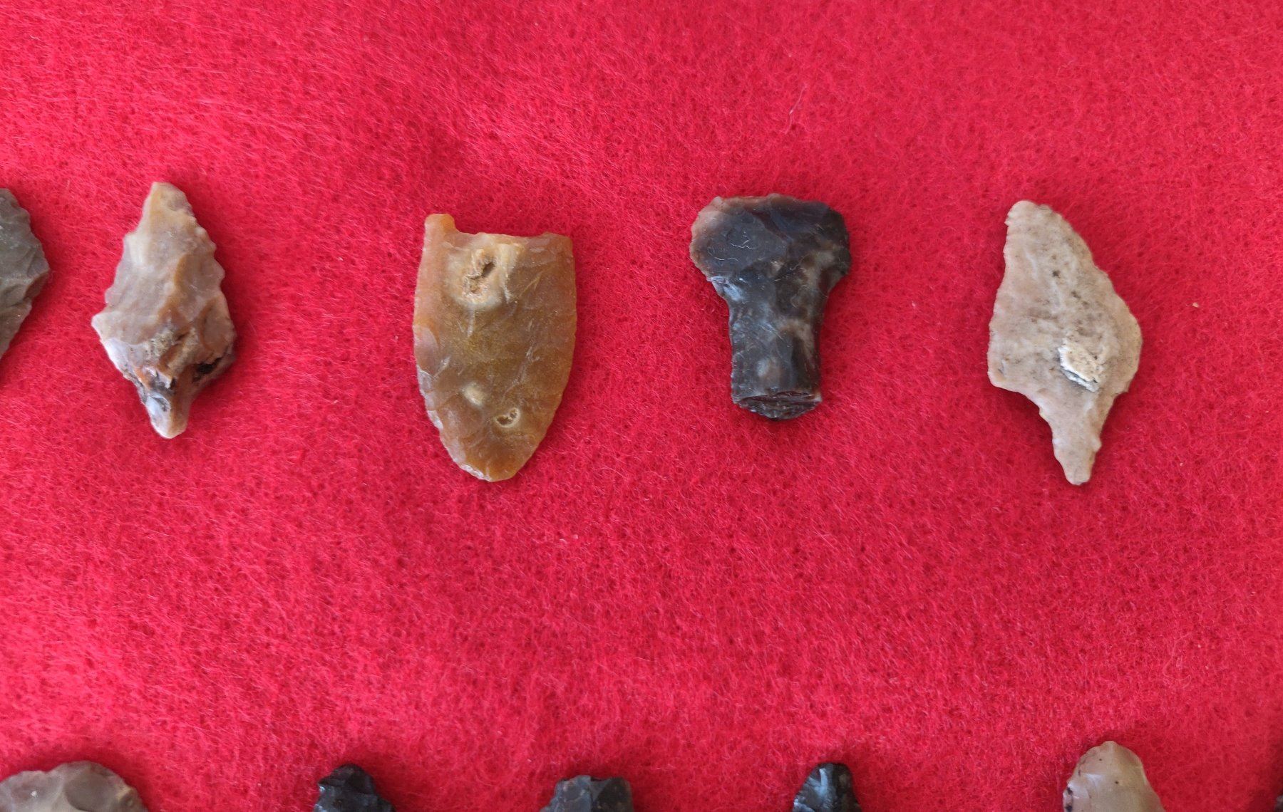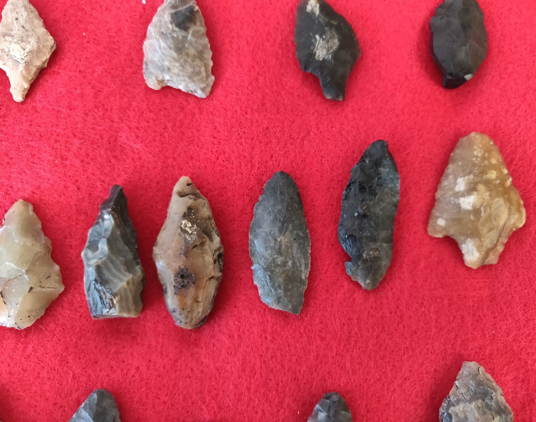 Authentic Chumash Collection, pre-historic items. Made of chert, flint and obsidian, the longest item measures 2" long. Santa Barbara County, California. Good study pieces, frame not included. Condition: As found, see images. Shipping: $22.50 w/insurance and signature.