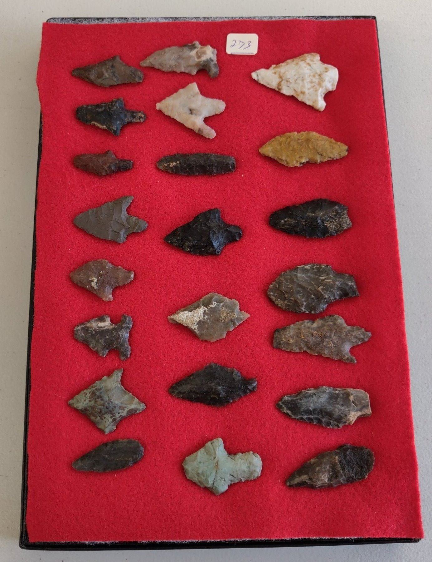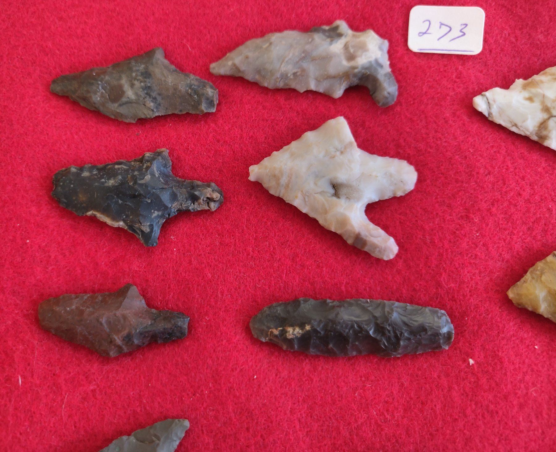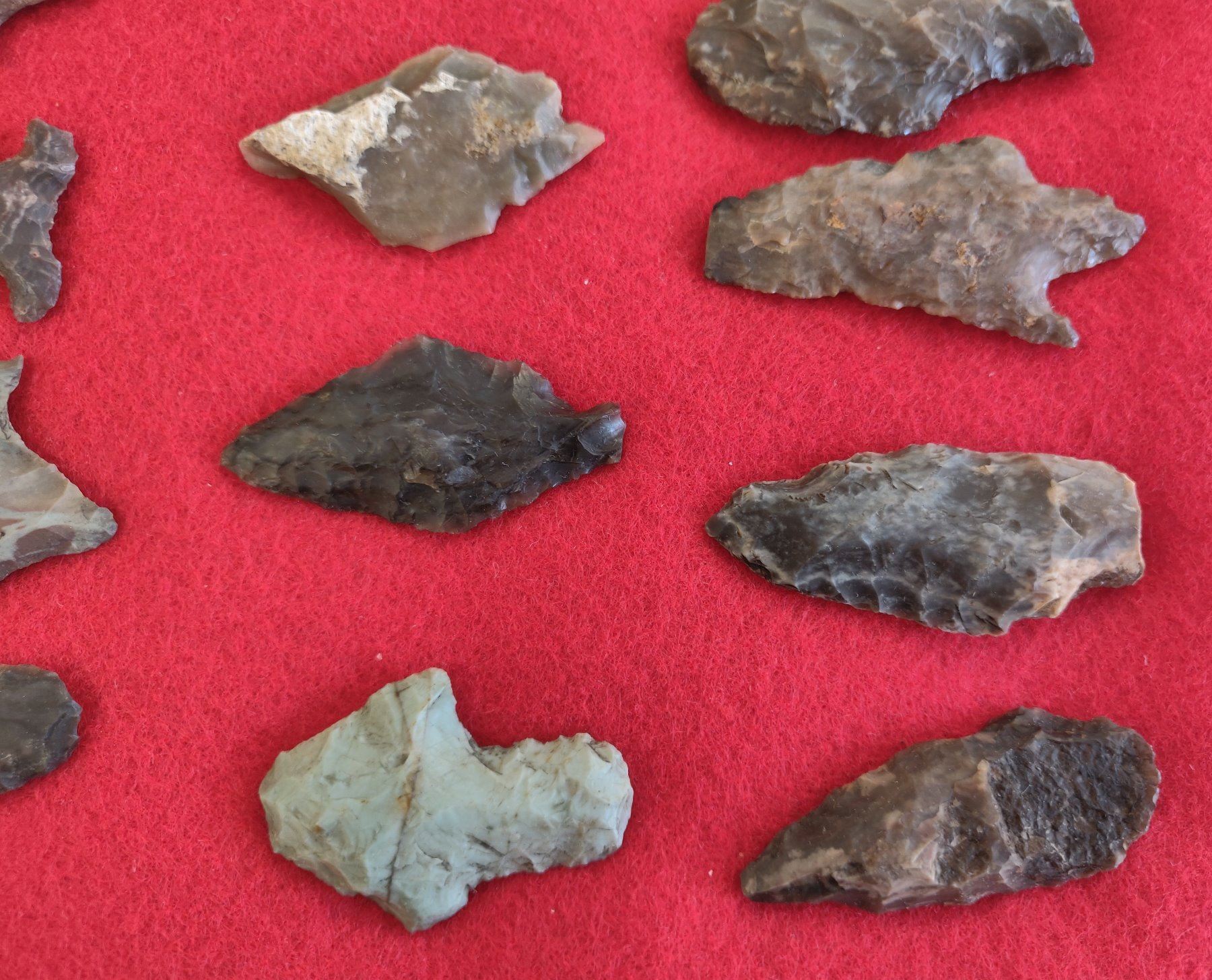 Authentic Chumash Collection, pre-historic items. Made of chert, flint and obsidian, the longest item measures 2 1/2" long. Santa Barbara County, California. Good study pieces, frame not included. Condition: As found, see images. Shipping: $24.50 w/insurance and signature.