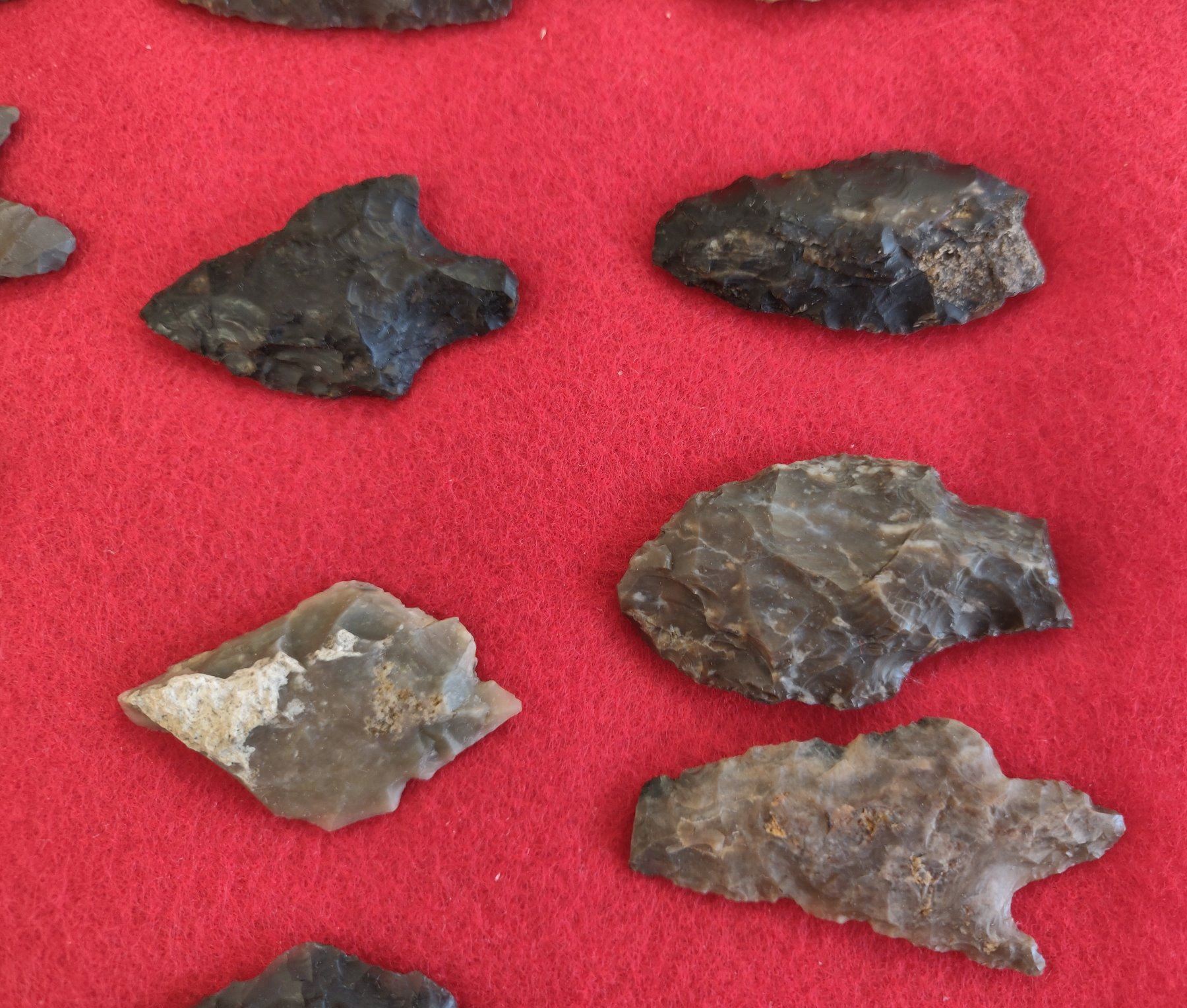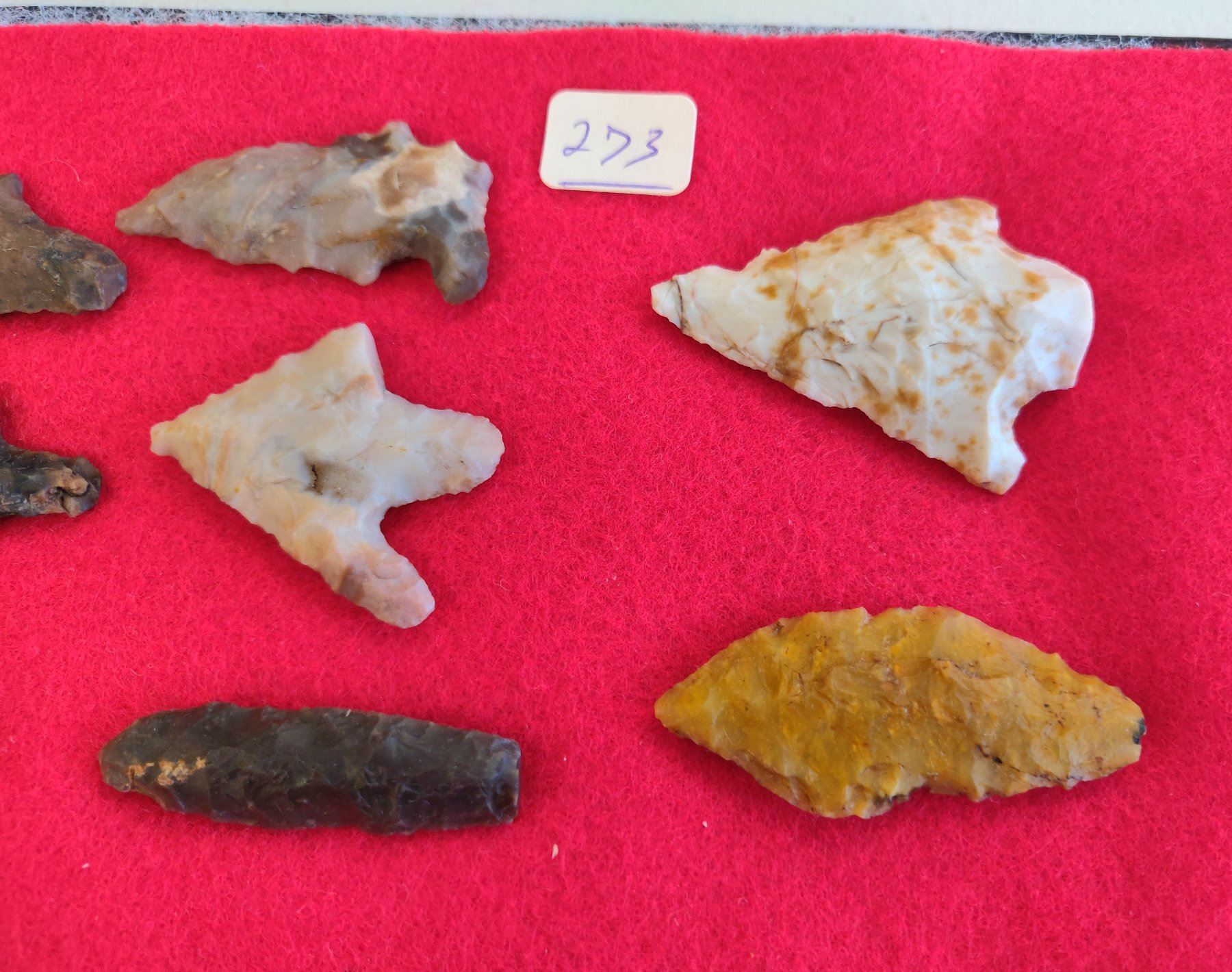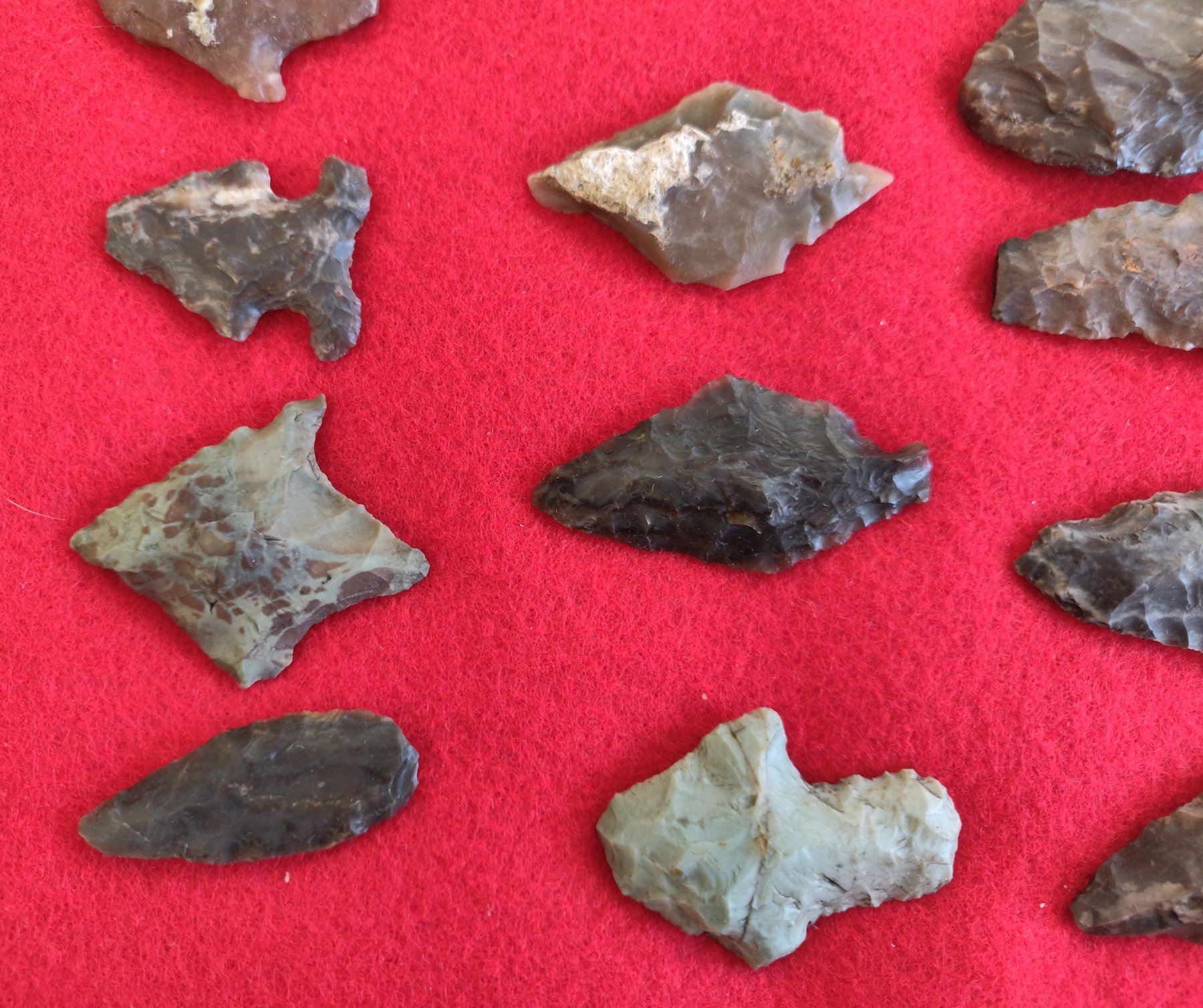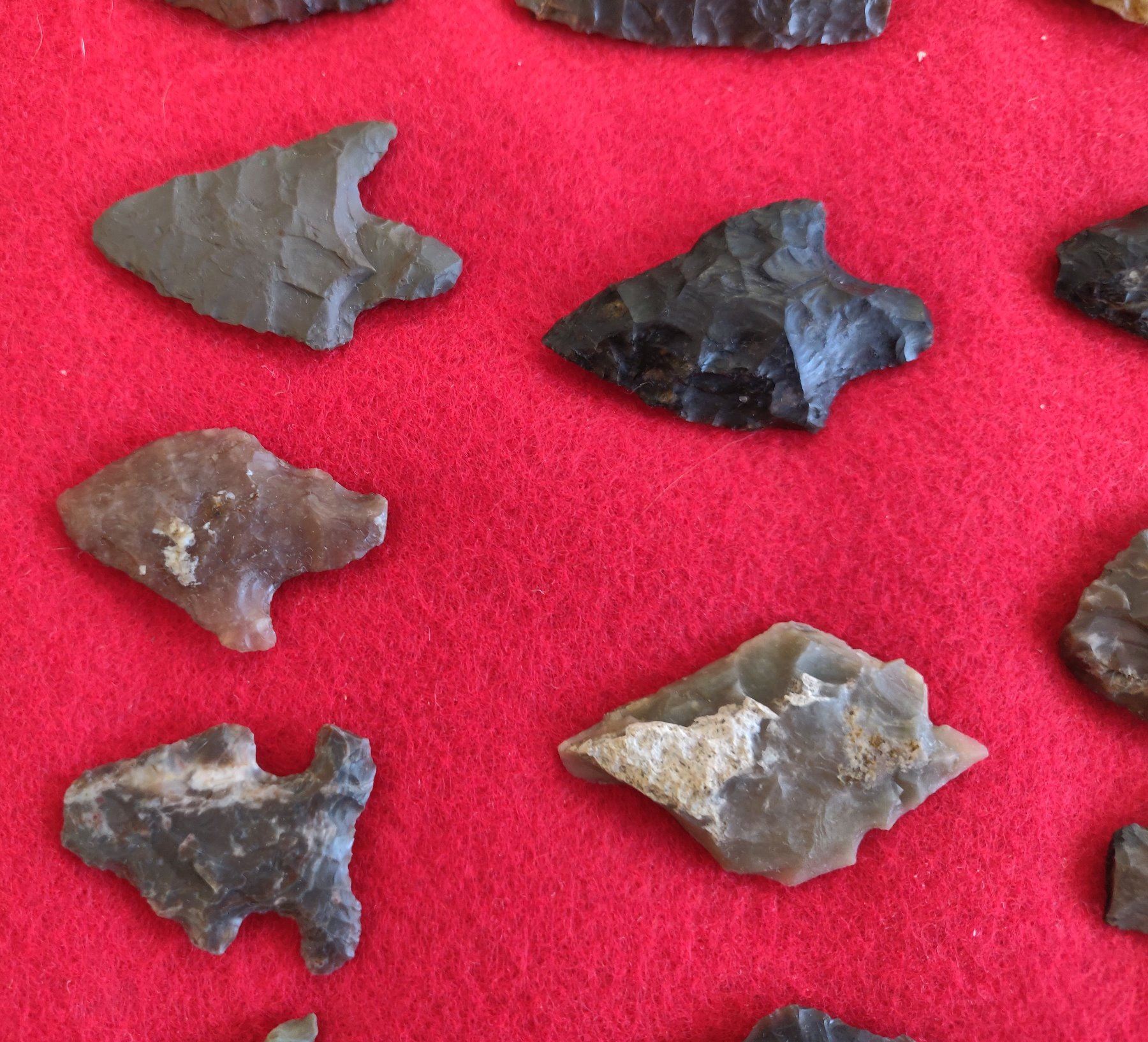 Authentic Chumash Collection, pre-historic items. Made of chert, flint and obsidian, the longest item measures 2 1/2" long. Santa Barbara County, California. Good study pieces, frame not included. Condition: As found, see images. Shipping: $24.50 w/insurance and signature.