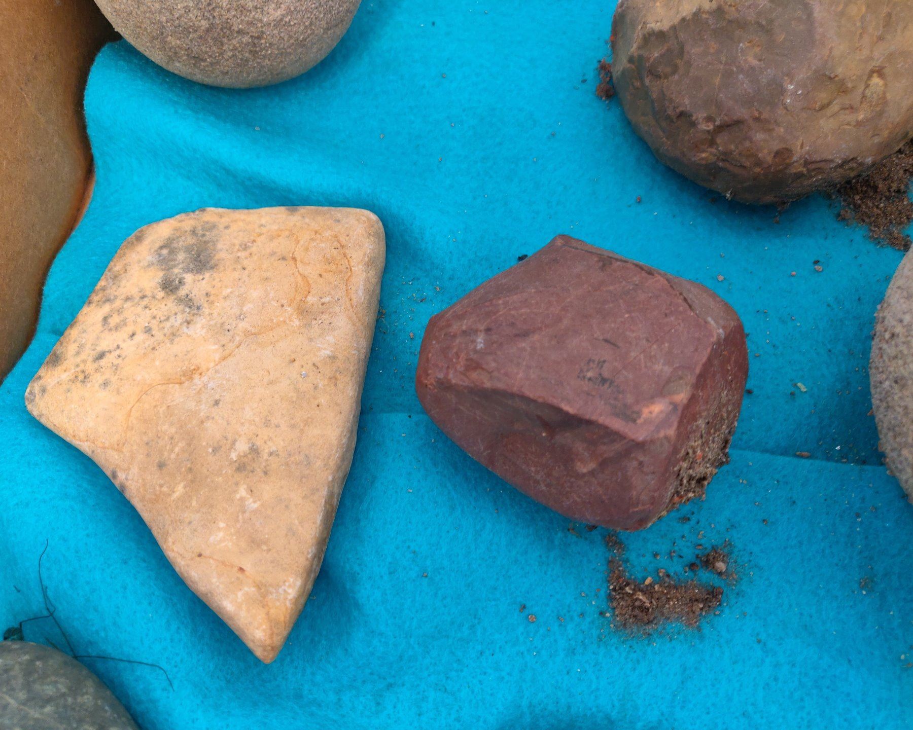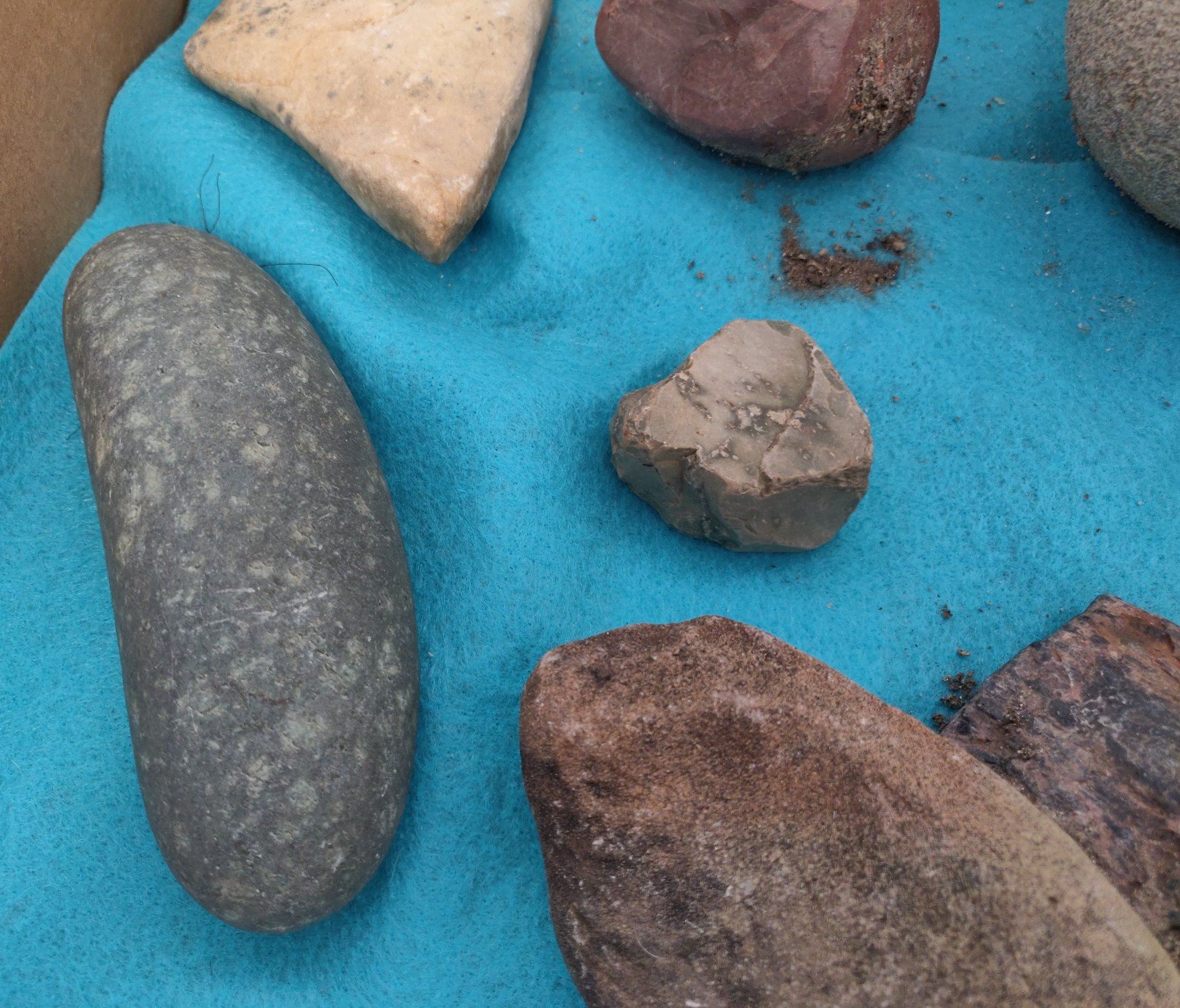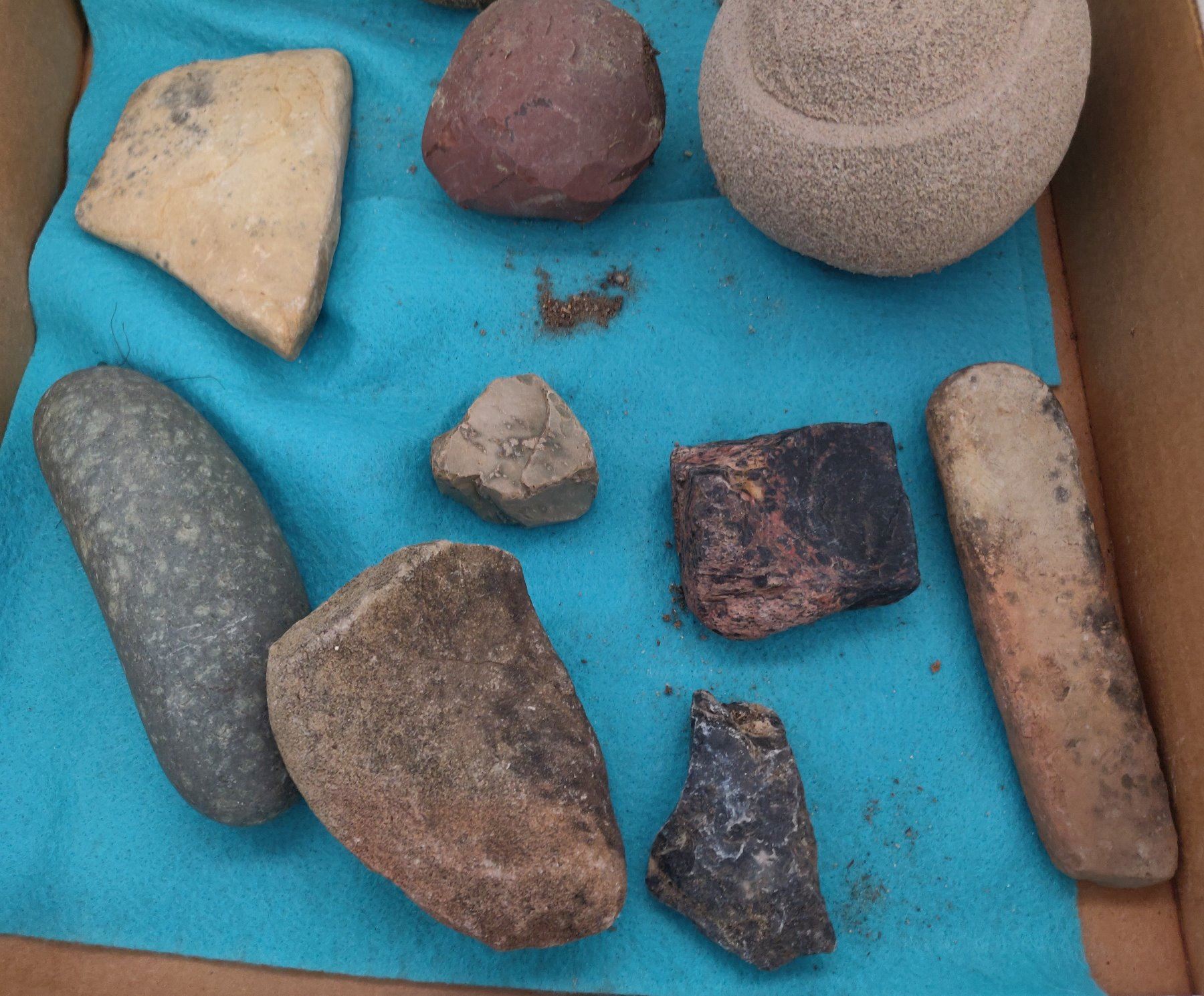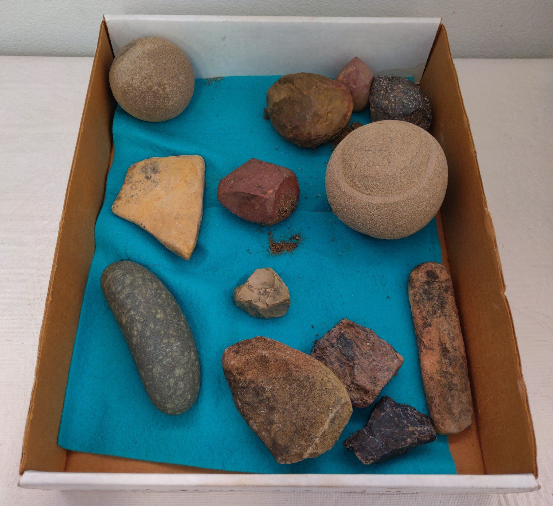Authentic Chumash Collection, pre-historic items. Made of basalt, obsidian, flint, sandstone and chert, the longest item measures 5" long. Santa Barbara County, California. Good study pieces. Condition: As found, see images. Shipping: $35.00 w/insurance and signature.
