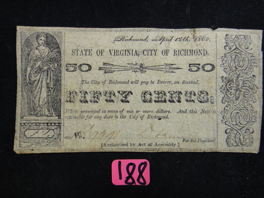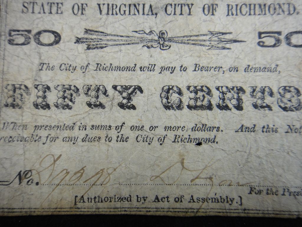 1862 Virginia Civil War fractional currency. Neat piece of Richmond history.