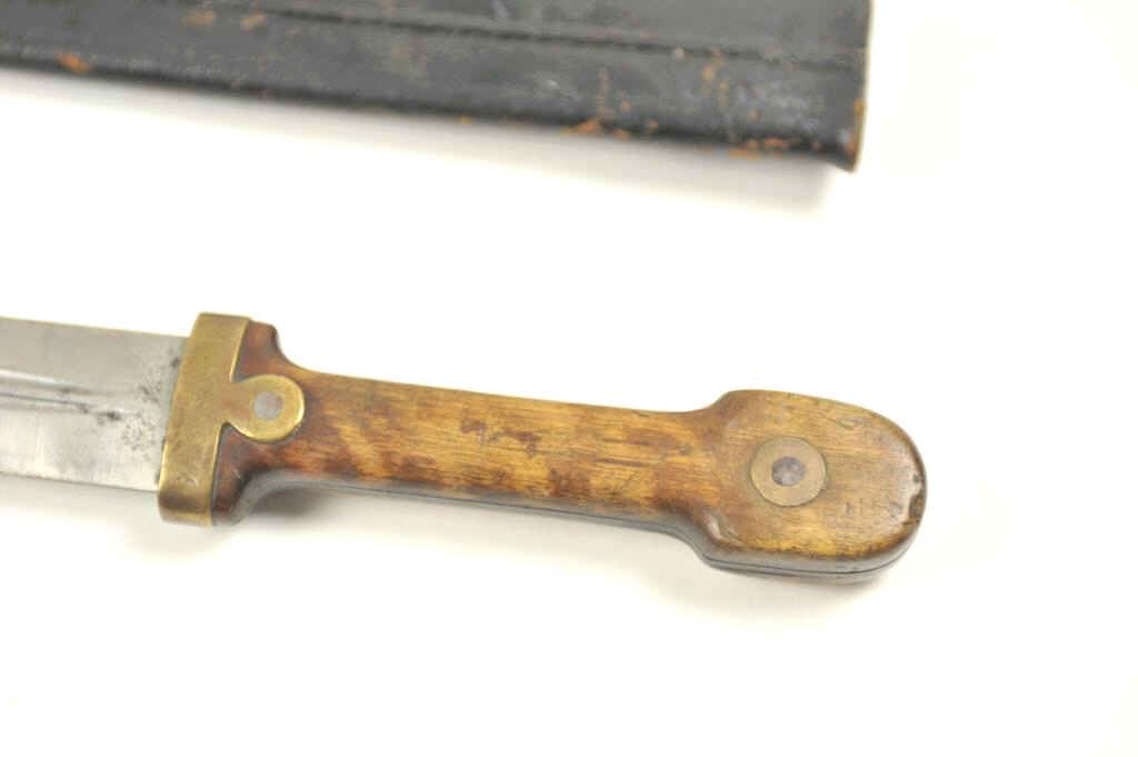 Authentic Czarist era Cossack style Kenjal with “A” marking and 1913 date. Also arsenal marked and regimental marked. Good to very good condition. Original leather scabbard. Minor wear and losses. Est.: $350-$700