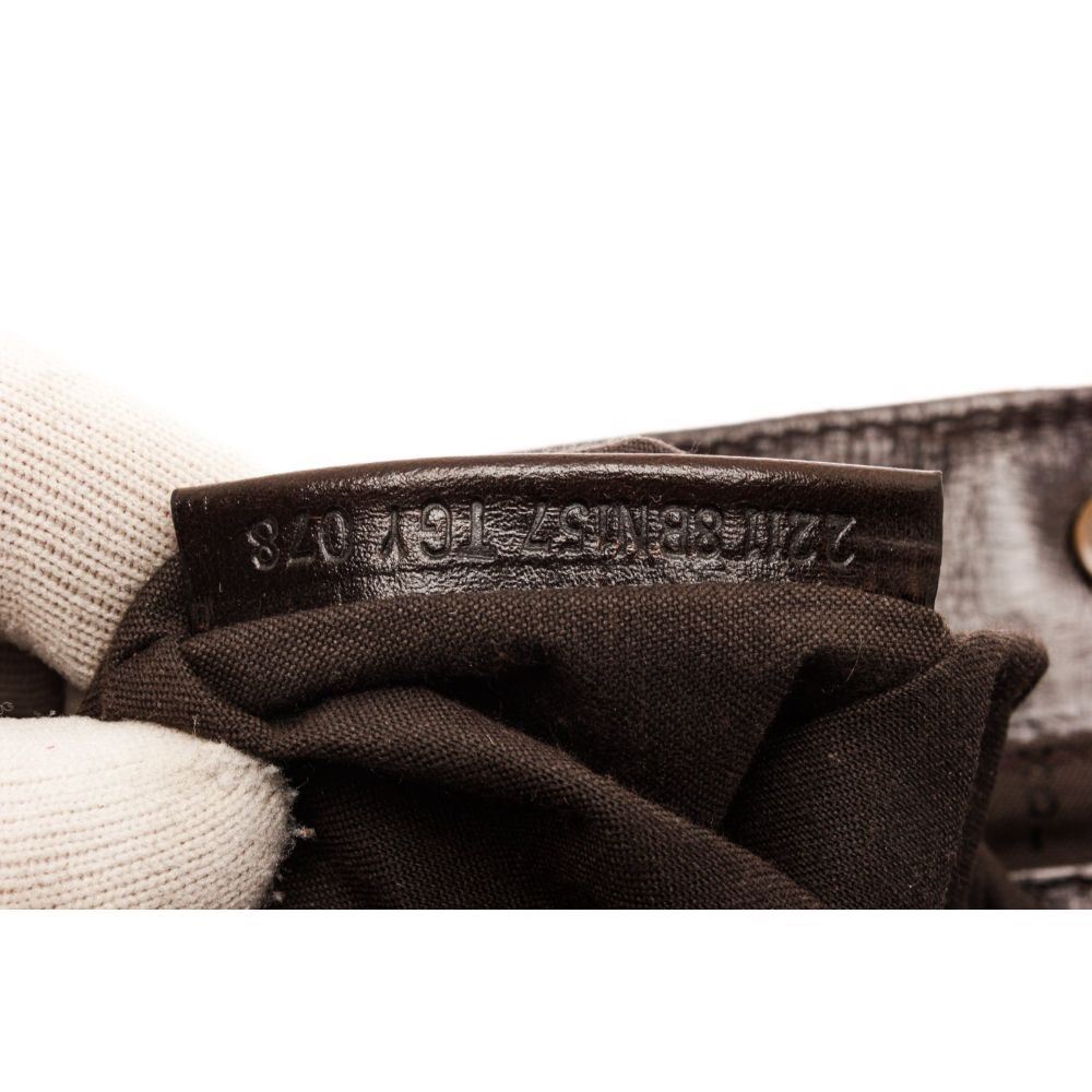 Fendi Brown Leather satchel Bag with silver-tone hardware, canvas lining & single interior pocket, dual top handles, zip closure at top.