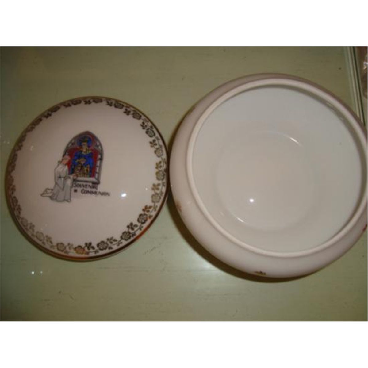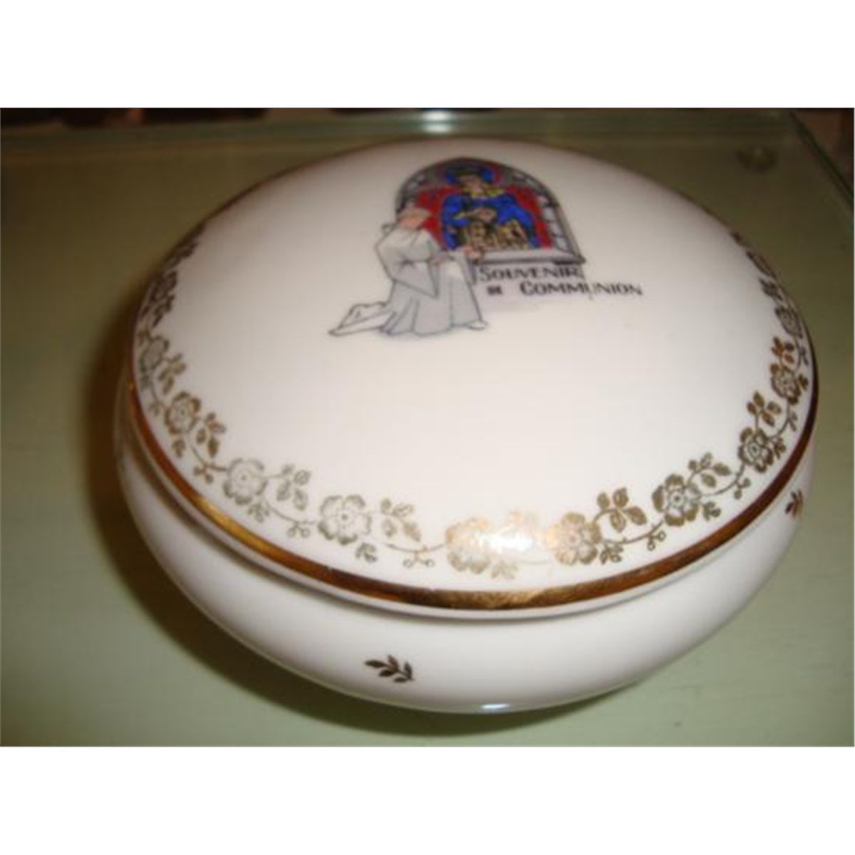 Authentic French porcelain Limoges box "Souvenir de Communion" signed "Limoges France" This box was created by an artist, graduate of one of the most prestigious French Fine Porcelain schools. Excellent condition! (No chips, cracks or repairs). Would be a great value to any Limoges box collection. We ship from Texas (not from France)! h-2.5"/ diameter-5"