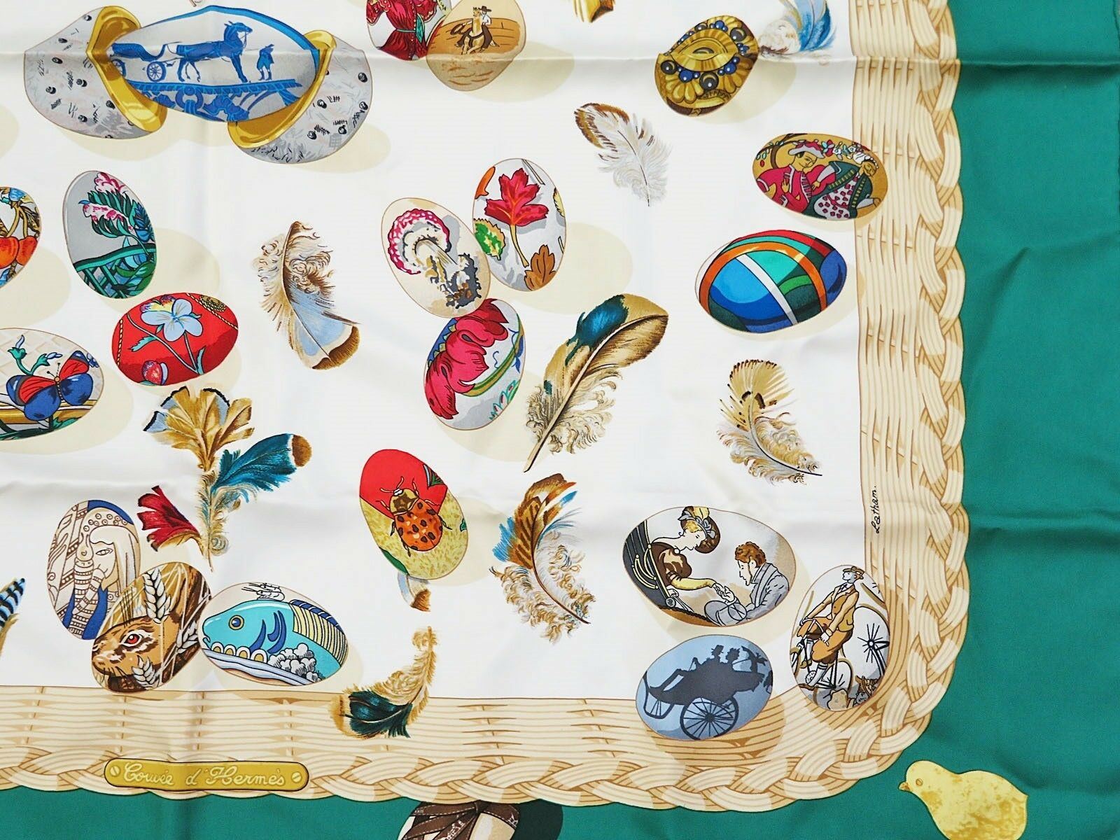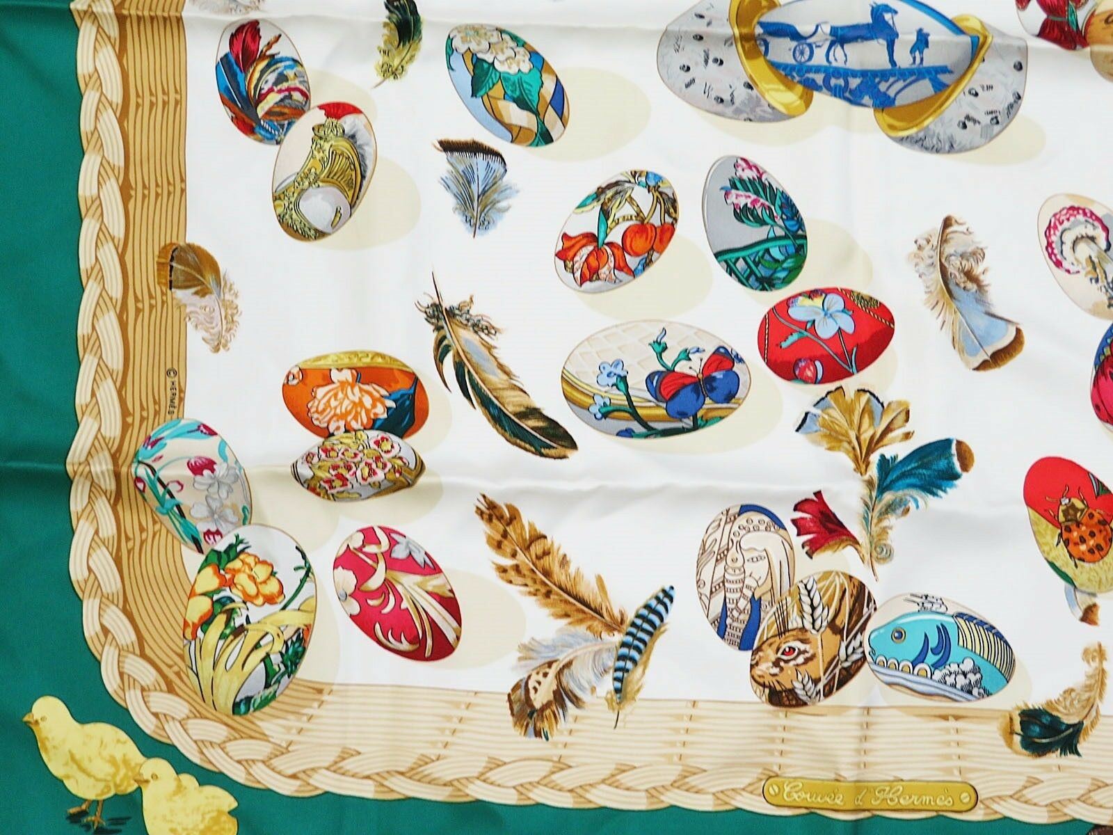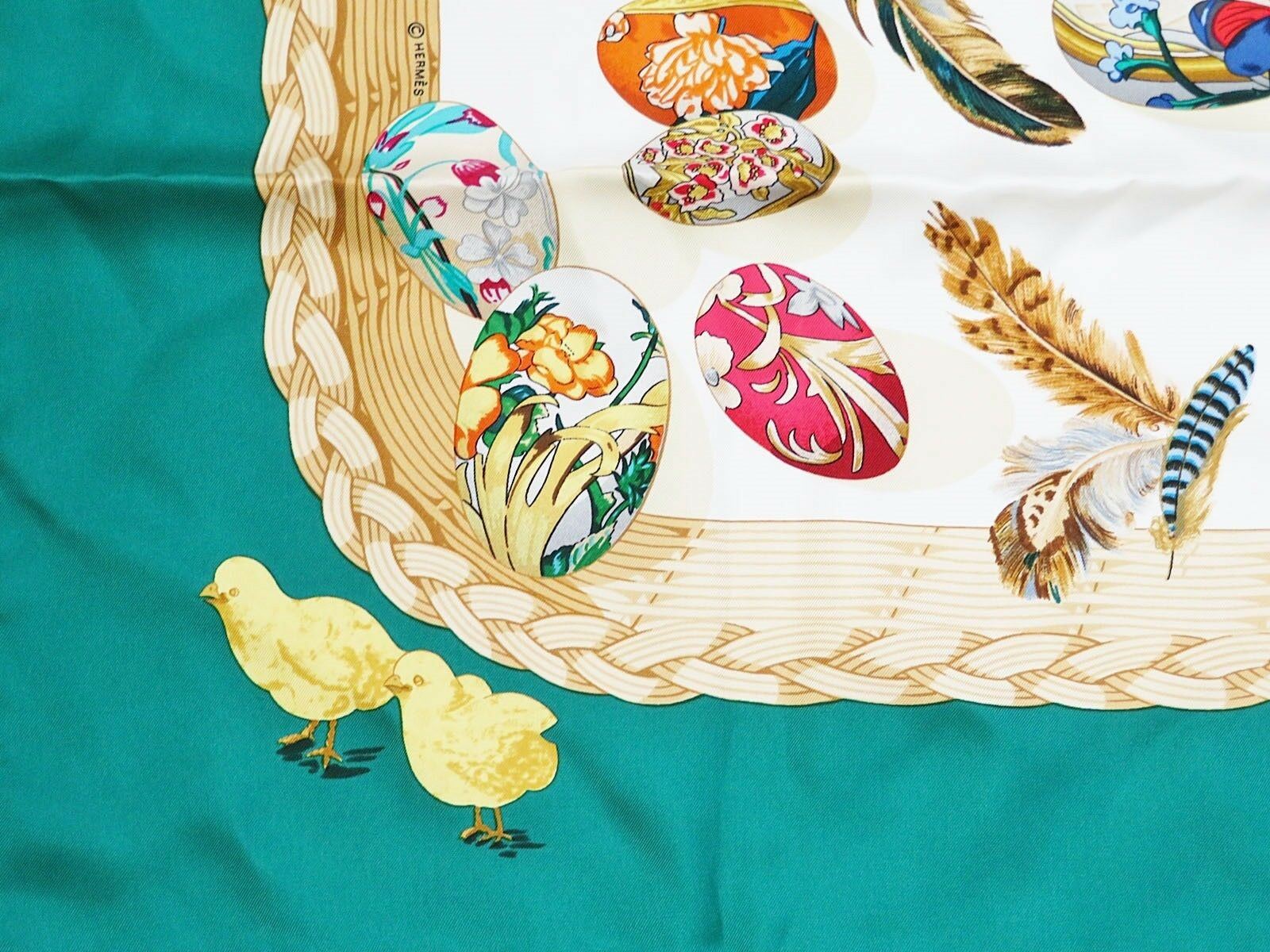 Style: HERMES "Couvee d'Hermes" Egg Basket Green 100% Silk Scarf