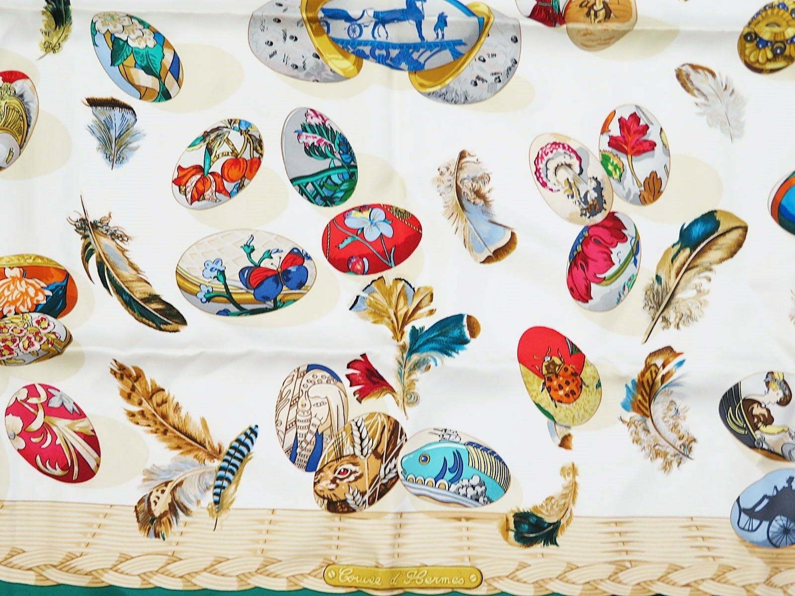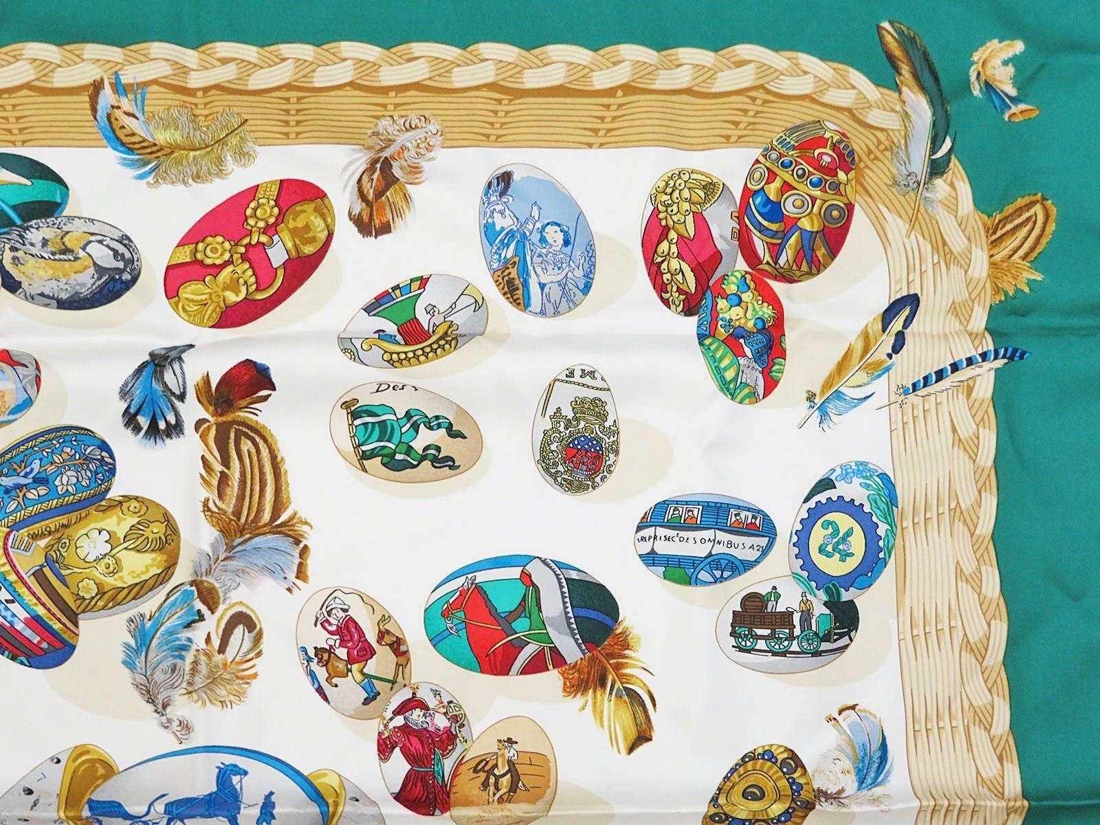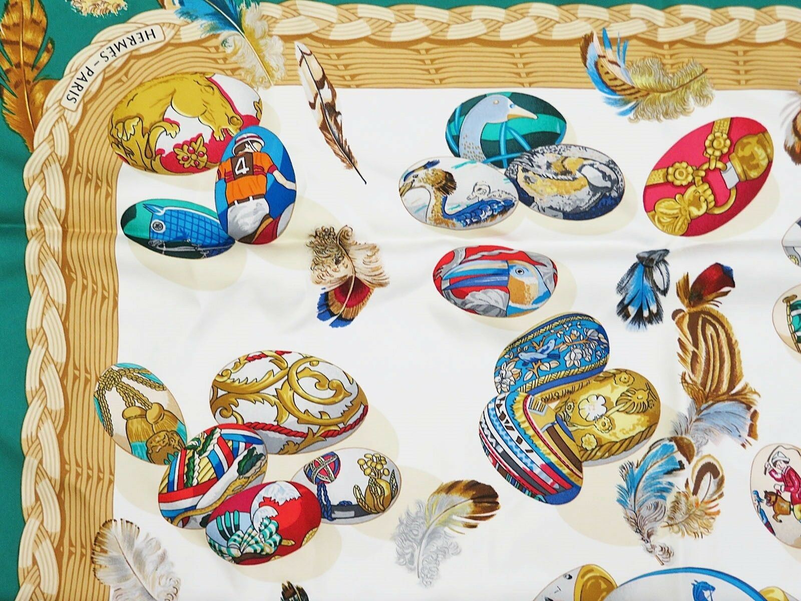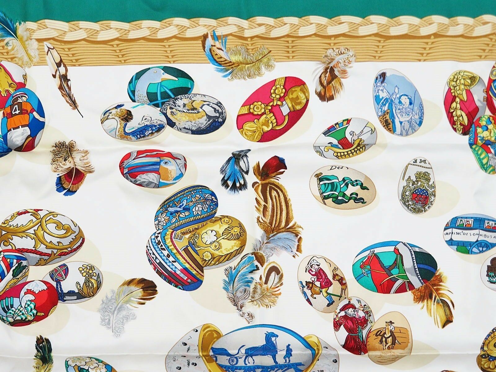 Style: HERMES "Couvee d'Hermes" Egg Basket Green 100% Silk Scarf