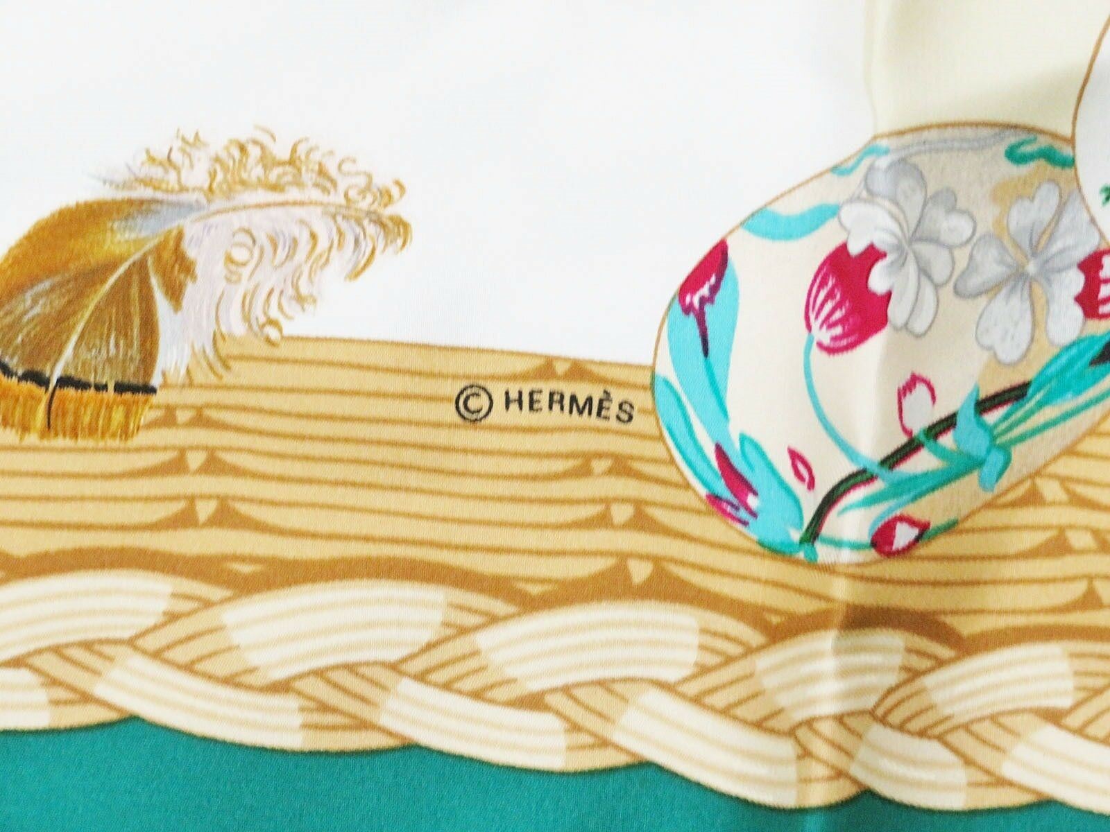 Description: 100% Silk HERMES "Couvee d'Hermes" Egg Basket Green Scarf