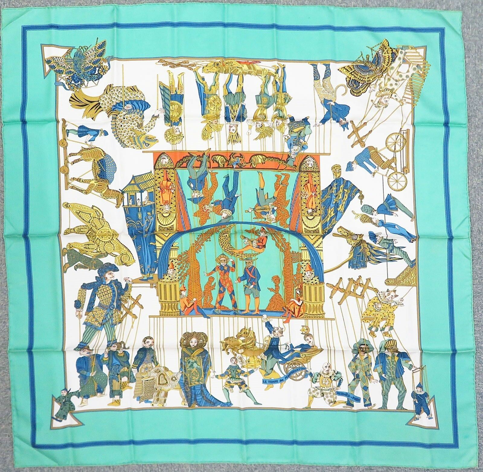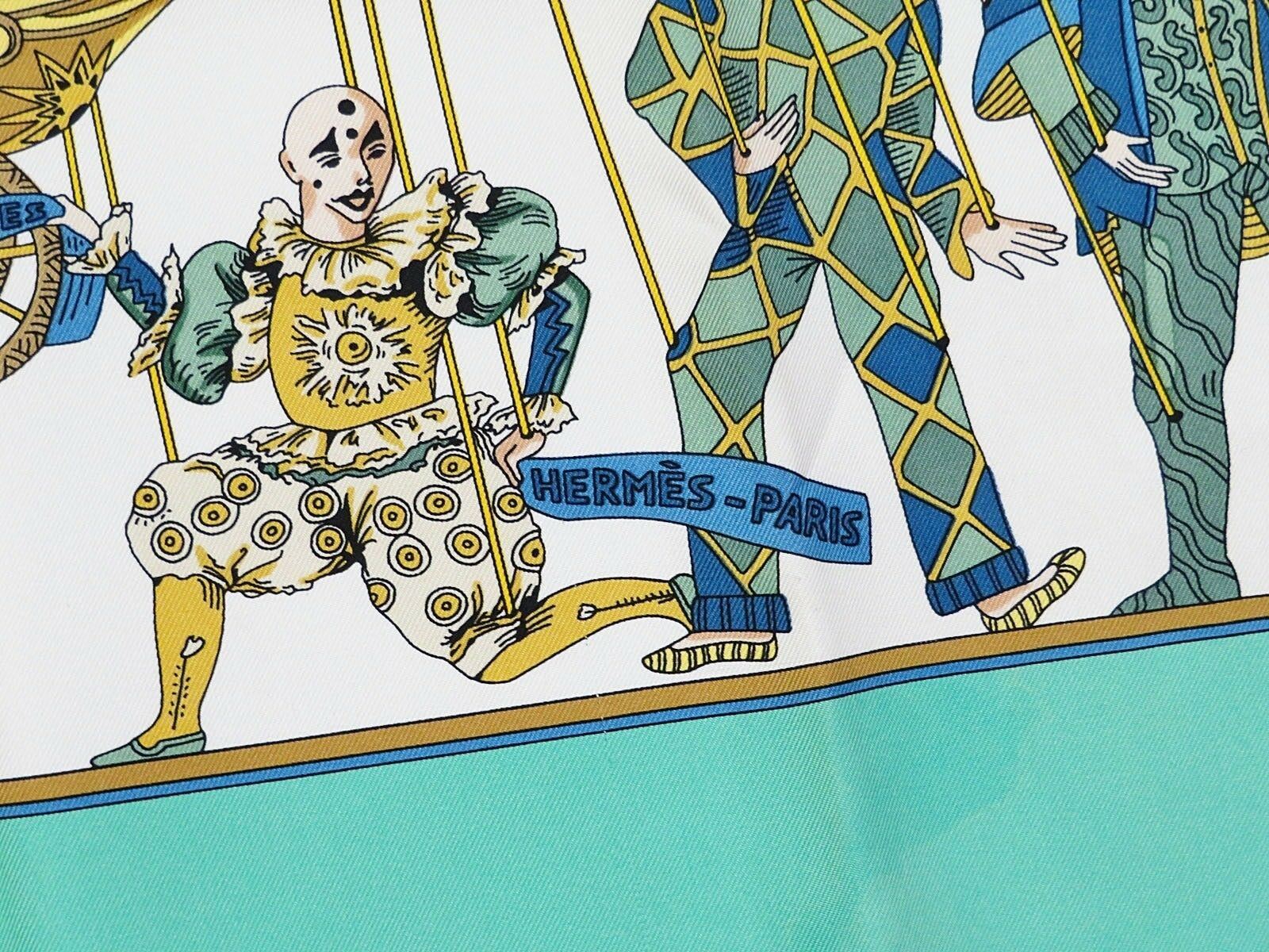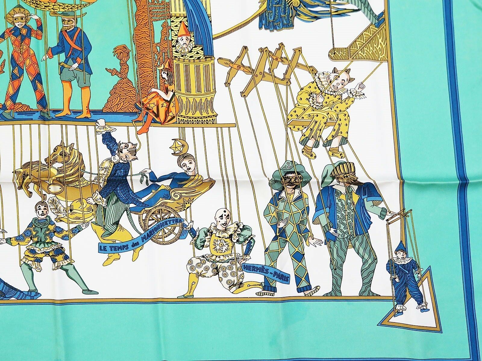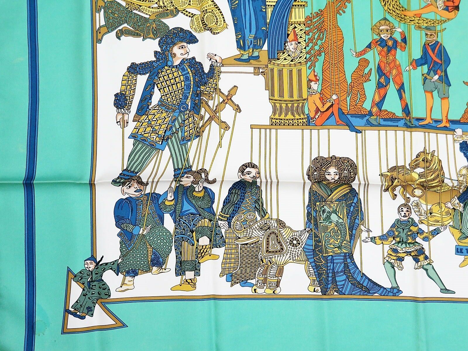 Style: HERMES "LE TEMPS des MARIONNETTES" Green 100% Silk Scarf