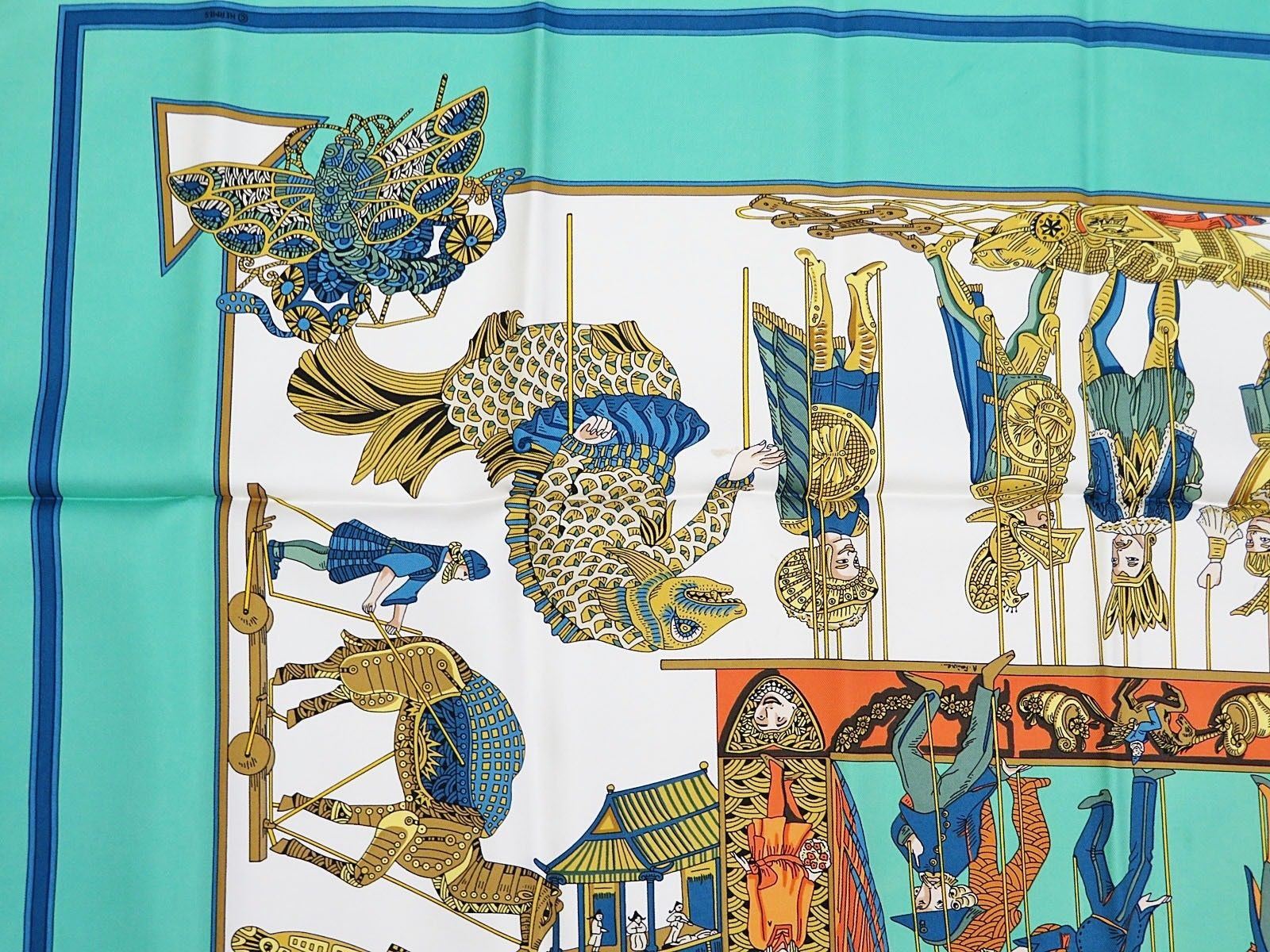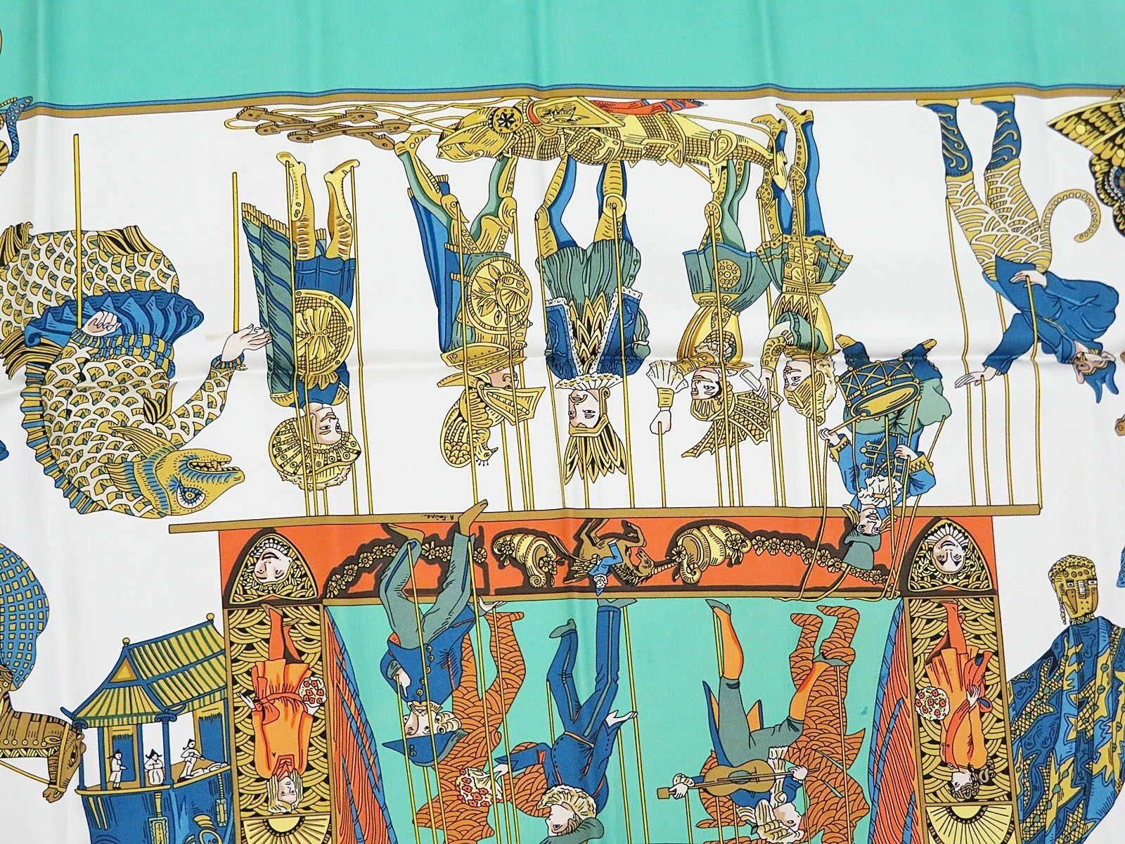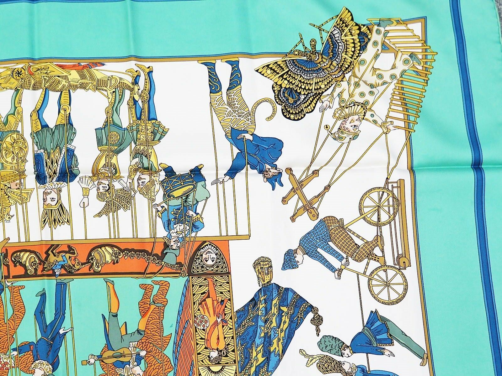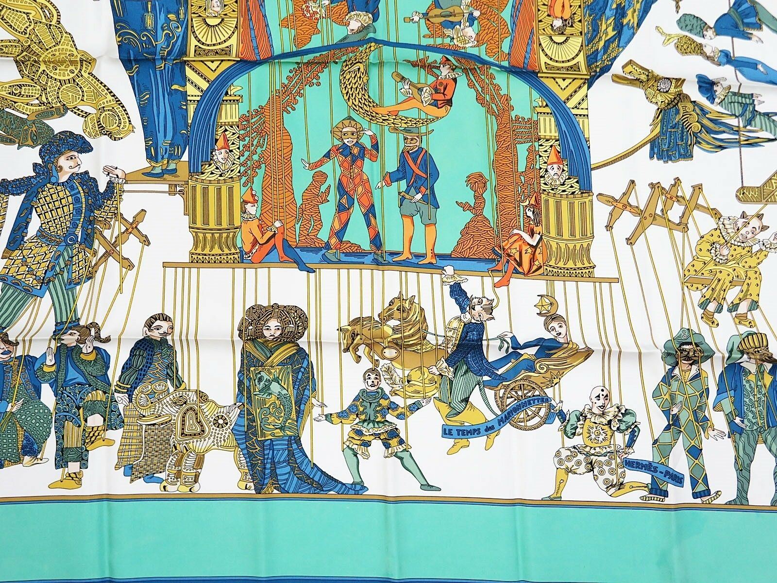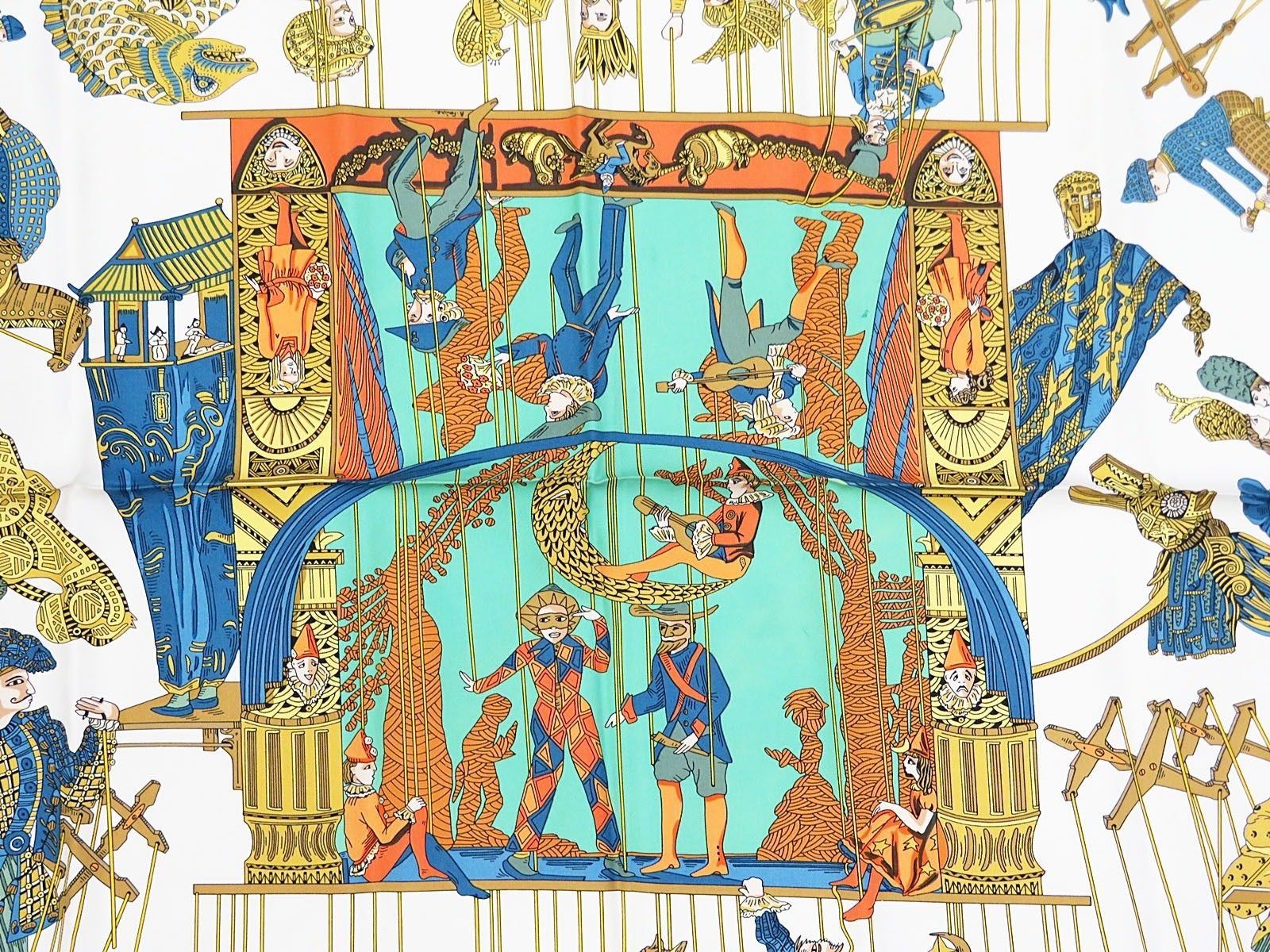 Style: HERMES "LE TEMPS des MARIONNETTES" Green 100% Silk Scarf