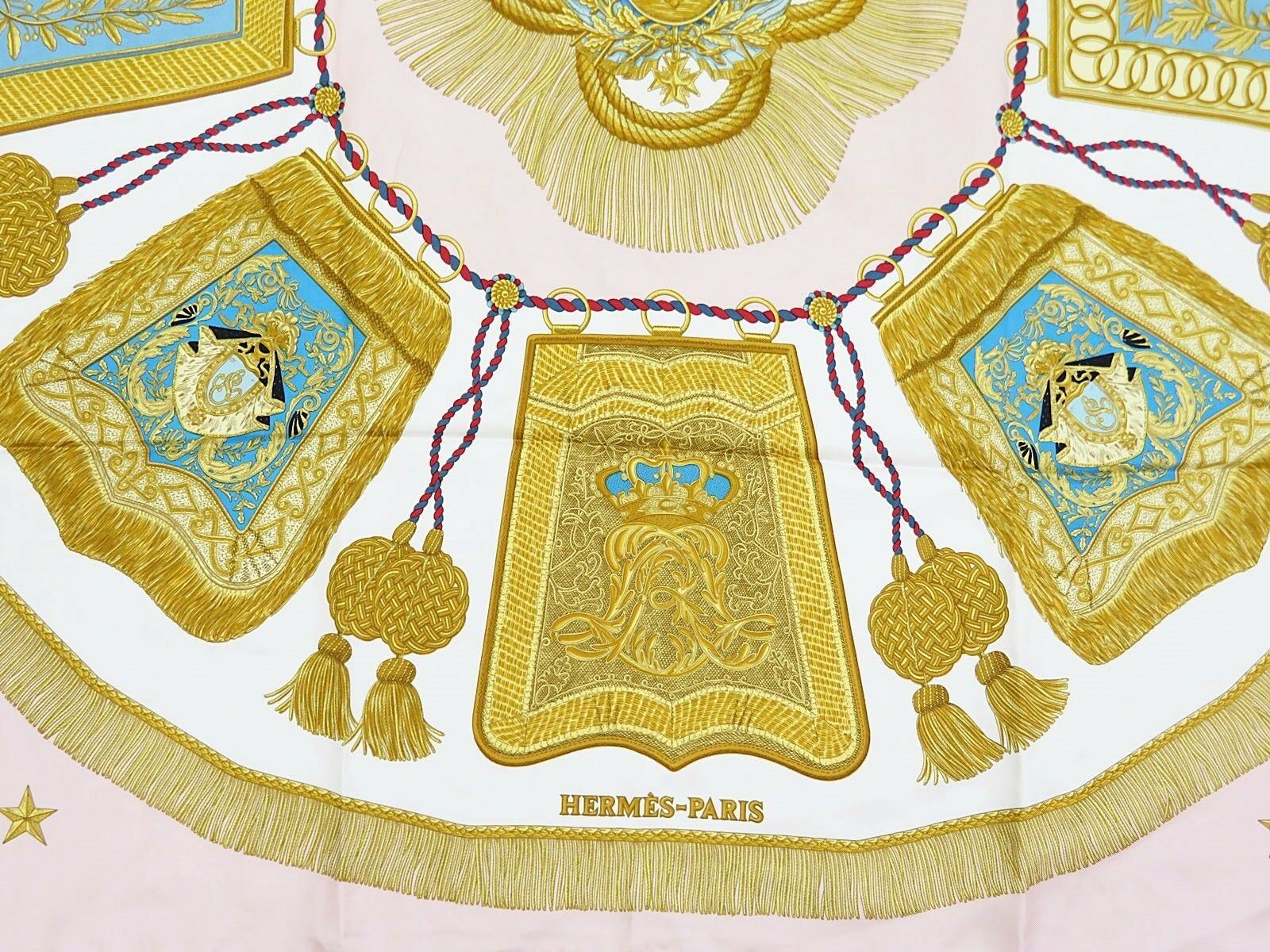 Style: HERMES "Poste et Cavalerie" Pink 100% Silk Scarf