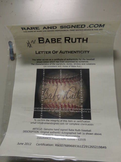 Authentic Hand Signed Babe Ruth Baseball with 2 COA'S