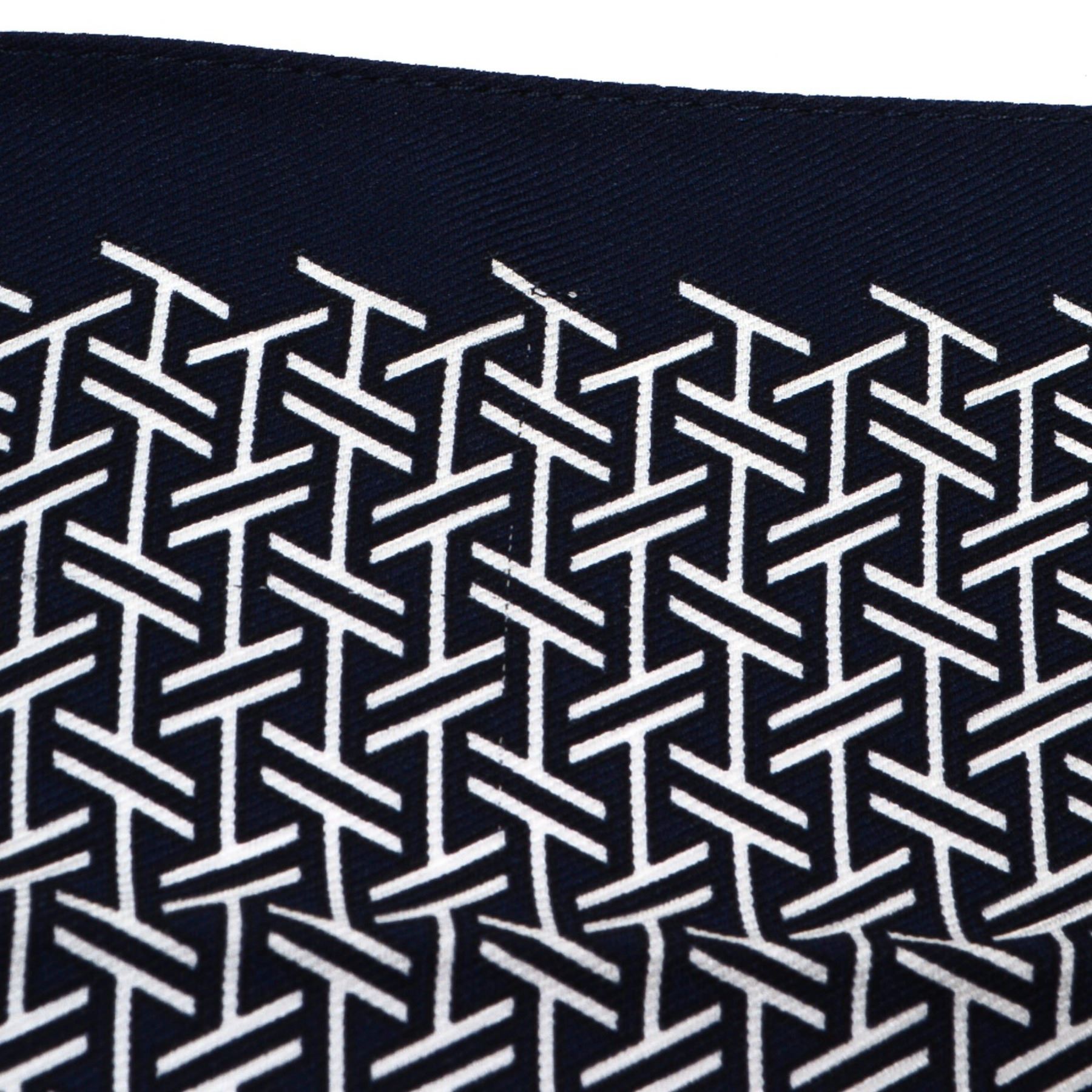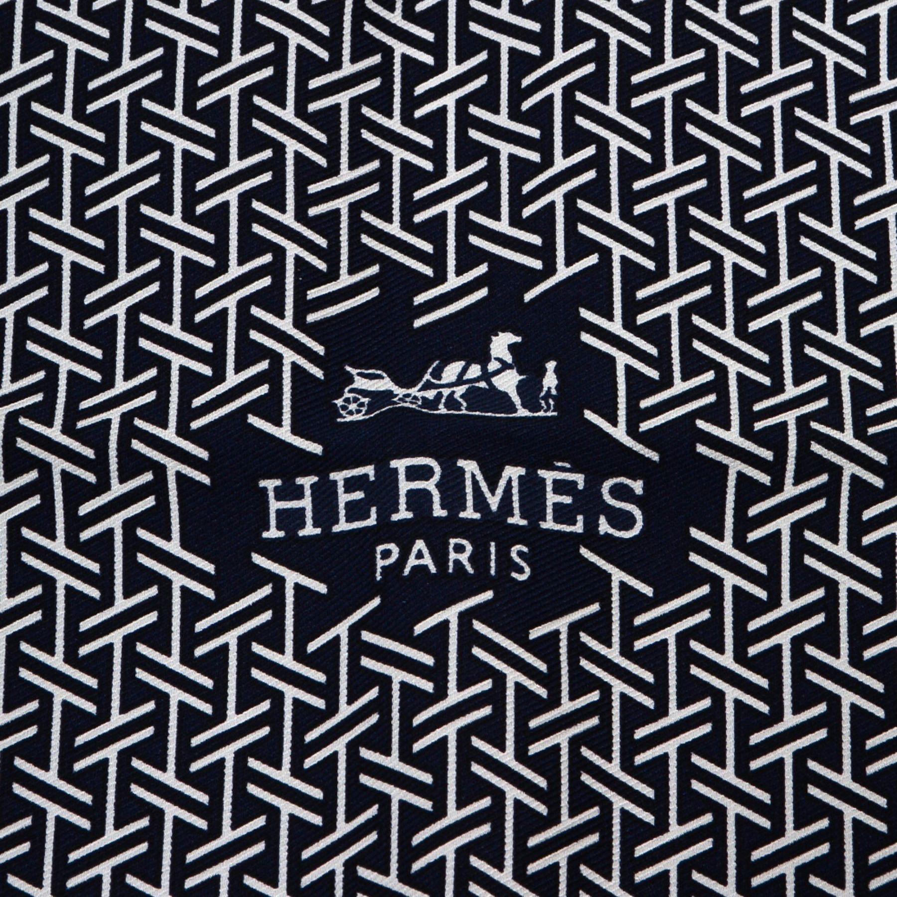 Hermes Black La Cravate-Foulard Silk Scarf with silver-tone hardware, hand-rolled edges.