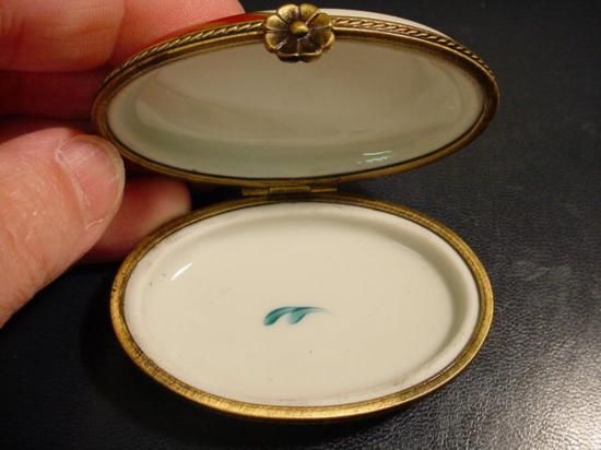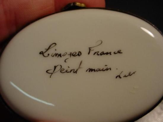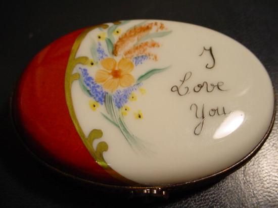 Authentic hand-painted Limoges box signed by artist from a famous studio! This box was created by an artist, graduate of one of the most prestigious French Fine Porcelain schools. Here is a SUPERB "I LOVE YOU" hand-painted Porcelain box. Excellent condition, hinges and clasps work fine. This Limoges box is marked "Peint main" (Hand-painted) Limoges France, signed as shown in picture. It is in mint condition (No chips, cracks or repairs). Would be a great value to any Limoges box collection. h-0.75"/ w-2.75"/ d-2"For the shipping...don't worry, we ship from Texas (not from France)!