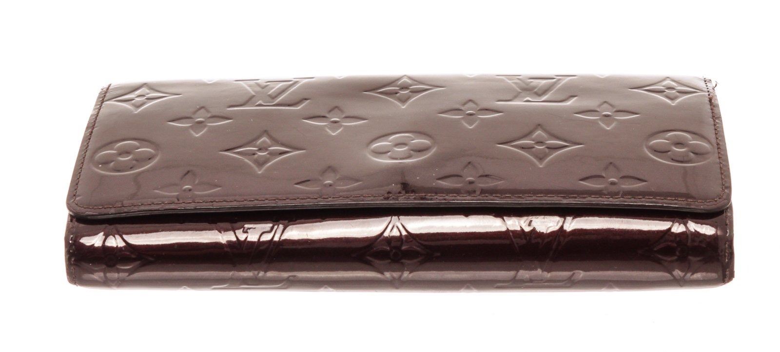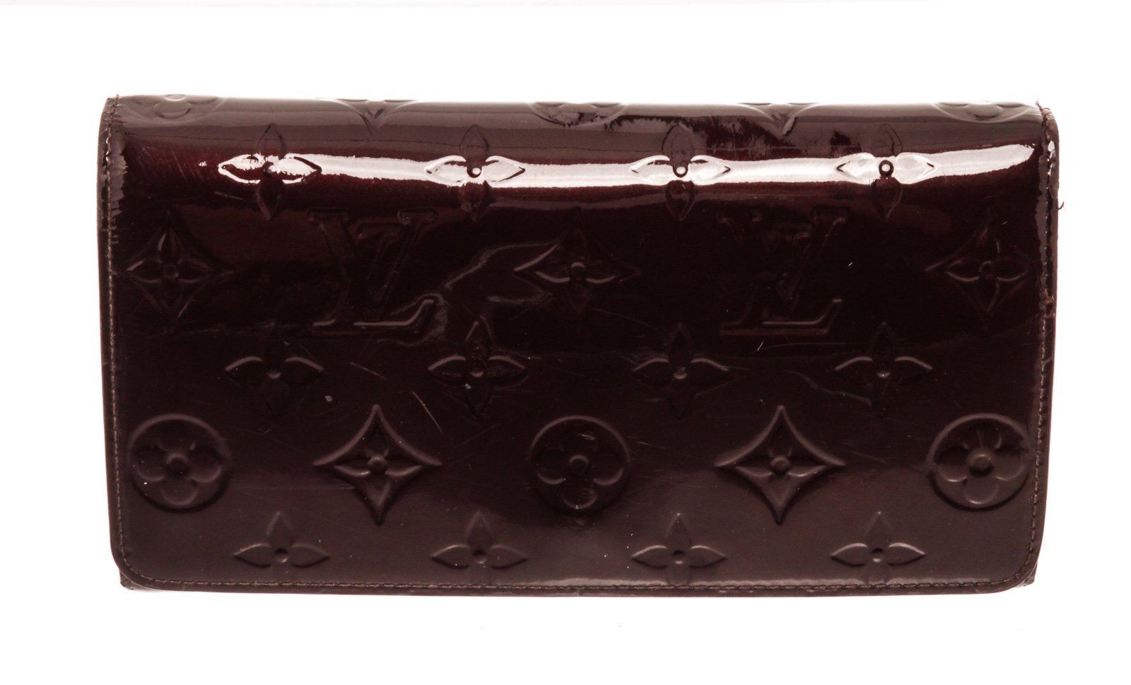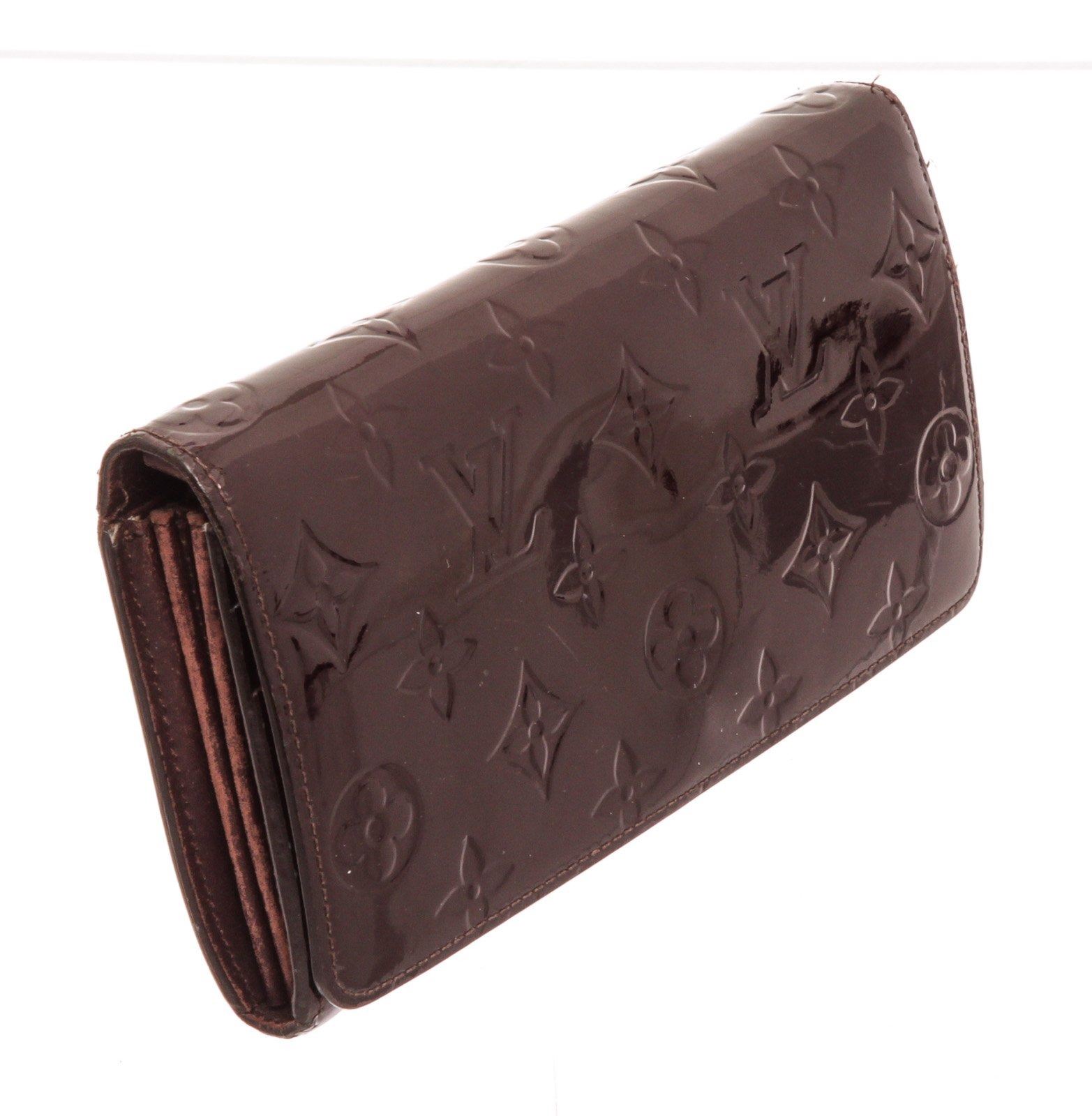 Louis Vuitton Brown Sarah Chaine Wallet with material monogram Vernis leather, gold-tone hardware, trim tan vachetta, interior cardholder pocket and zipper closure.