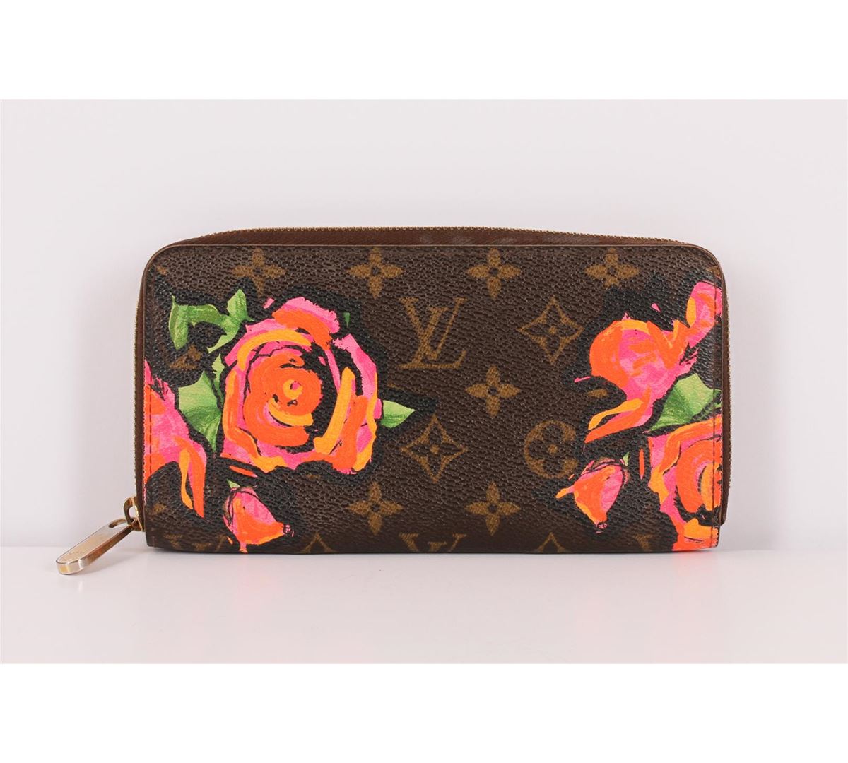 100% Authentic Louis Vuitton Stephen Sprouse Roses Zipppy Wallet. This limited edition wallet is a stylish collector's piece for handbag lovers or bold fashionistas alike. It is made from classic brown LV monogram canvas that is accented beautifully by Stephen Sprouse's iconic pop art of neon graffiti flowers. Other details include the ¾ wrap around brass zipper which opens to a terra-cotta cross grain leather interior with an open compartment, two lined with card slots, a patch pocket and a zipper pocket. This is an excellent clutch style wallet that is as practical as it is chic with the luxury and style of Louis Vuitton! It is in great pre-loved condition with some minor signs of wear but nothing major. The zipper still works perfectly. Comes complete with Louis Vuitton box, Louis Vuitton card and Louis Vuitton Shopping Bag.