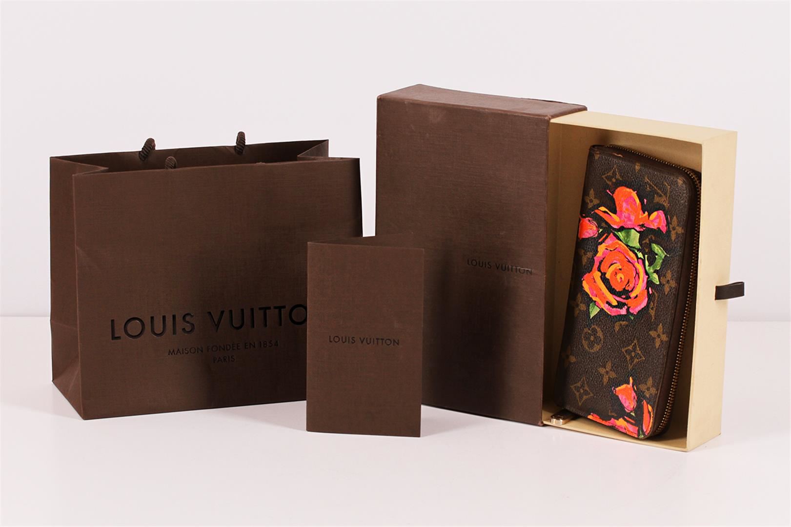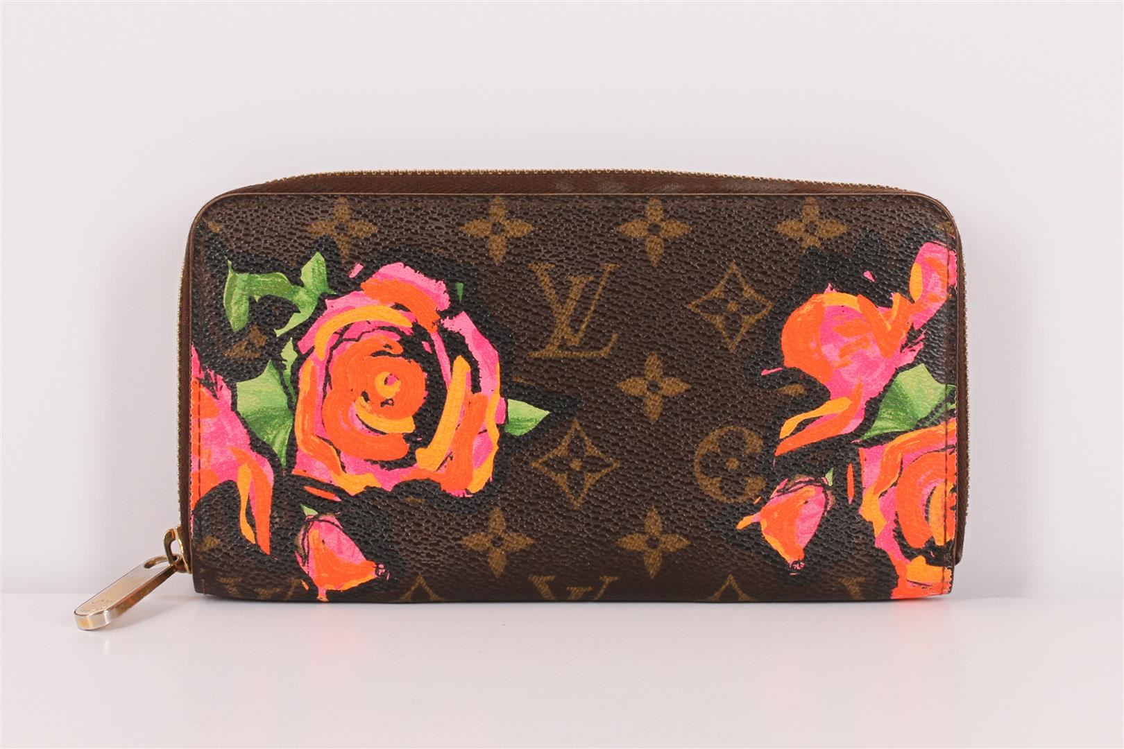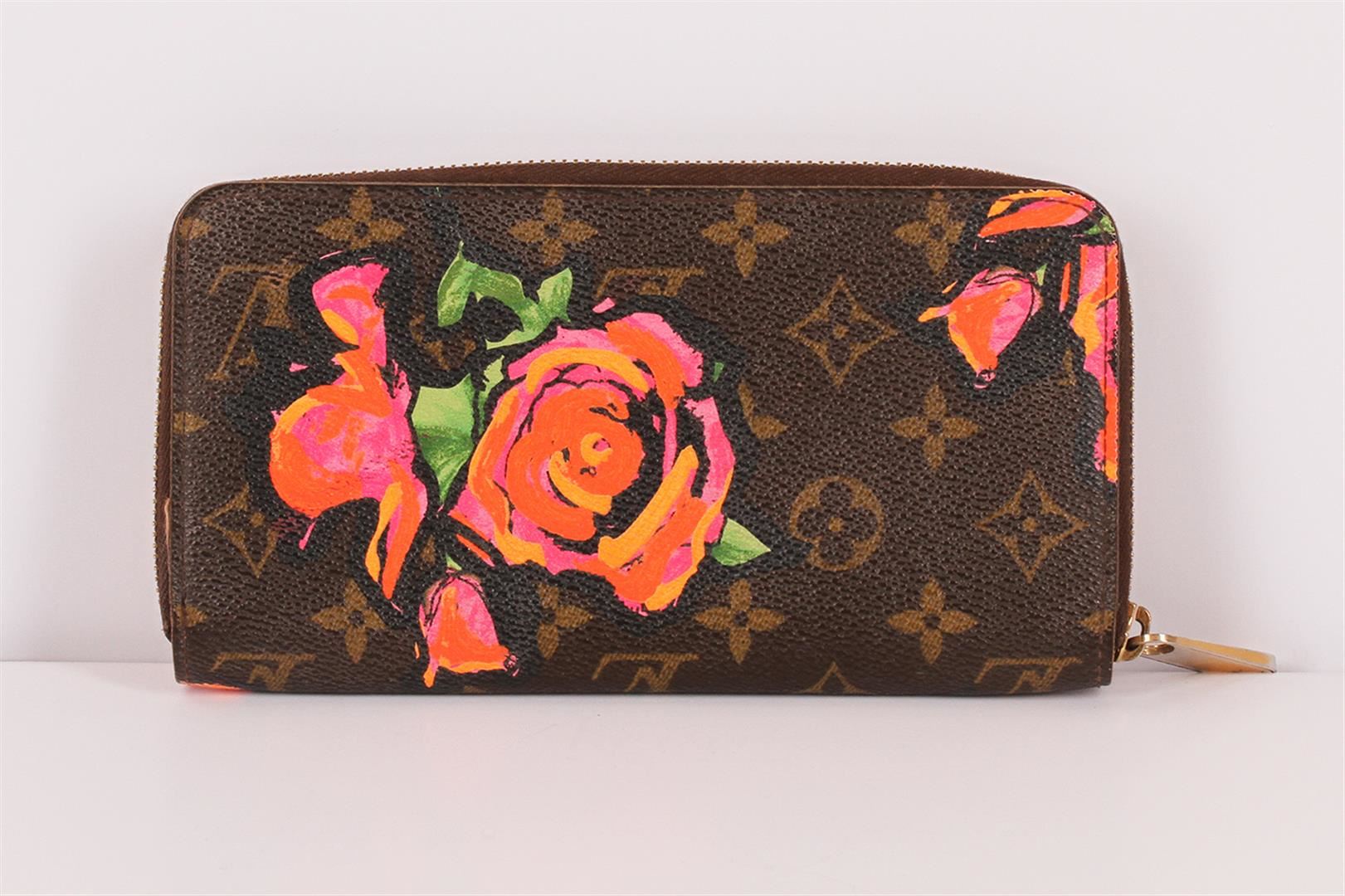 100% Authentic Louis Vuitton Stephen Sprouse Roses Zipppy Wallet. This limited edition wallet is a stylish collector's piece for handbag lovers or bold fashionistas alike. It is made from classic brown LV monogram canvas that is accented beautifully by Stephen Sprouse's iconic pop art of neon graffiti flowers. Other details include the ¾ wrap around brass zipper which opens to a terra-cotta cross grain leather interior with an open compartment, two lined with card slots, a patch pocket and a zipper pocket. This is an excellent clutch style wallet that is as practical as it is chic with the luxury and style of Louis Vuitton! It is in great pre-loved condition with some minor signs of wear but nothing major. The zipper still works perfectly. Comes complete with Louis Vuitton box, Louis Vuitton card and Louis Vuitton Shopping Bag.