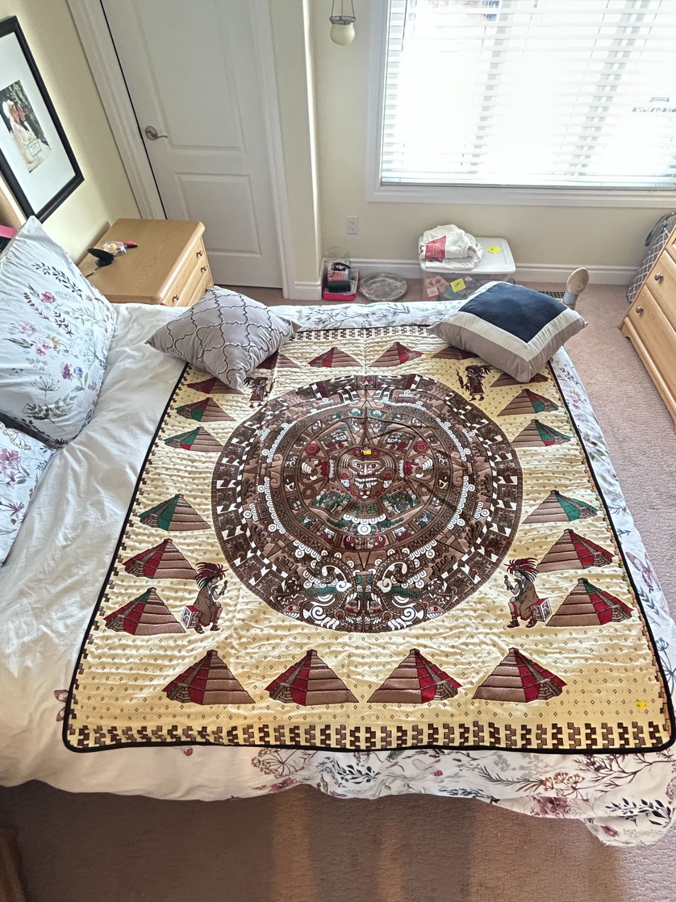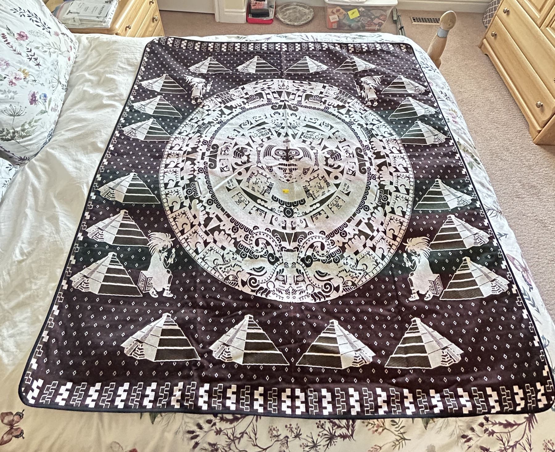 Authentic Mayan Chitza Itza Pyramid Throw Blanket Hand Stitched Two Sided Designs