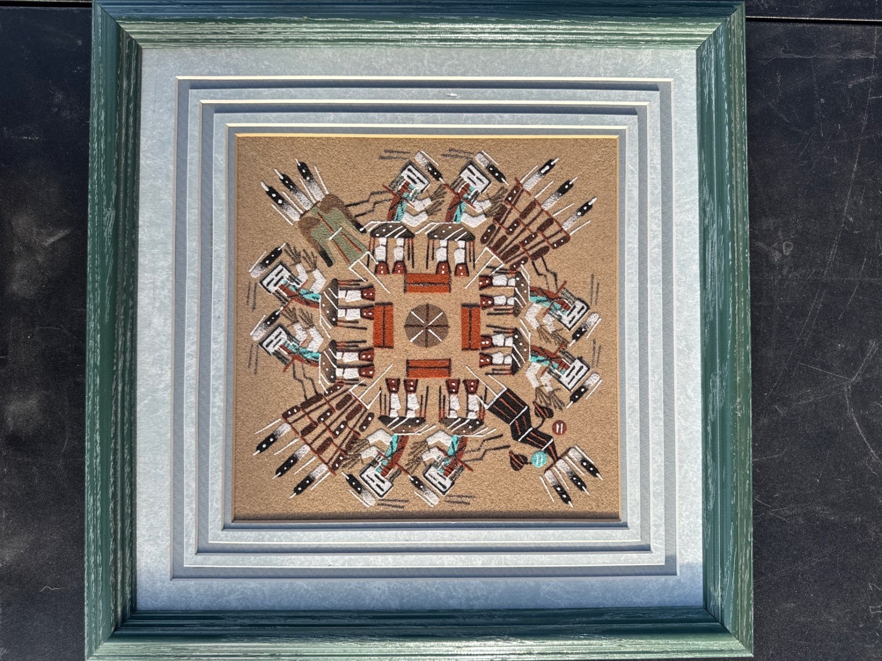 Authentic Navajo sand painting. 13 and a quarter long by 13 and a quarter wide.