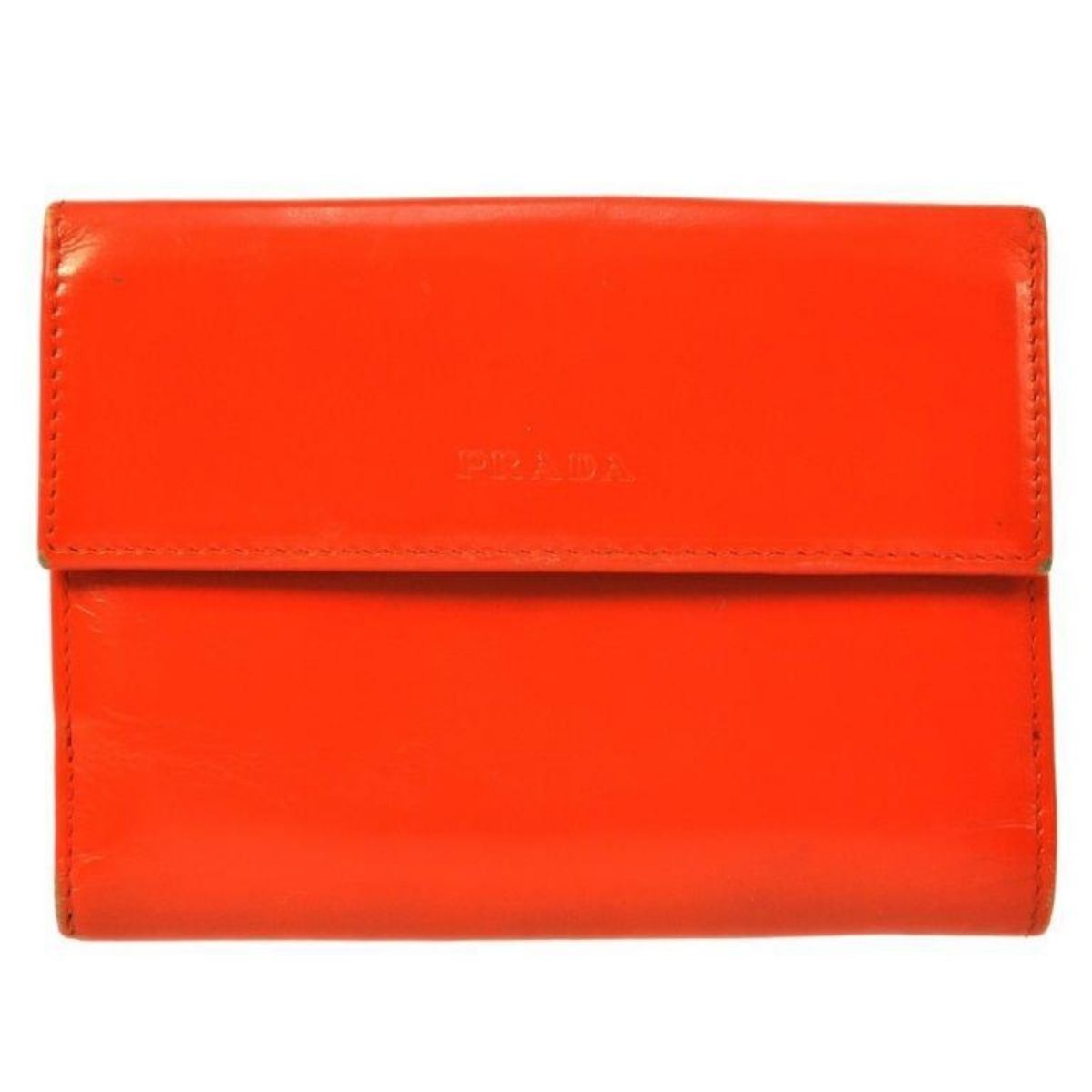 Stamped PRADA on outside flap & "PRADA, Made in Italy" on the inside. Five slots for credit cards & two main compartments. Measures 3 1/2" H X 4 3/4" W. Minor wear along edges, but in overall very good condition.