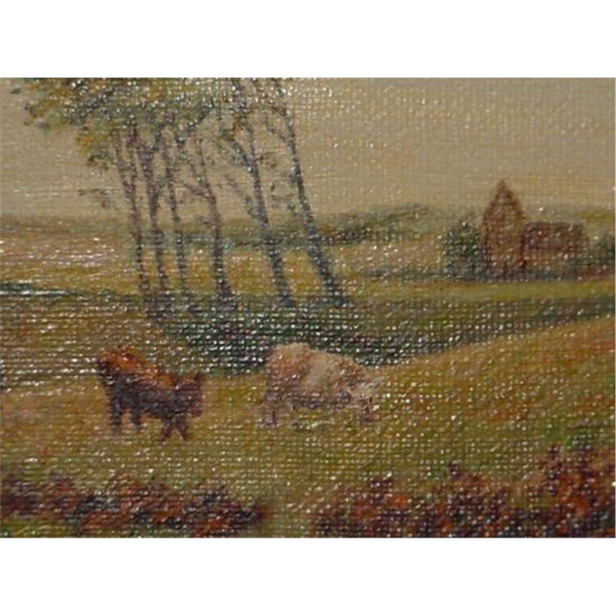 Oil on canvas by Axel HAIM (dated 1951). SUBJECT: "Pastoral Landscape". Here is an excellent landscape painting with cows. This is a painting of cows grazing in a field and a little church in the background. It is a high quality painting.ready for hanging! Wood frame. Height: 26.25" (w/frame: 31.25") Width: 34.75" (w/frame: 40"). Title: Pastoral landscape Very good condition (painting and frame) Very good value!!! We ship from Texas (not from France)!