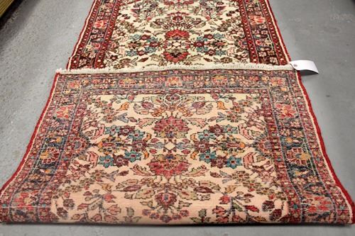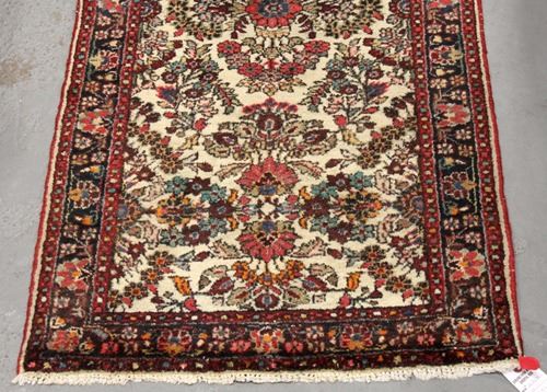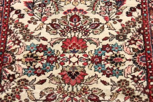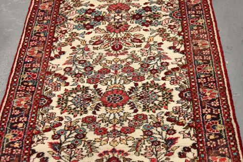 Extremely rare magnificent hand woven 26' authentic Persian Gol Payghan runner. Size 2.9 X 26.4 feet, made of the finest quality baby lamb's wool pile on cotton foundation, all natural vegetable dye, incorporating a fascinating and detailed allover free flowing floral pattern on a cream colored background; contrasted beautifully with a darker colored intricate floral border. A truly unique runner, an authentic Persian Gol Payghan of this size and quality is extremely rare to find in today's marketplace. Country of origin: Iran. Due to the age of this rug there may be signs of wear or previous instances of repair. Additionally as a result of the handmade weaving process, not all sides may be straight or corners square.
